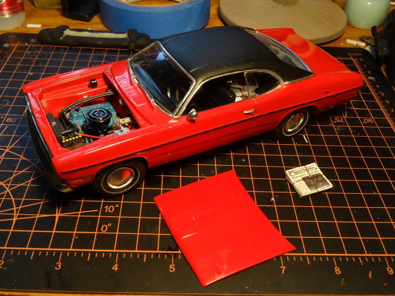 I was hoping to wrap the Duster up before the end of the year but I have a couple of things keeping me from that goal. Have not been able to determine what the original plate number was so for now it has generic plates installed. Also I want to add the beach pass that is in the left rear window in the pic as well as registration stickers for the windshield. Somewhere I have a vent window from one of my other cars that has a beach pass still on it. Can't find it at the present time so that I can get a scan of it. So for the time being the Duster will get put to the side until I can resolve those issues and perhaps come up with a few more, like the smudge I now see on the rear tail panel or the red spot on the grill.🙄 The pics show everything. Until then here are some pics as it stands today. Happy New Year Everyone 🎆