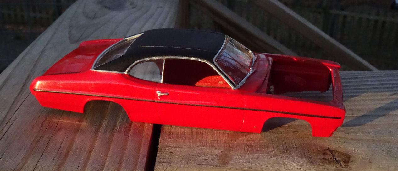 Realized the sun was going down outside and remembered I wanted to get some pic of the body in natural light to show it's true colors. Not much daylight left but enough to see my big mits have rubbed off some of the black trim paint. Oh, well, it can be retouched. ?