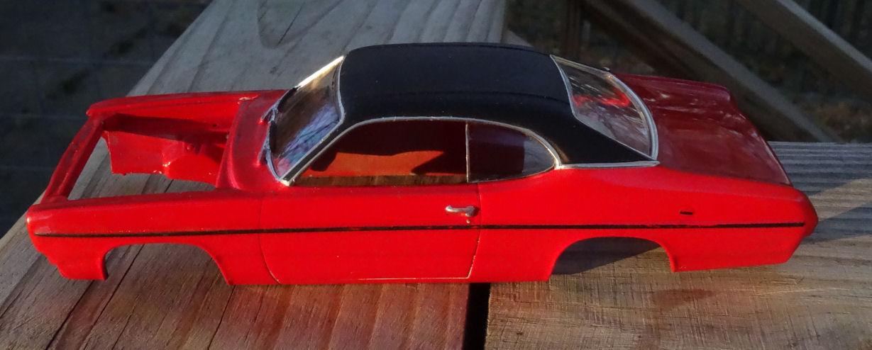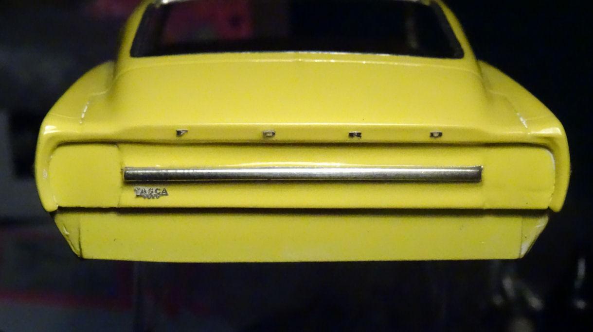 Bill, I would have done the BMF under the paint if I could. But as this paint is water based you can't use thinner or polish to remove the paint over the letters. And the letters didn't stand proud when I started. So I took what is probably the bumpiest road to get to my destination. I used some photo-etched letters on top of the AMT letters which were my guide for placement. Can you say tedious??? I think the rear came out better then the trunk. Now it still needs trim around the end caps and trunk lid edge. Not sure how I want to tackle that. Anyone know where I can get some very thin chrome tape?. Maybe cut some from BMF ?