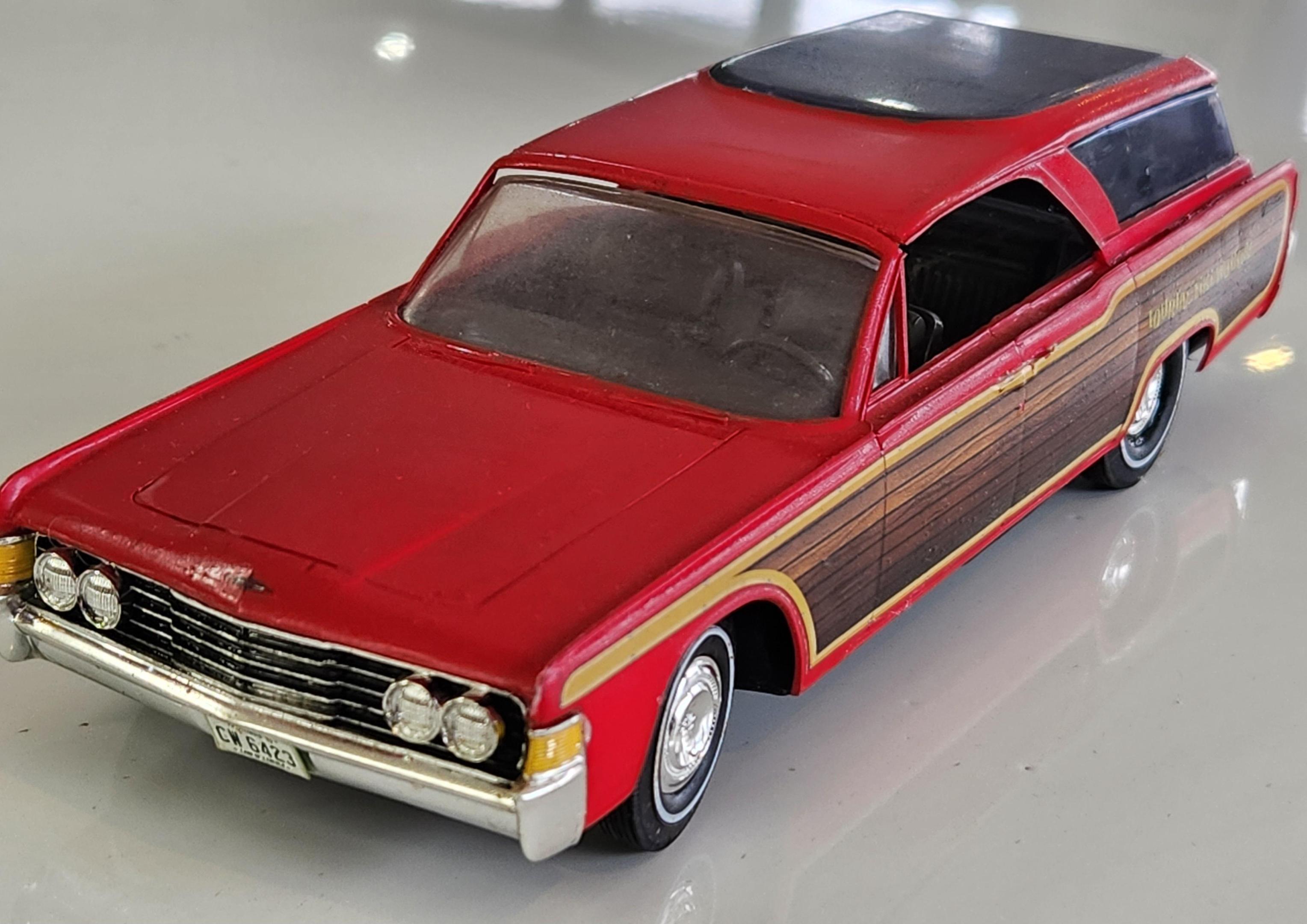 Pleased to join this forum. Looking for ID help on this umnusual model I own and I can't find anything in my web searching. Believe it's a screw on body with steel axles similar to Annual or Dealer Promo models. 1:25 scale. Woodgrain and lettering decals look original. Anybody seen this model before?