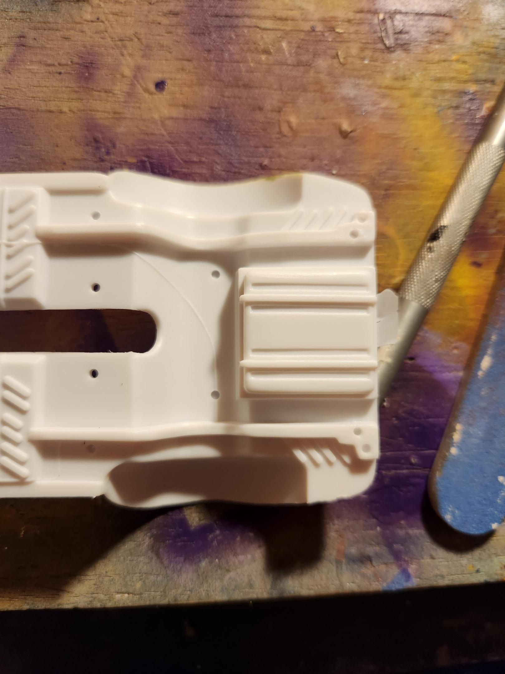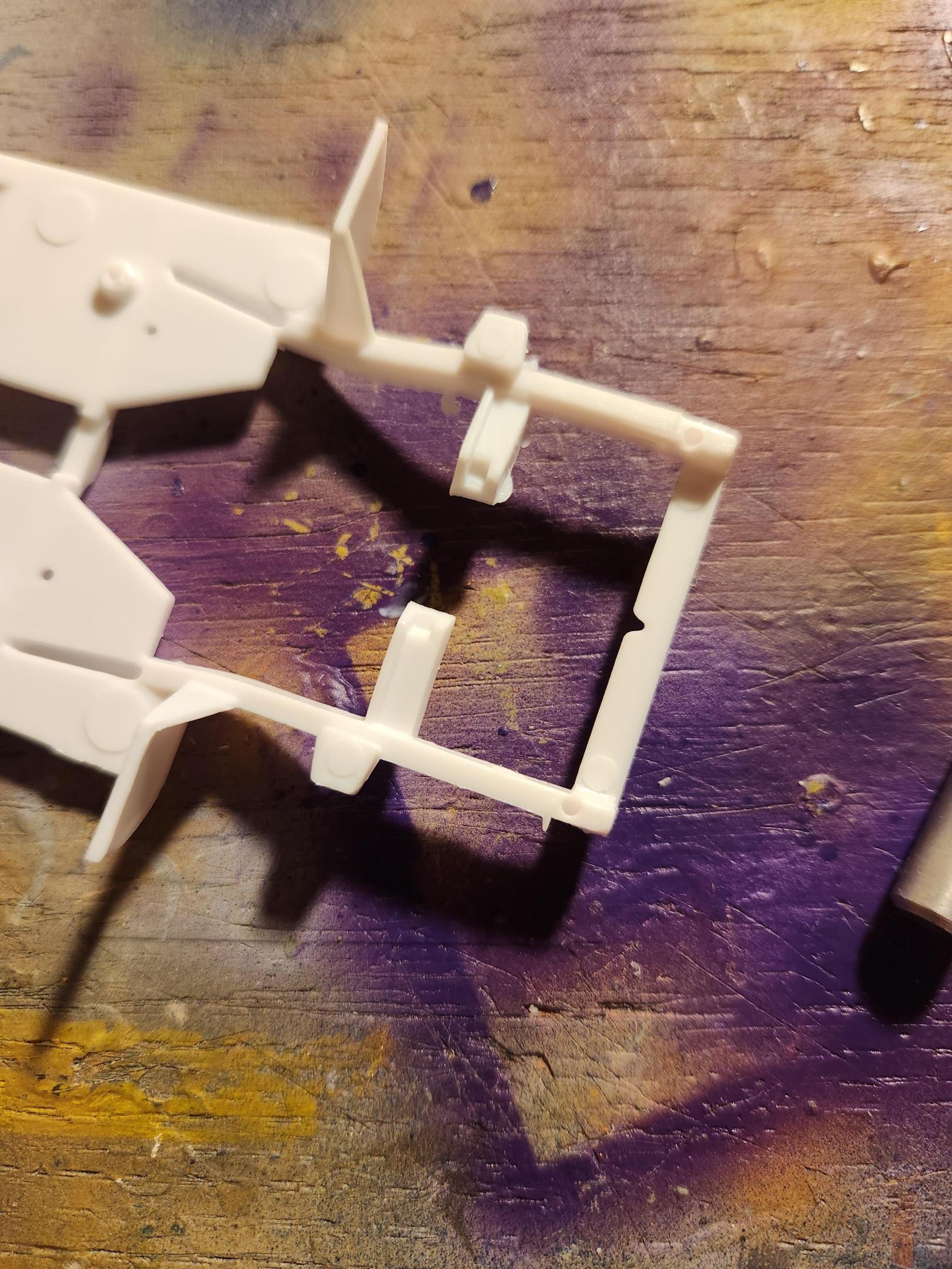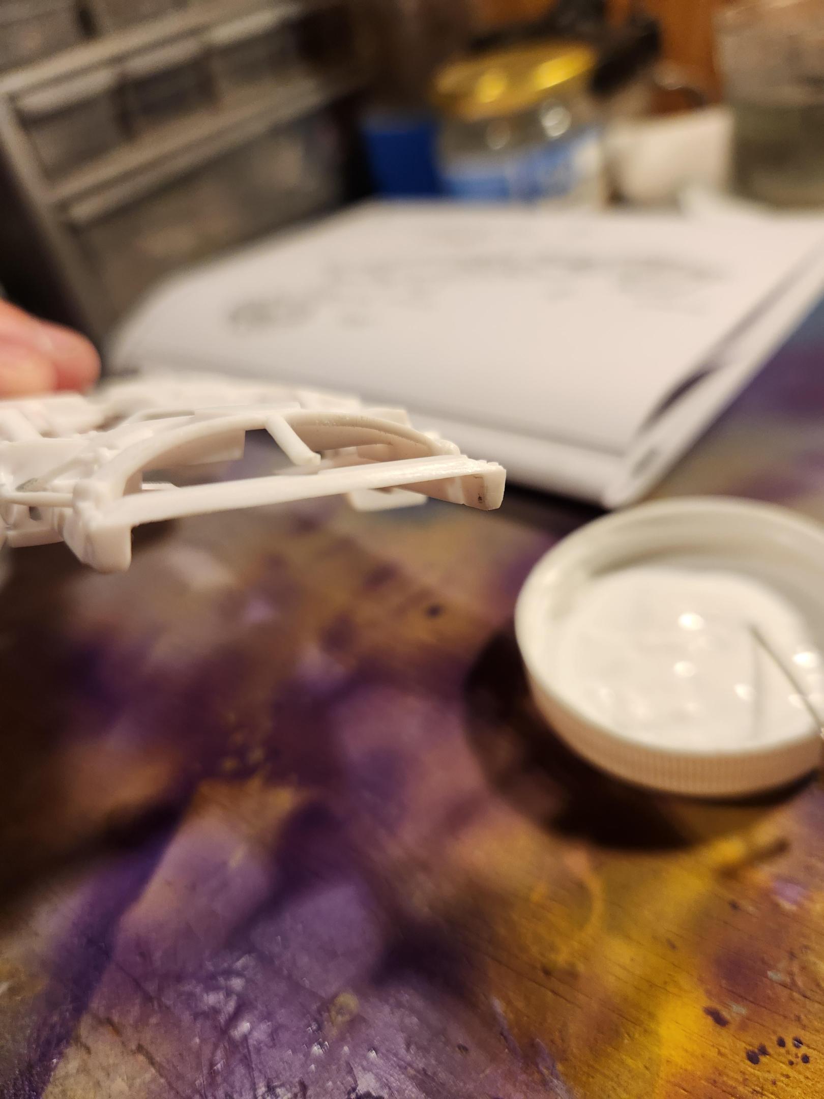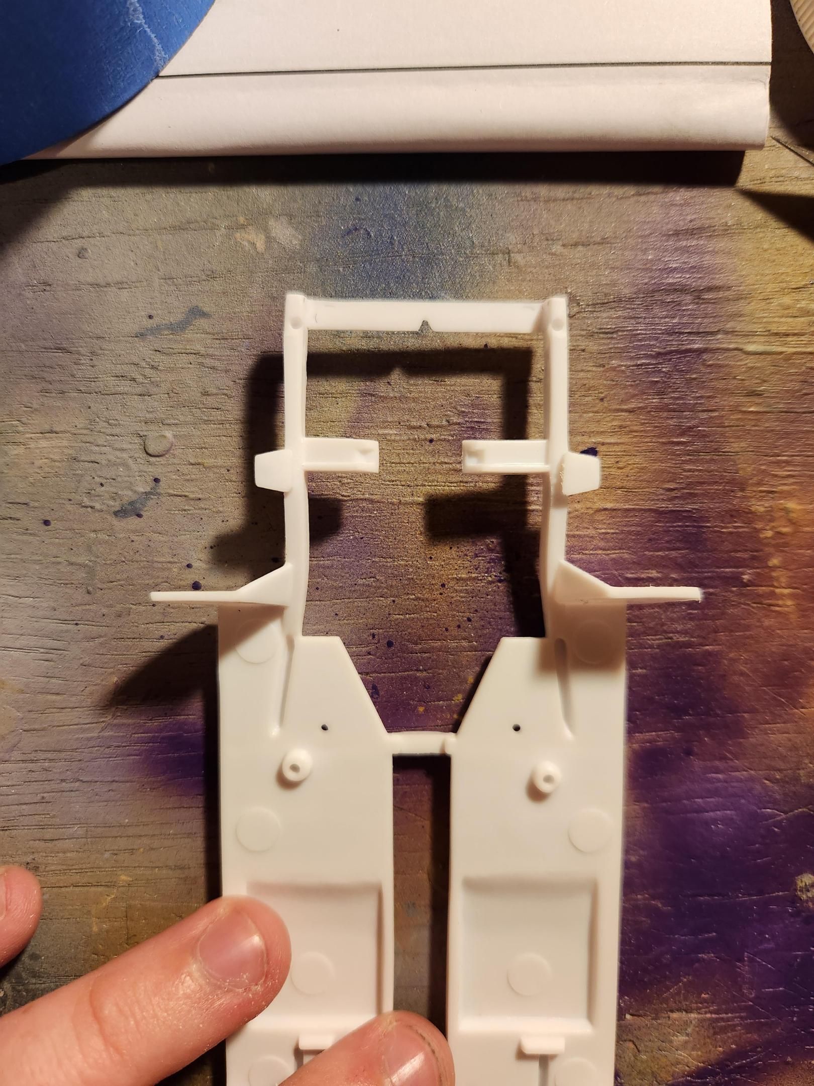 8/4/24: not much done today, I started with the wheels. There were no issues with their fit or molding. I use mod podge because it's thicker than regular white glue and seems to be more flexible. I then cleaned up the frame. Notice the cut out of the rear fenders. The mold mark I hilighted as well as ejector pin marks, they will be removed as well.- 14 replies