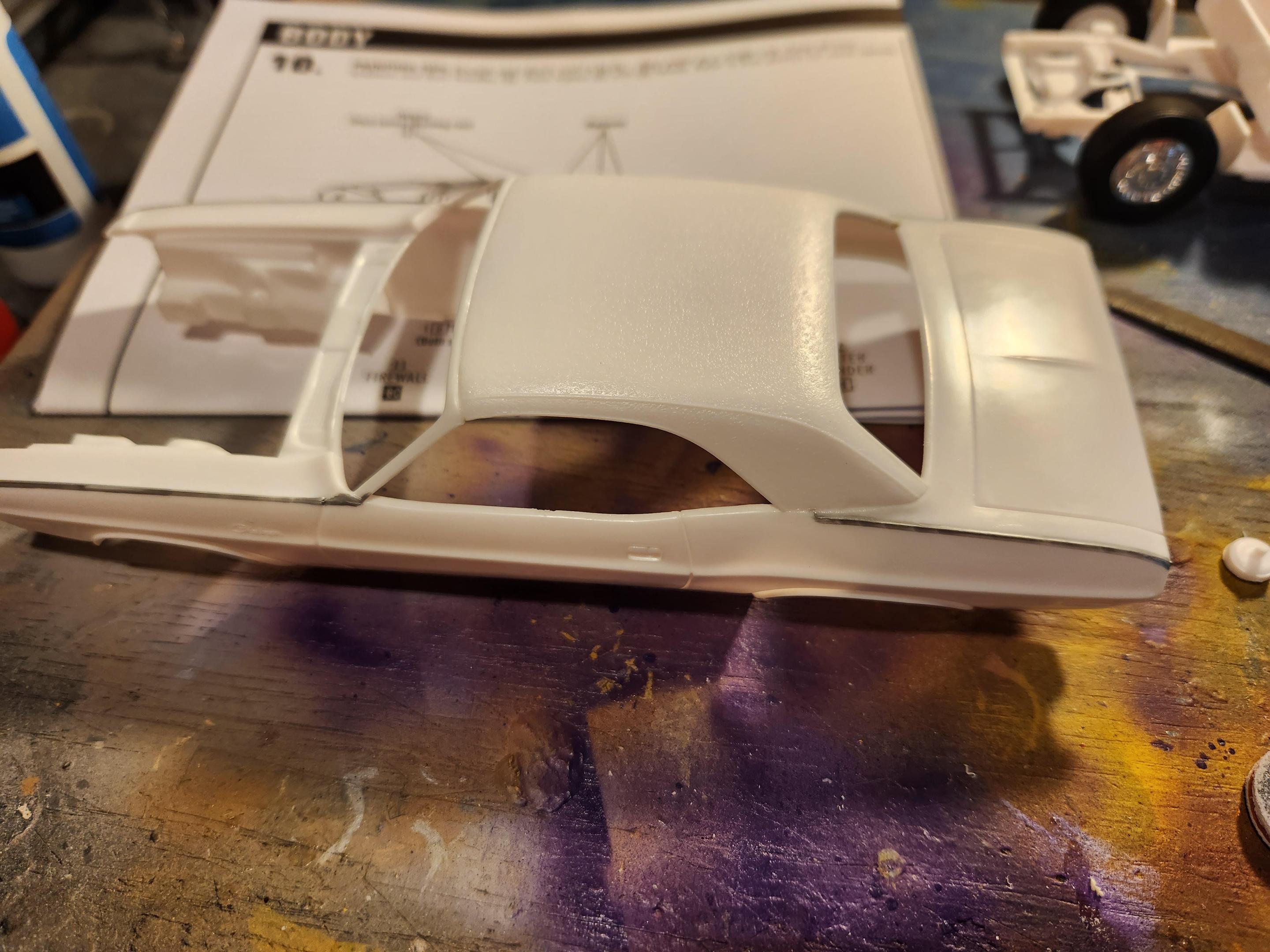 Completing the basic white glue build up, I worked on seam lines and other odds and ends. The roof was glued to the front first, then the c pillers, checking position with the rear window. So far the kit is as good as any other AMT, now I've got to wait for the Hart's Parts conversion and the VCG Chrysler LA. See you all soon!- 14 replies