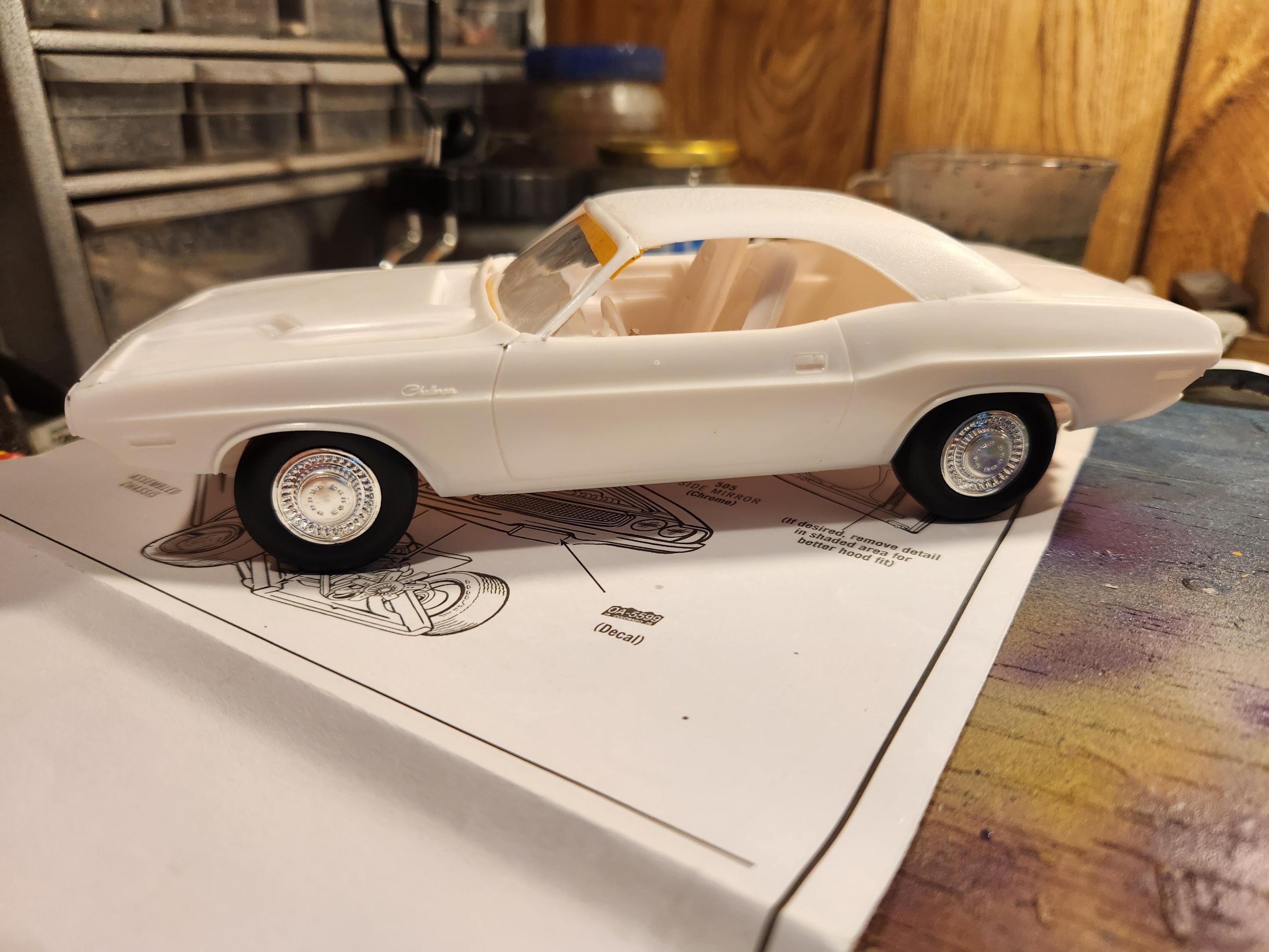 Today it begins! My autumn project of creating a 1974 Dodge Challenger. The base kit is by AMT. I also have the Hart's Parts conversion set to order as well as a 3D printed Chrysler LA from Resins by Reese. Resin wheel covers were provided by a fellow forum member. I will start out by doing a white glue build up Ala Scale Model Experiment. This is to check fitment and to modify parts to fit correctly before committing to solvent. I am planning on doing step by step updates as well as video updates on my YouTube Channel, "G&A Scale Model Apprentice." For an introduction to this project please visit this thread: I leave you with shots of the sprues and thanks everyone for their help so far!
