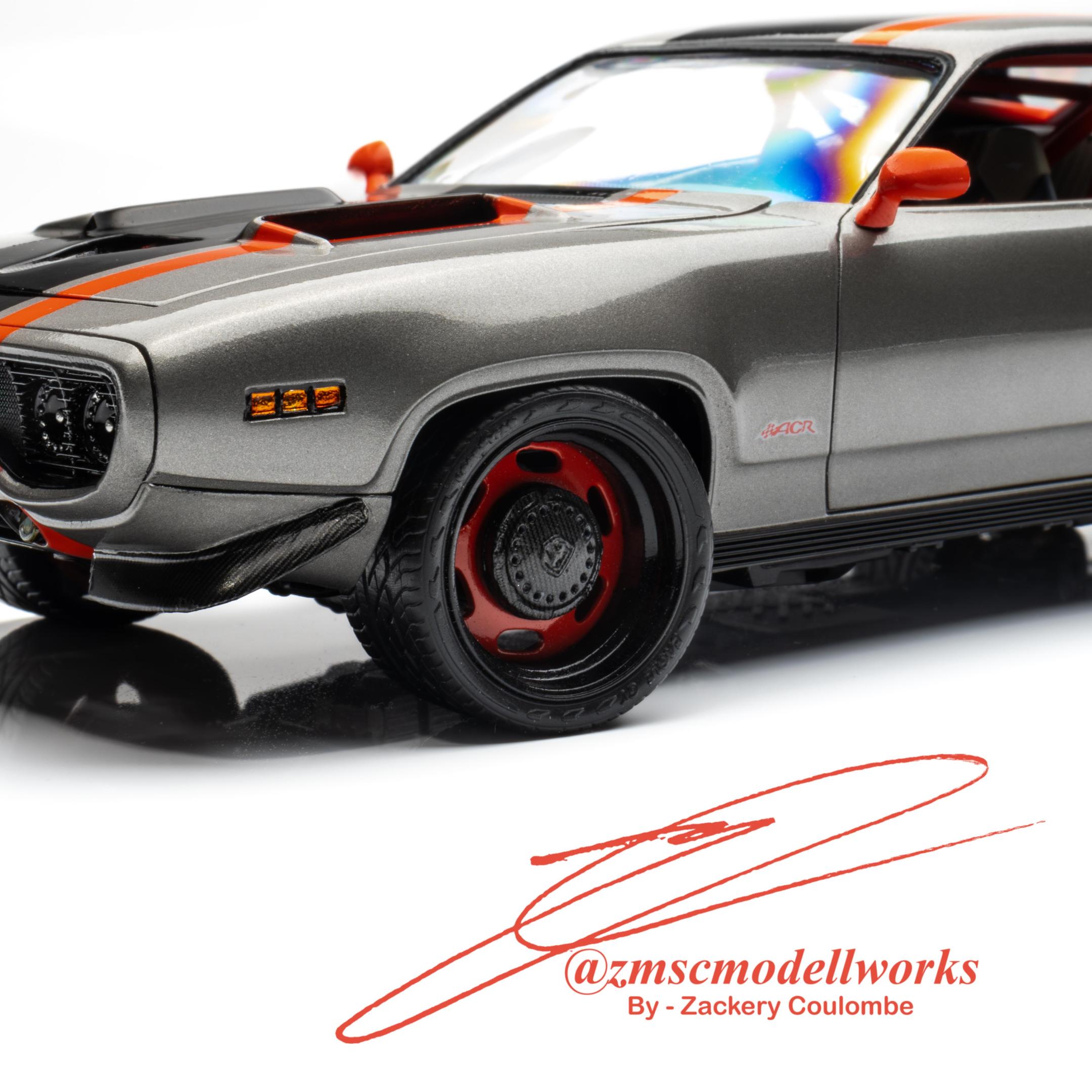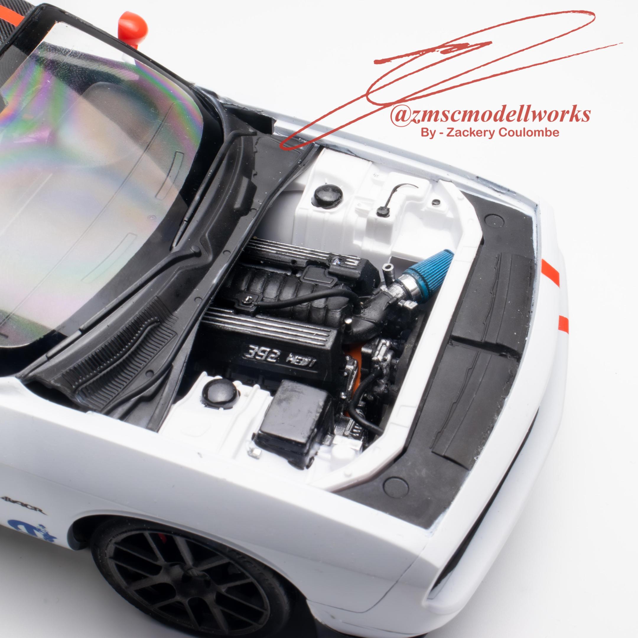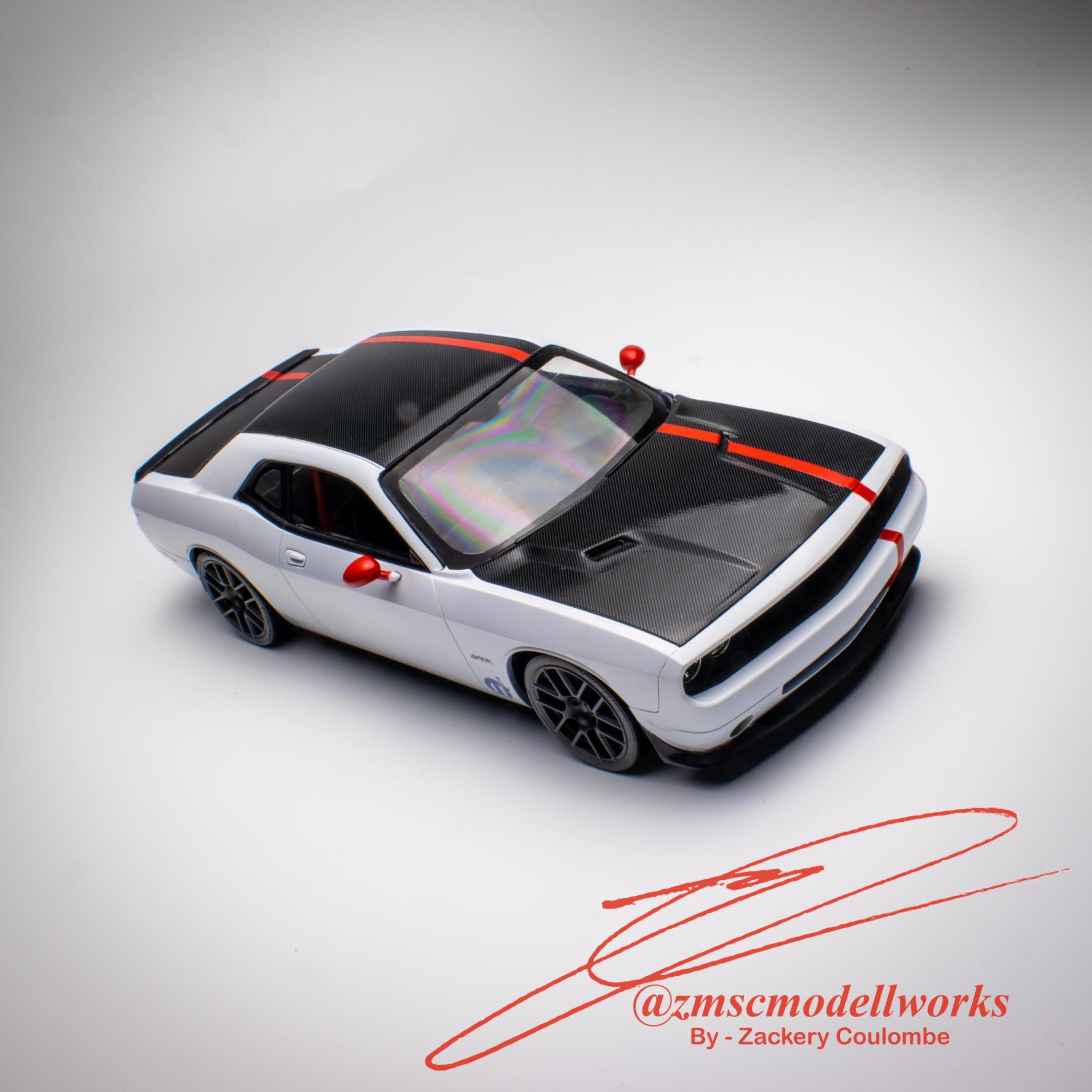 Carrying on my ACR theme. The ACR Challenger concept. Custom 3D printed wheels and the 392 Hemi was also 3D printed from Motabas' cults 3d files with a tremec T56. Interior cage was hand built along with the custom carbon door cards.