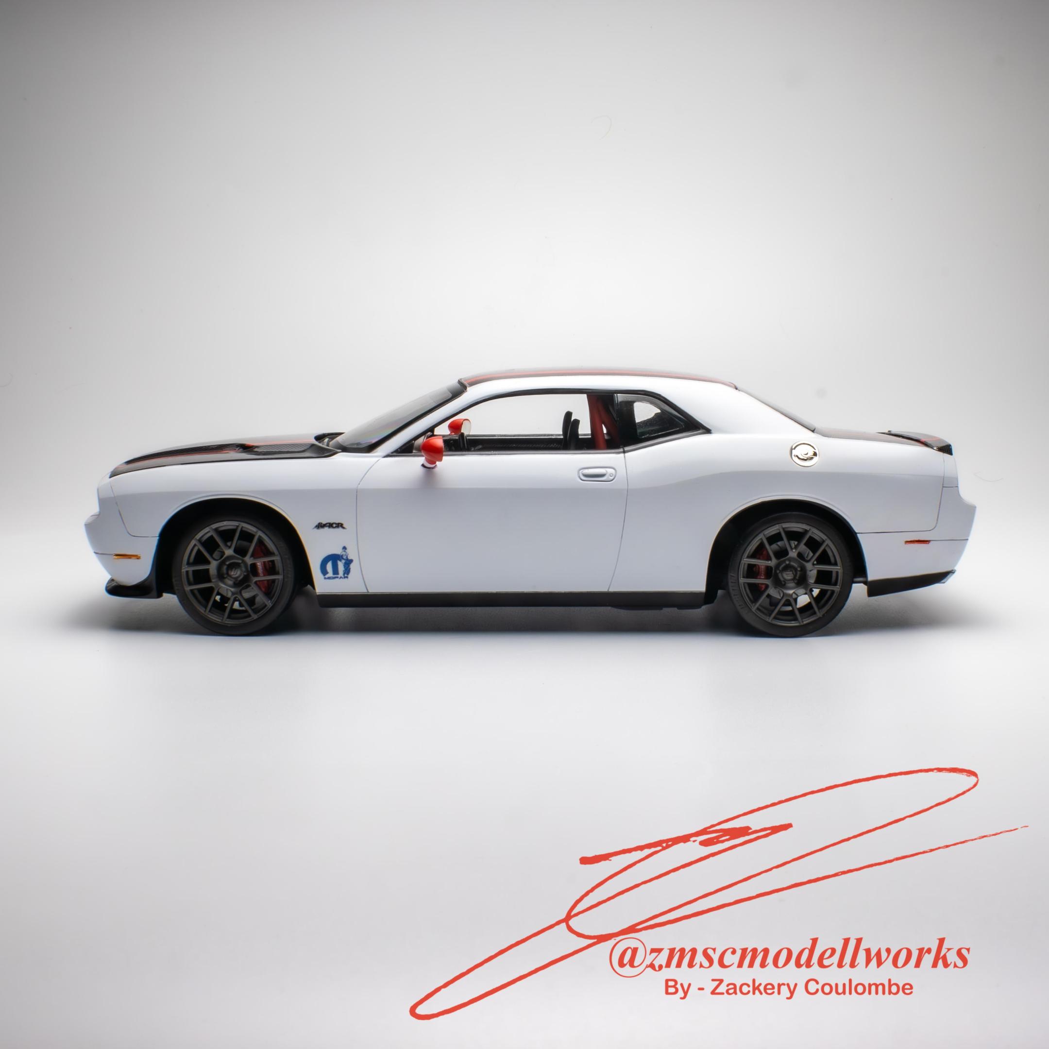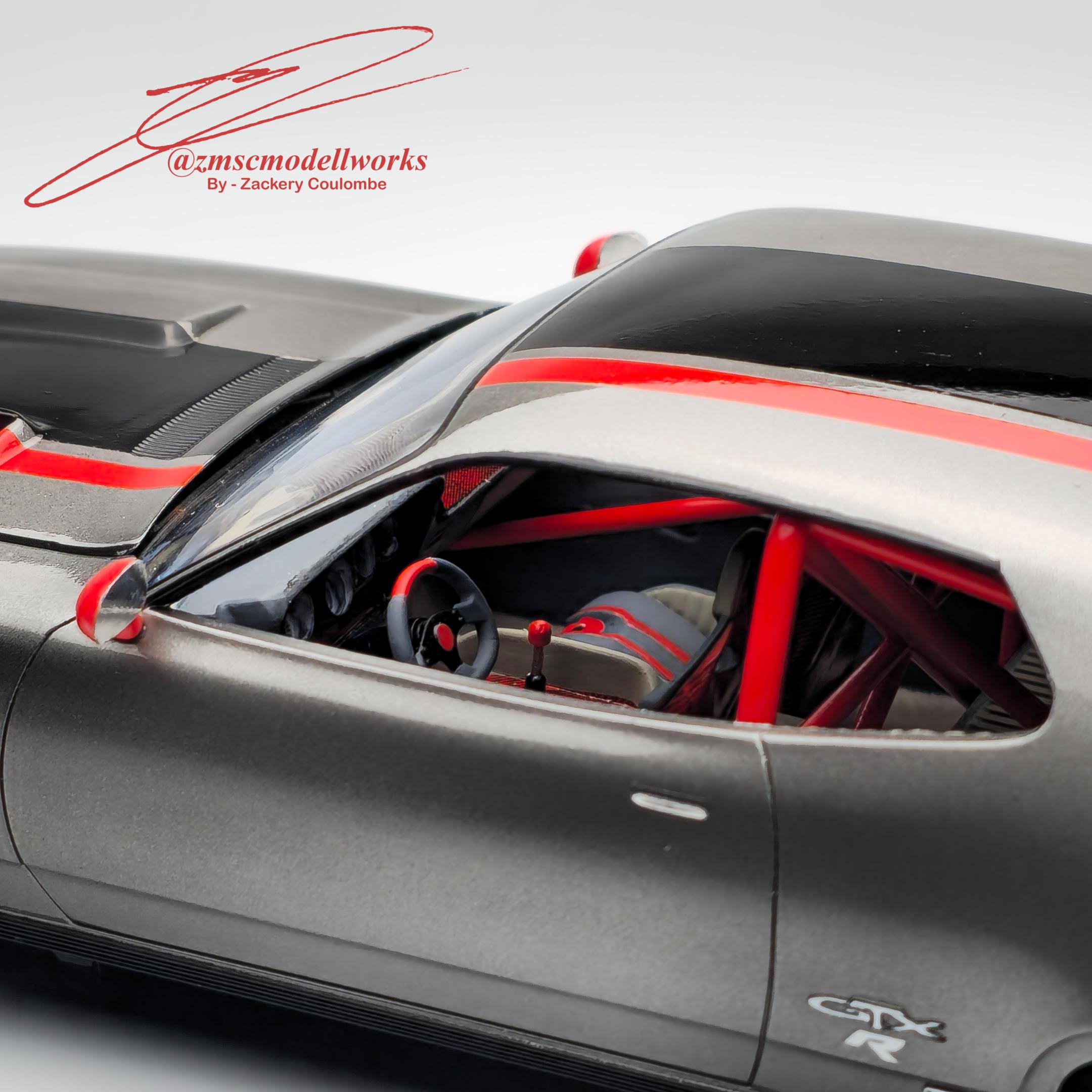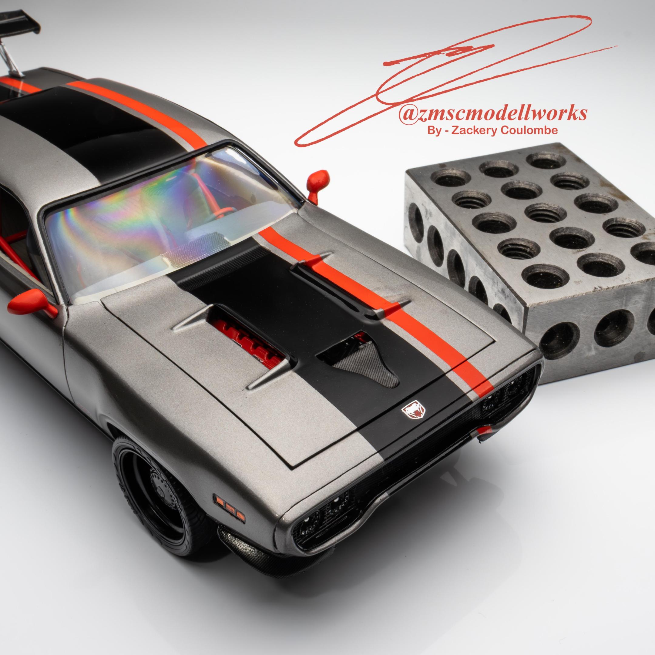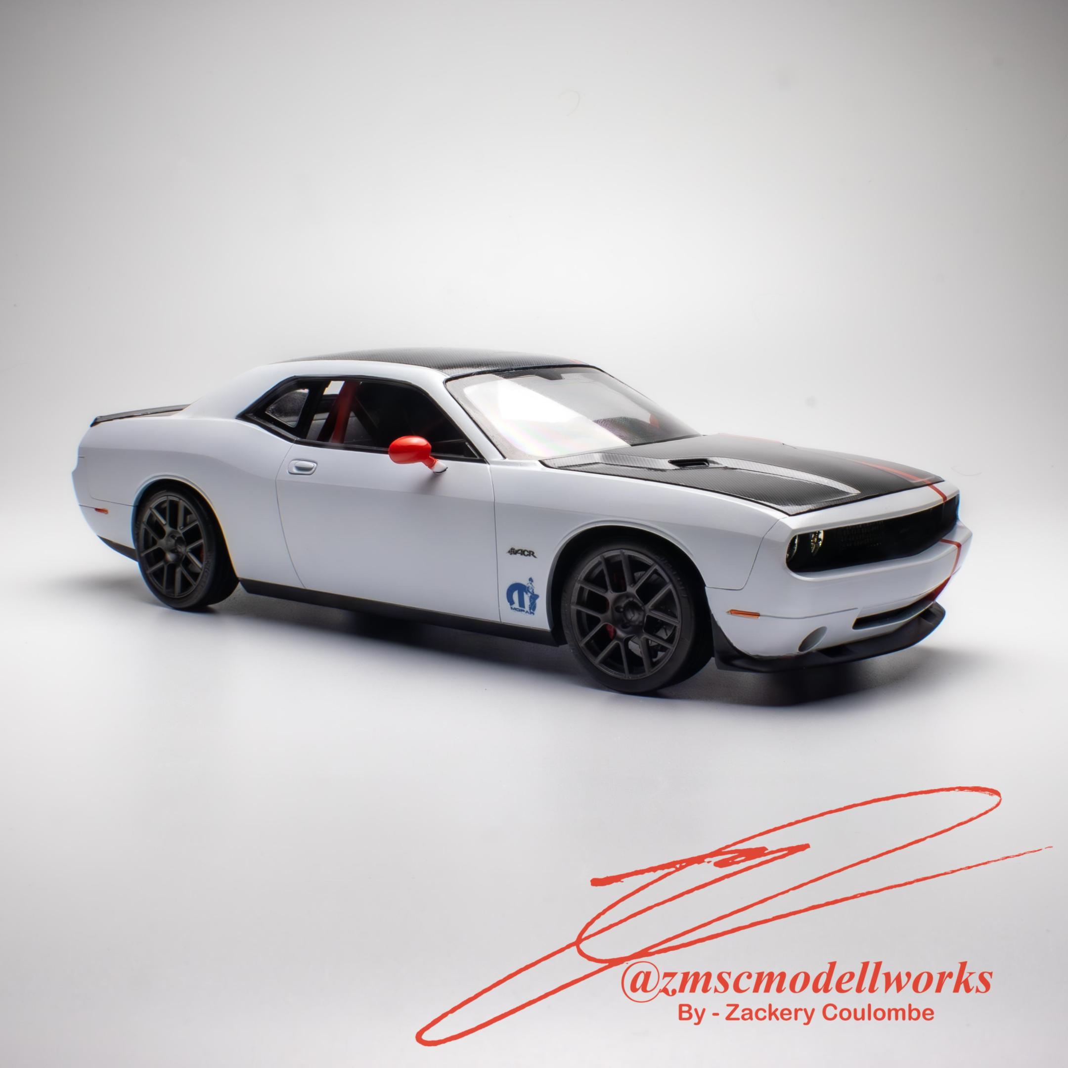 Carrying on my ACR theme. The ACR Challenger concept. Custom 3D printed wheels and the 392 Hemi was also 3D printed from Motabas' cults 3d files with a tremec T56. Interior cage was hand built along with the custom carbon door cards.