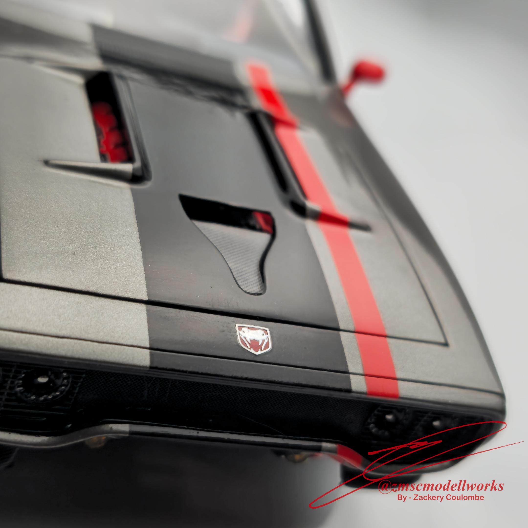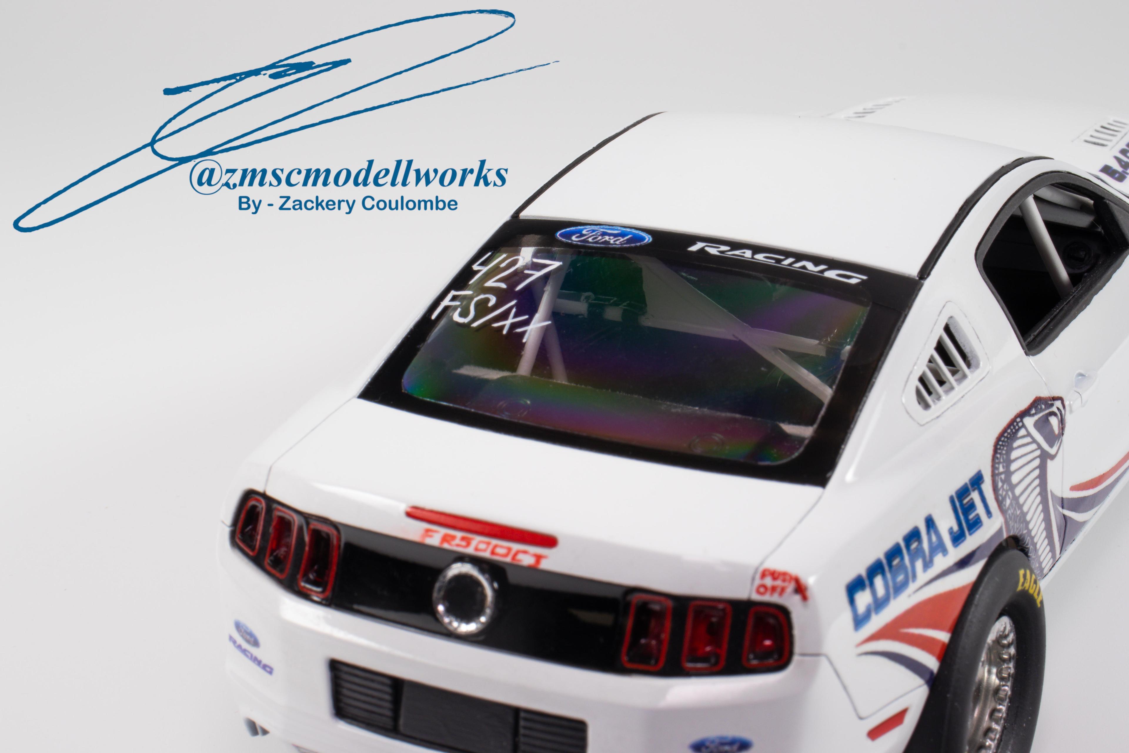 Converted from a 2013 Mustang GT, plenty of modifications tho its better to just read it from my site as that's where it was recorded. Here you just get to see the ub-bridled beauty. Most notably is the window net is poseable, cage was built from scratch, and decals wee knockoffs of the Slixx set. Because of me not knowing at the time and finding out later, I went and bought the whole Cobra Jet line and intend to build them all as an apology to Slixx and to myself for not doing my research.