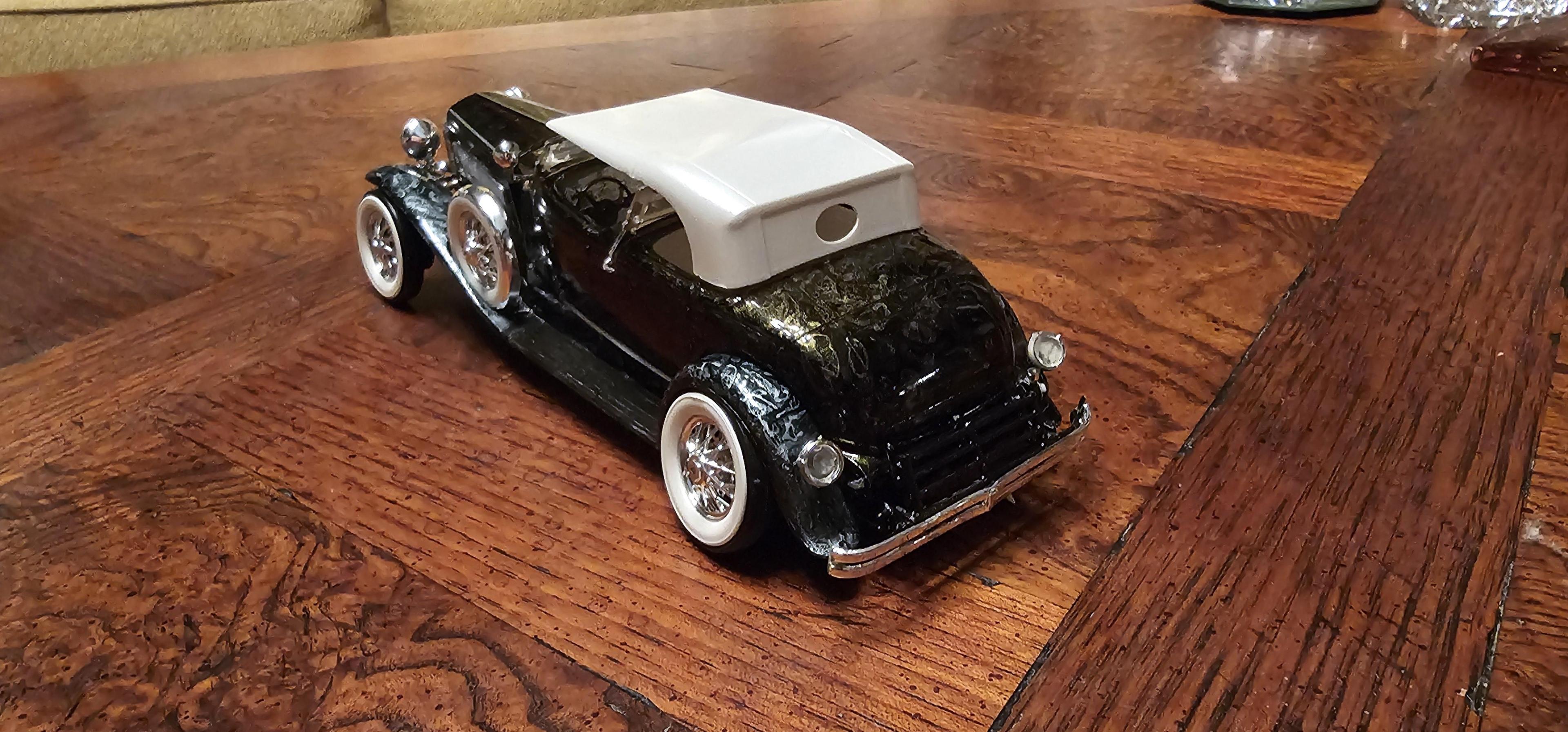 did this in 2005. its been sitting in the box ever since cause i got tired of re gluing the little pieces that keep coming off. house of kolor pagan gold with silver white marbelizer. interior, whitewalls, and top are satin white pearl