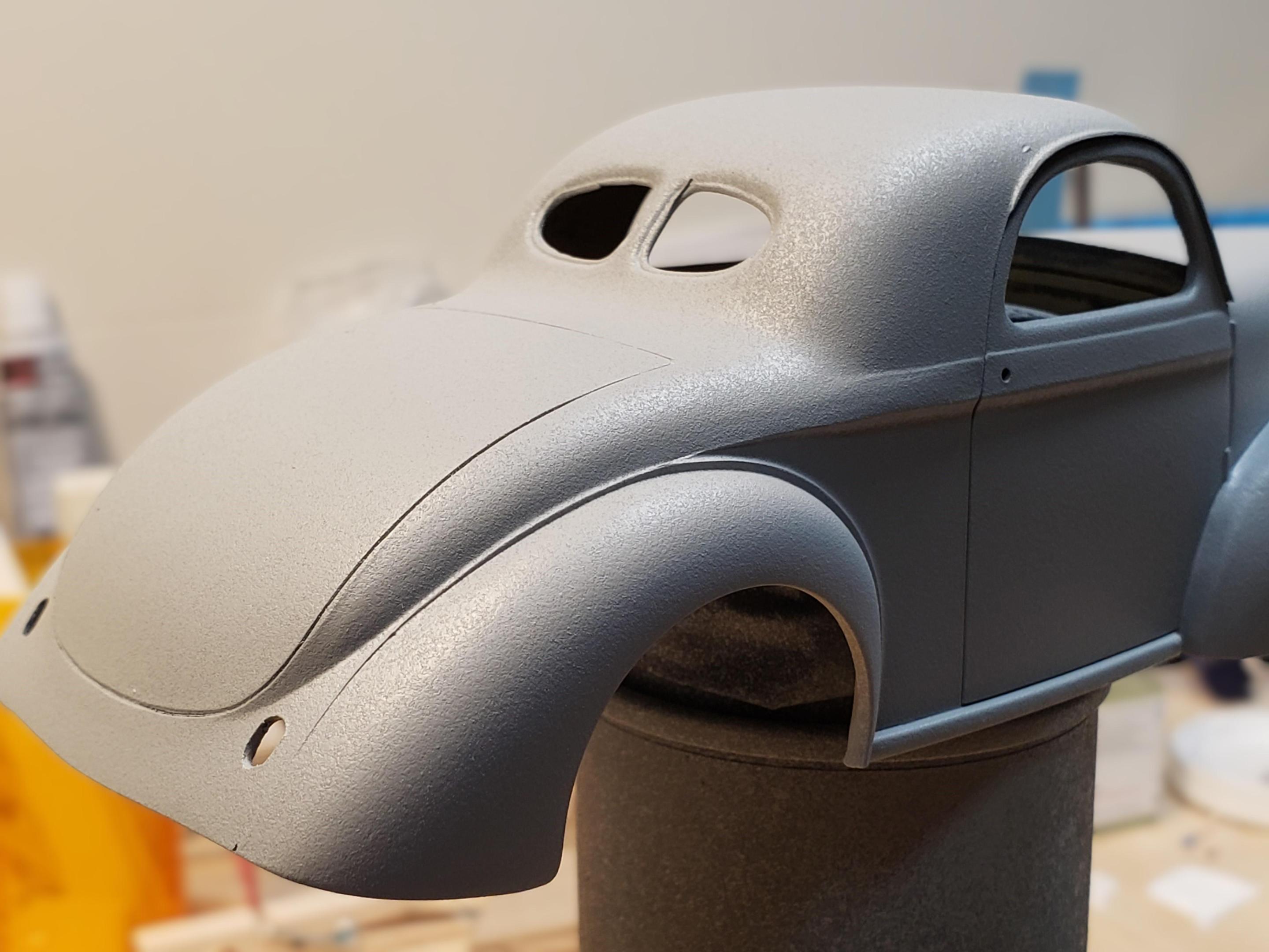 I totally thought of you and that '55 when this happened. Misery loves company, my friend! ? I put the body in the dehydrator for a few hours and when it dried down, the texture smoothed out a bit. I agree, I think I maybe be able to spend some time with the sanding pads and get this ready for color.
