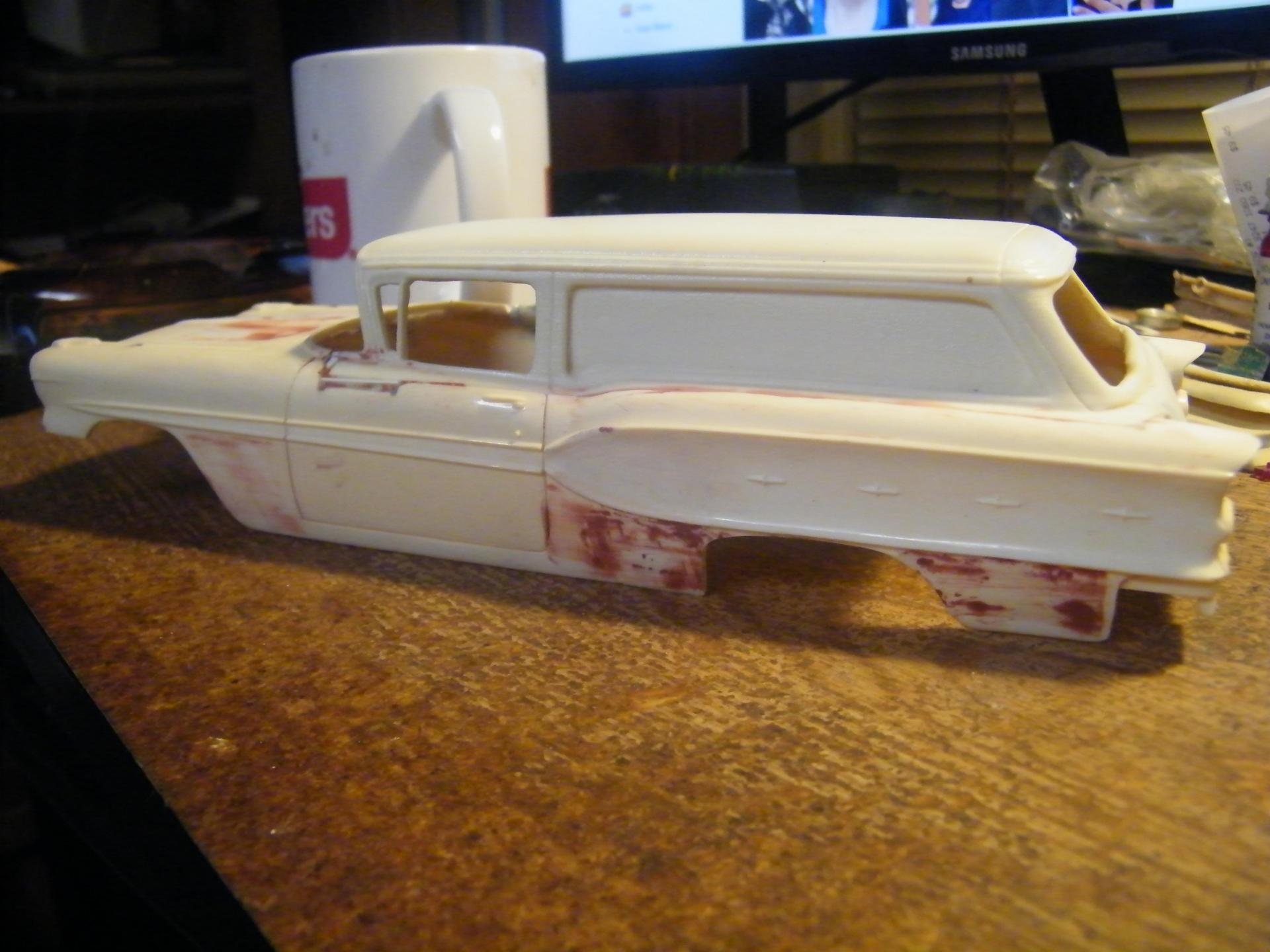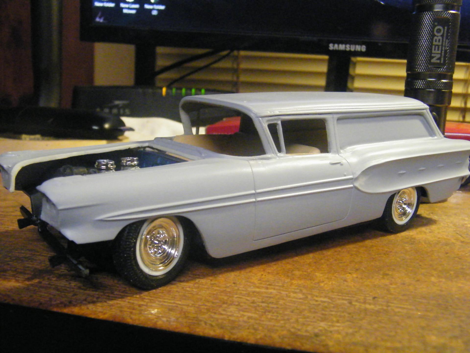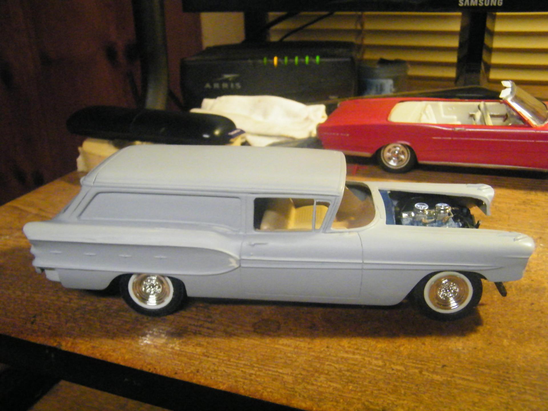 2. The basic body was a 1958 Bonneville convertible and bought a Jimmy Flintstone 1958 Chevy Sedan Delivery for the roof and tailgate section. There was little different in the tailgate area I had to work on and took a bit of time to get it looking halfway right. The rear bumper I removed all the guards and exhaust ports on it. And yes next one goes to a caster who will be casting them
