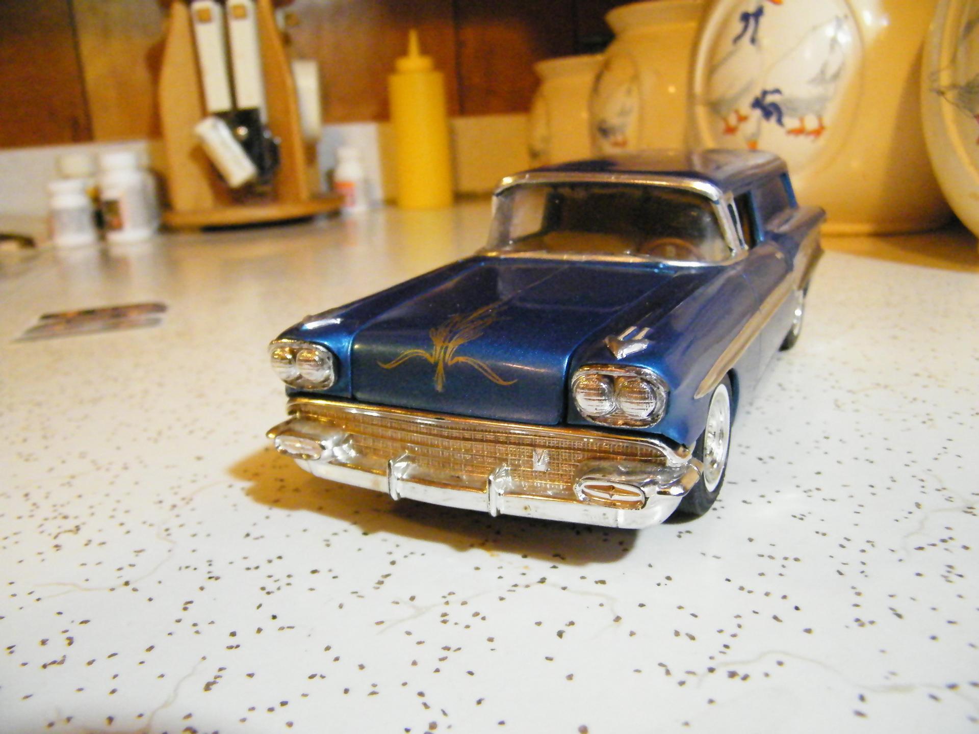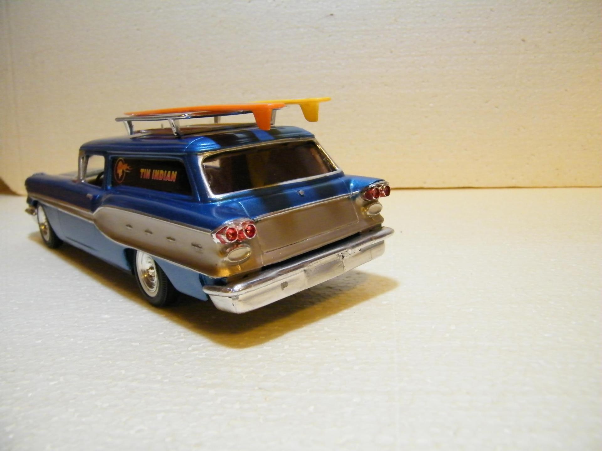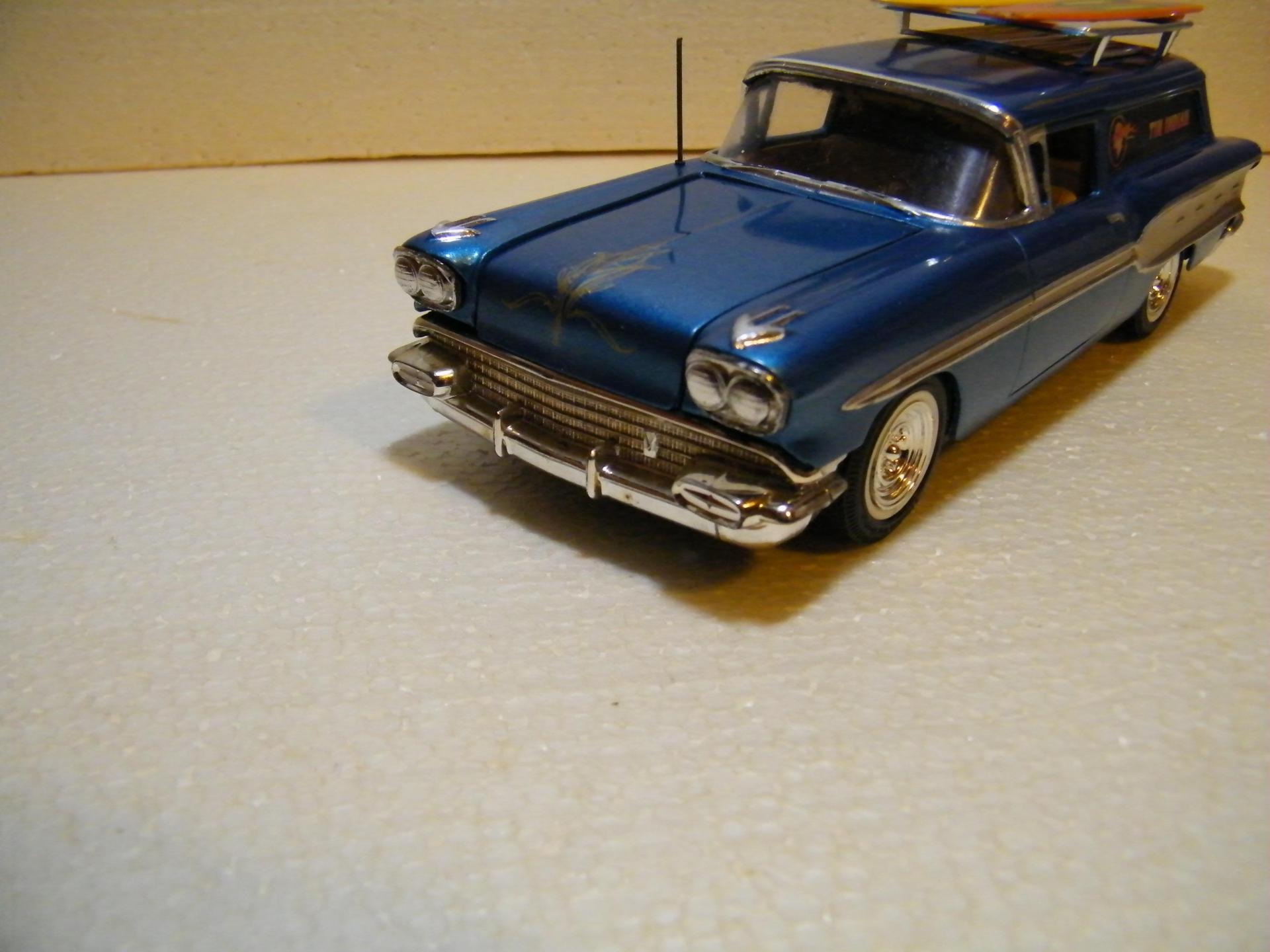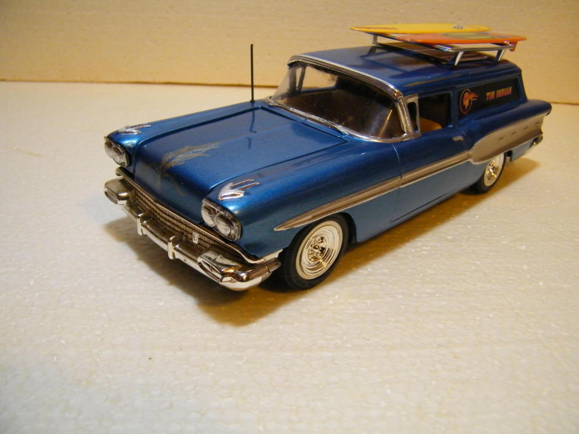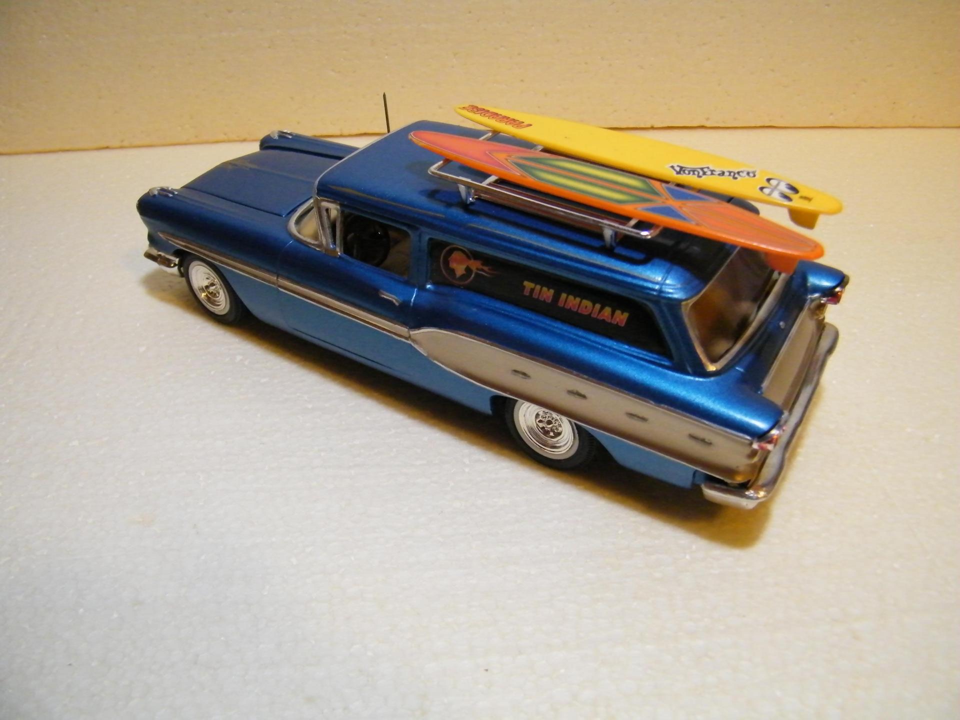 8. Rarely seen in any form 1:1 or plastic. 1958 was the end of the line for Pontiac Sedan Deliveries , the 58 was Canadian marketplace only car. I also combine several upgrades bashing a 1962 Catalina using the Chassis from that kit vs the X frame from a 58 Impala. Took a break from it still work to do on it but close to completing it , this is the 1st of two more Im going to do and honestly kind of a test run build. I call it the Tin Indian and can be displayed with or without the roof rack and surf boards