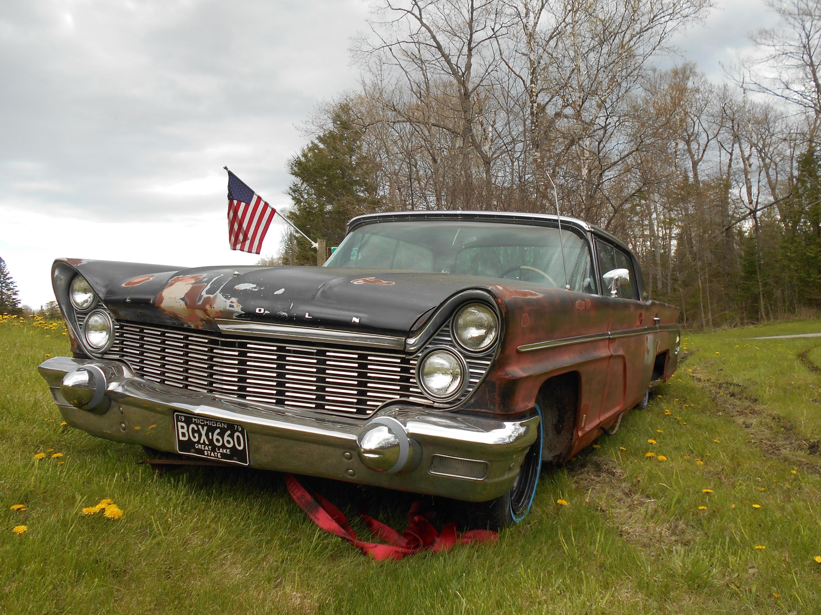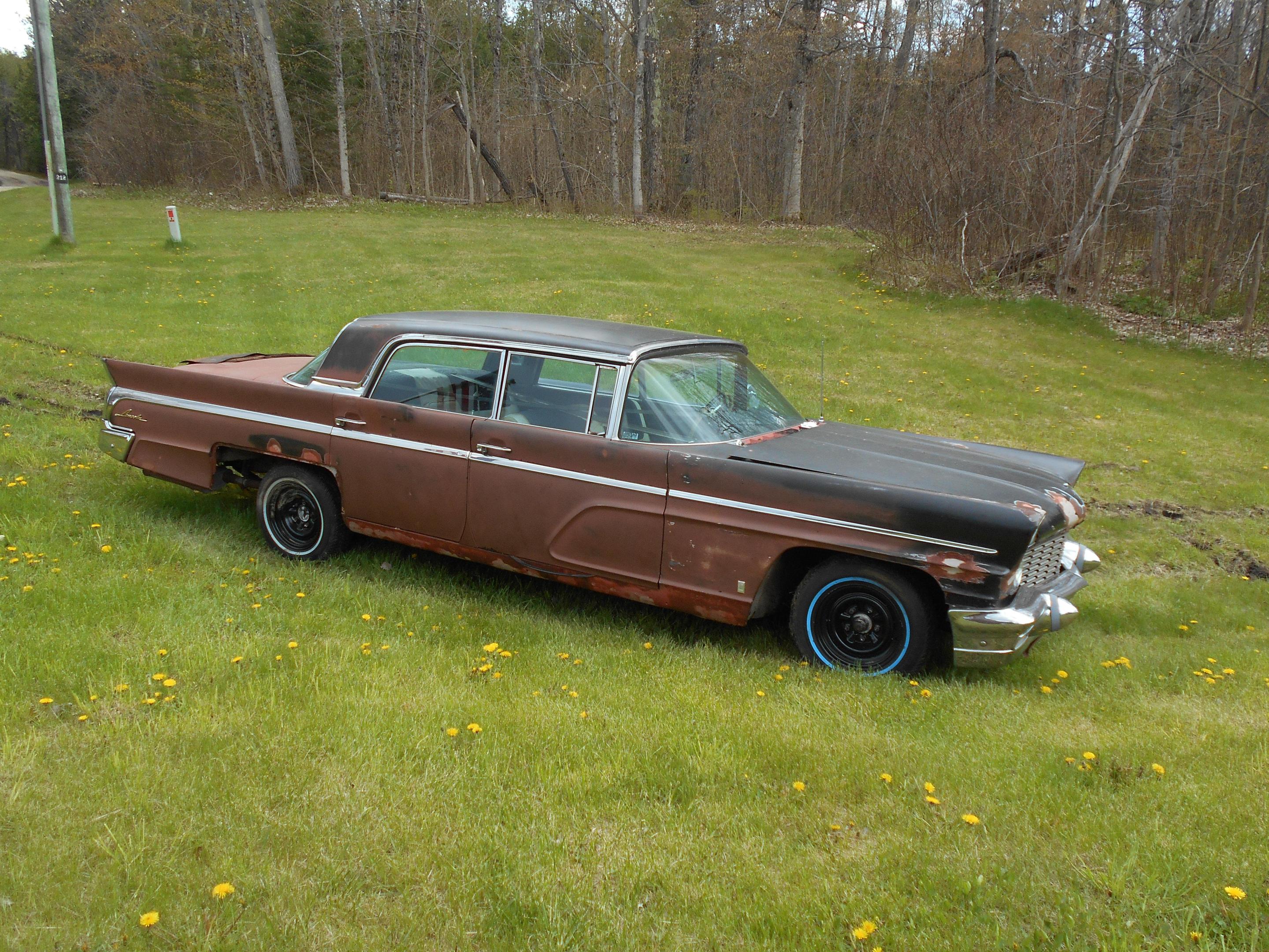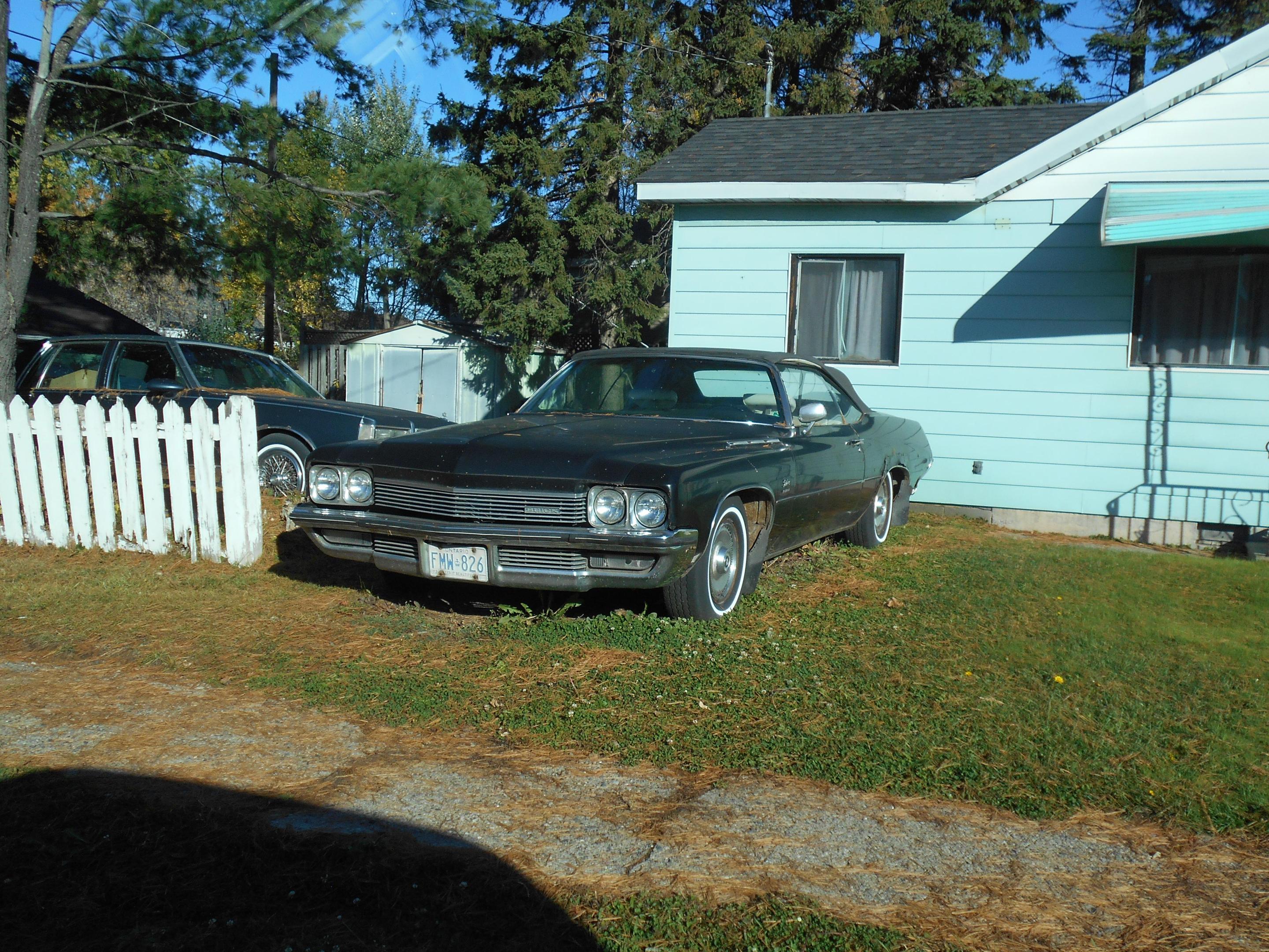 I said I would add more because I had more, so here are the last of them. To begin, we have a 1963 ford Falcon owned by my dad's father. We actually know nothing about this car, as he isn't around to tell us about it, and even my Great Uncle doesn't remember my dad's father having this car, so he must've had it for a very short time. Next, this is my Great Uncle Lauri's second 1964 ford Galaxie. It was dark green, and this is actually the one I based my 1964 AMT Galaxie model after. This photo was taken in 1965. Right here is a 1962 Ford Galaxie (mom's side of the family) that was owned by my Nonno. This was alledgedly his fourth car, and it was a burgundy four-door with a white top, and 1957 Ford hubcaps. Sitting on the fender are my Aunts. This photo was taken 1964. This is my Great Uncle Lauri and his first 1964 Ford Galaxie. Taken on a local beach in 1965. This is my grandma's father's (mom's side of the family) 1953 Chevy 210. It was brown with a white top, and the car actually still exists; (see below this photo) Taken on May 14th, 1960, the day of my grandparent's wedding. This is the same car from above., dumped in '62, according to the plate on the bumper, it was left to rot in a gully on my grandparent's property. The thing must've rolled twice before ending upside-down at the bottom of the gully (mom's side of the family) Taken 1975, this is my Nonno's 1970 Mercury Marquis, the car that replaced the '62 Galaxie. This was apparently his favourite car he owned. In the background is his first Truck, a 1963 Chevy. This is my Great Uncle Jim's 1960 Plymouth Belvedere. The photo was taken in 1962, as he chauffered my grandma (dad's side of the family) to her wedding. With her is a friend of the family who gave her away as her dad died in WW2. A little farther down from their wedding, our local Algoma West Used Cars lot is situated (now known as Deresti Motors) and there are some neat cars I figured I'd share. A better view, one can see a 1959 Chevy sedan, 1960 and '61 Chevy wagons, 1955 Buick, 1953 Chevy, 1955 Meteor wagon, and on roadside appears to be a Renault Dauphine, anywhere between '56 and '62 I believe.