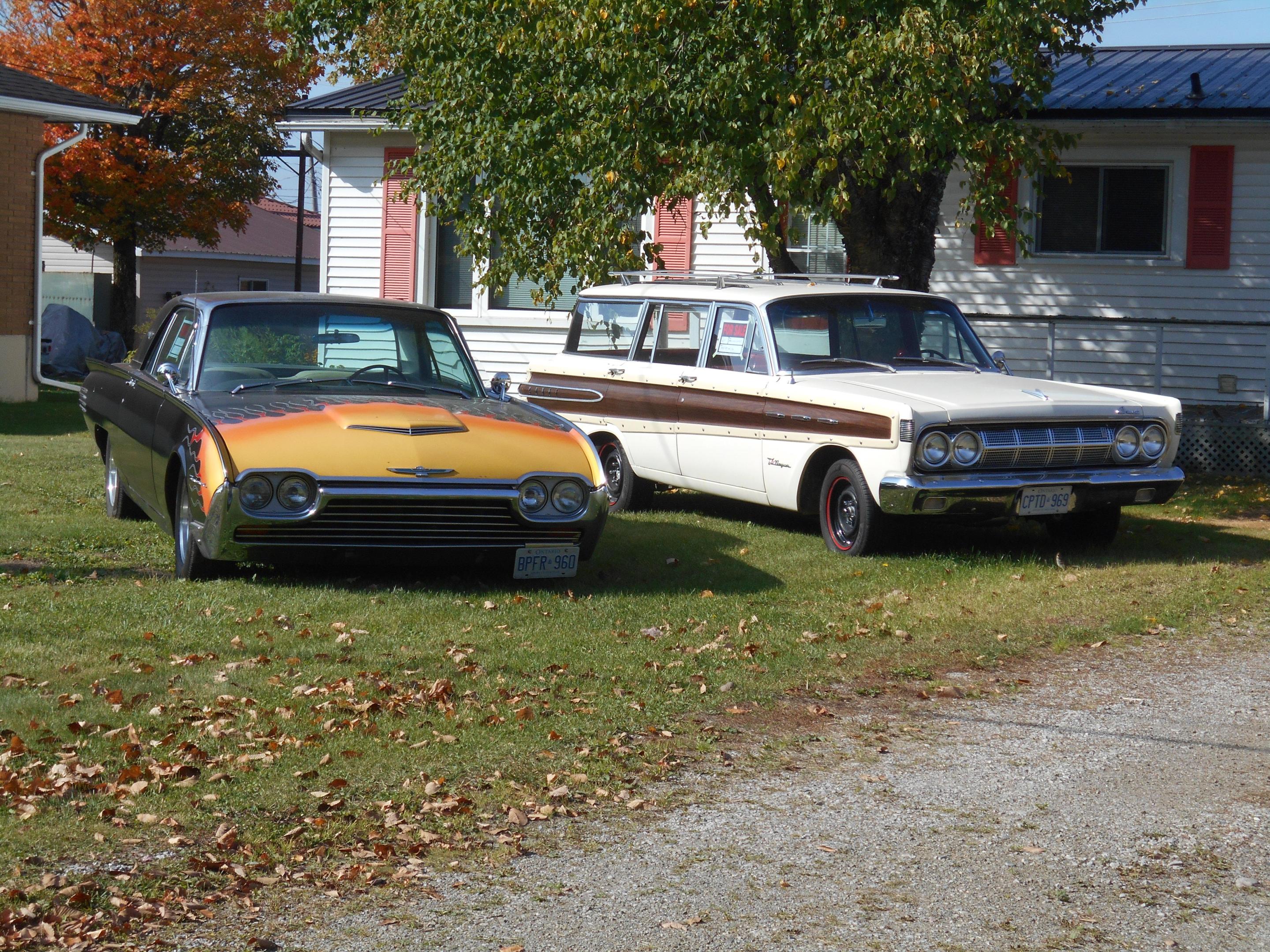 I said I would add more because I had more, so here are the last of them. To begin, we have a 1963 ford Falcon owned by my dad's father. We actually know nothing about this car, as he isn't around to tell us about it, and even my Great Uncle doesn't remember my dad's father having this car, so he must've had it for a very short time. Next, this is my Great Uncle Lauri's second 1964 ford Galaxie. It was dark green, and this is actually the one I based my 1964 AMT Galaxie model after. This photo was taken in 1965. Right here is a 1962 Ford Galaxie (mom's side of the family) that was owned by my Nonno. This was alledgedly his fourth car, and it was a burgundy four-door with a white top, and 1957 Ford hubcaps. Sitting on the fender are my Aunts. This photo was taken 1964. This is my Great Uncle Lauri and his first 1964 Ford Galaxie. Taken on a local beach in 1965. This is my grandma's father's (mom's side of the family) 1953 Chevy 210. It was brown with a white top, and the car actually still exists; (see below this photo) Taken on May 14th, 1960, the day of my grandparent's wedding. This is the same car from above., dumped in '62, according to the plate on the bumper, it was left to rot in a gully on my grandparent's property. The thing must've rolled twice before ending upside-down at the bottom of the gully (mom's side of the family) Taken 1975, this is my Nonno's 1970 Mercury Marquis, the car that replaced the '62 Galaxie. This was apparently his favourite car he owned. In the background is his first Truck, a 1963 Chevy. This is my Great Uncle Jim's 1960 Plymouth Belvedere. The photo was taken in 1962, as he chauffered my grandma (dad's side of the family) to her wedding. With her is a friend of the family who gave her away as her dad died in WW2. A little farther down from their wedding, our local Algoma West Used Cars lot is situated (now known as Deresti Motors) and there are some neat cars I figured I'd share. A better view, one can see a 1959 Chevy sedan, 1960 and '61 Chevy wagons, 1955 Buick, 1953 Chevy, 1955 Meteor wagon, and on roadside appears to be a Renault Dauphine, anywhere between '56 and '62 I believe.