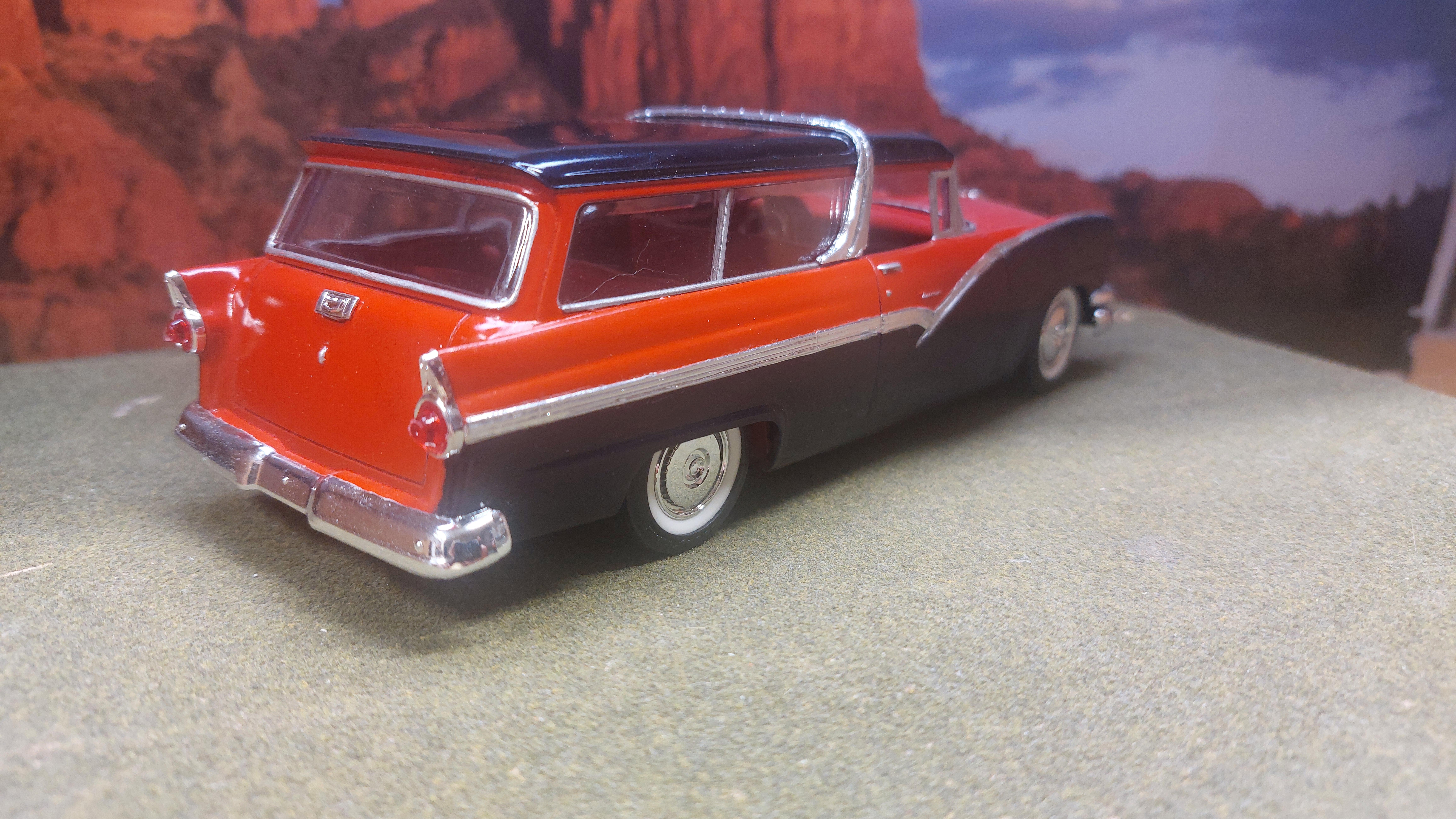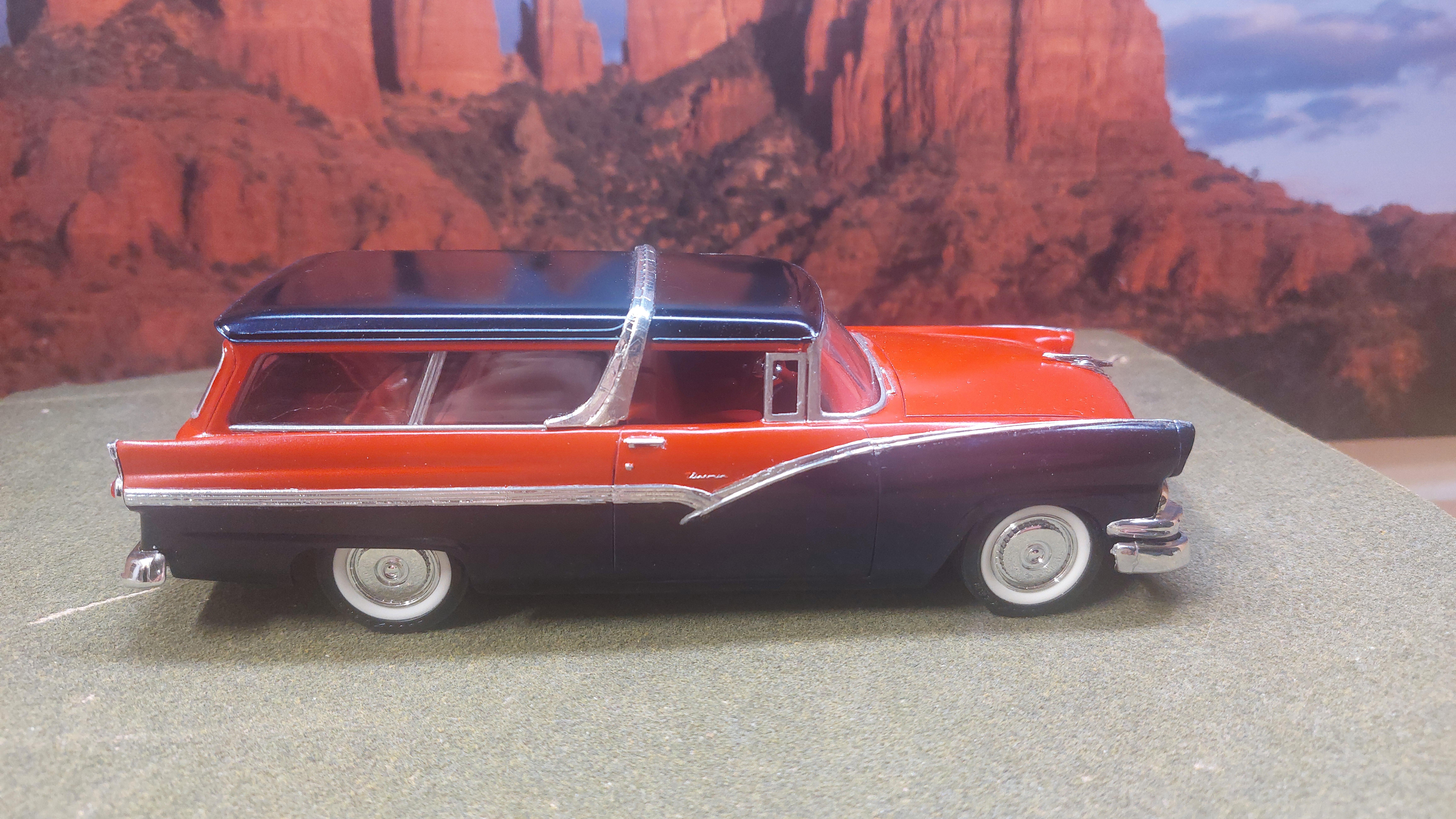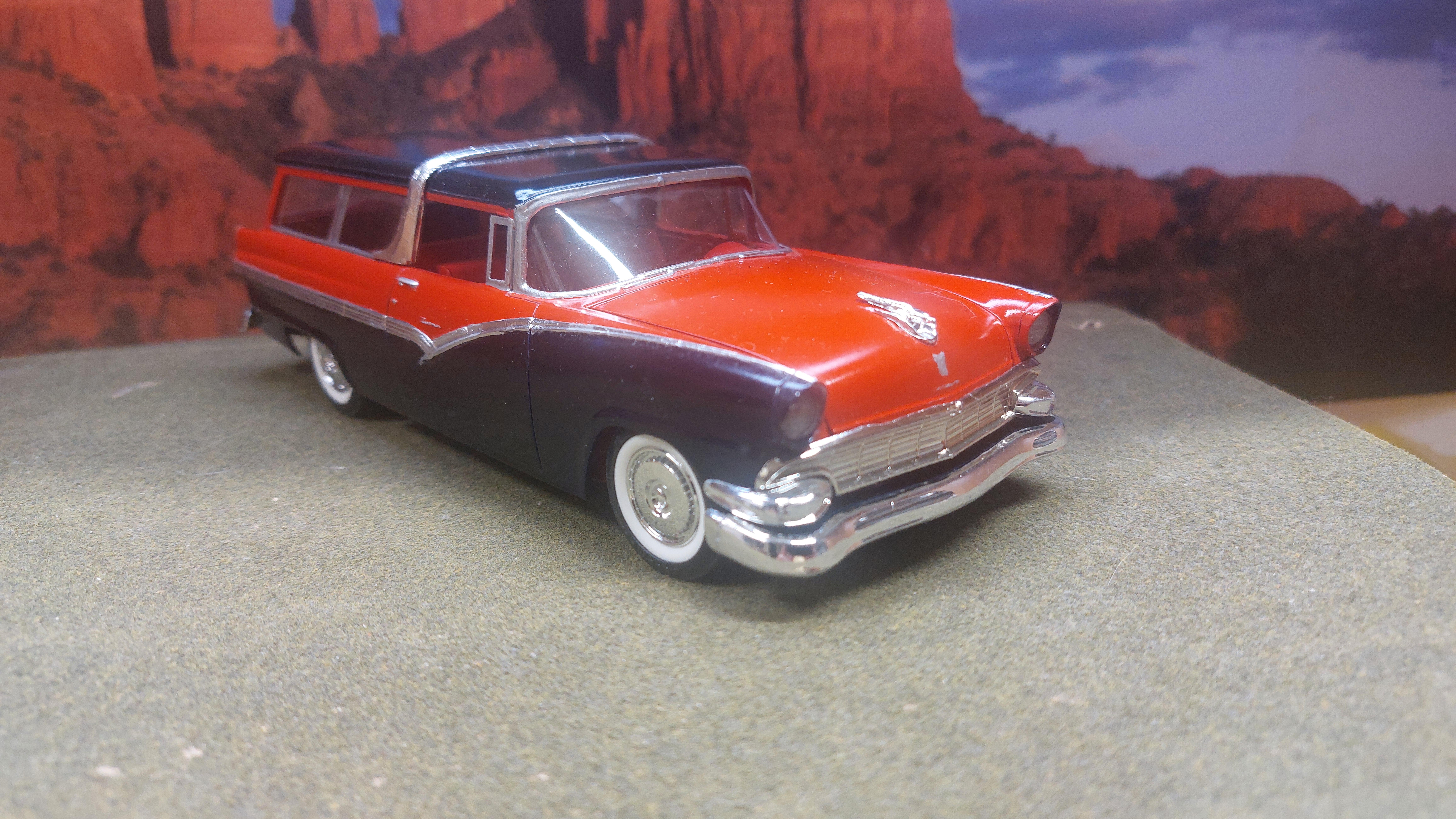 this was a kit bash i started a while back and had it so close and wasnt sure on something. ended up that i was missing the strip under rear quarter windows to finish assembly of build. made from a 56 ford kit and 57 ford del rio wagon kit. build # 641 finished 11/27/25