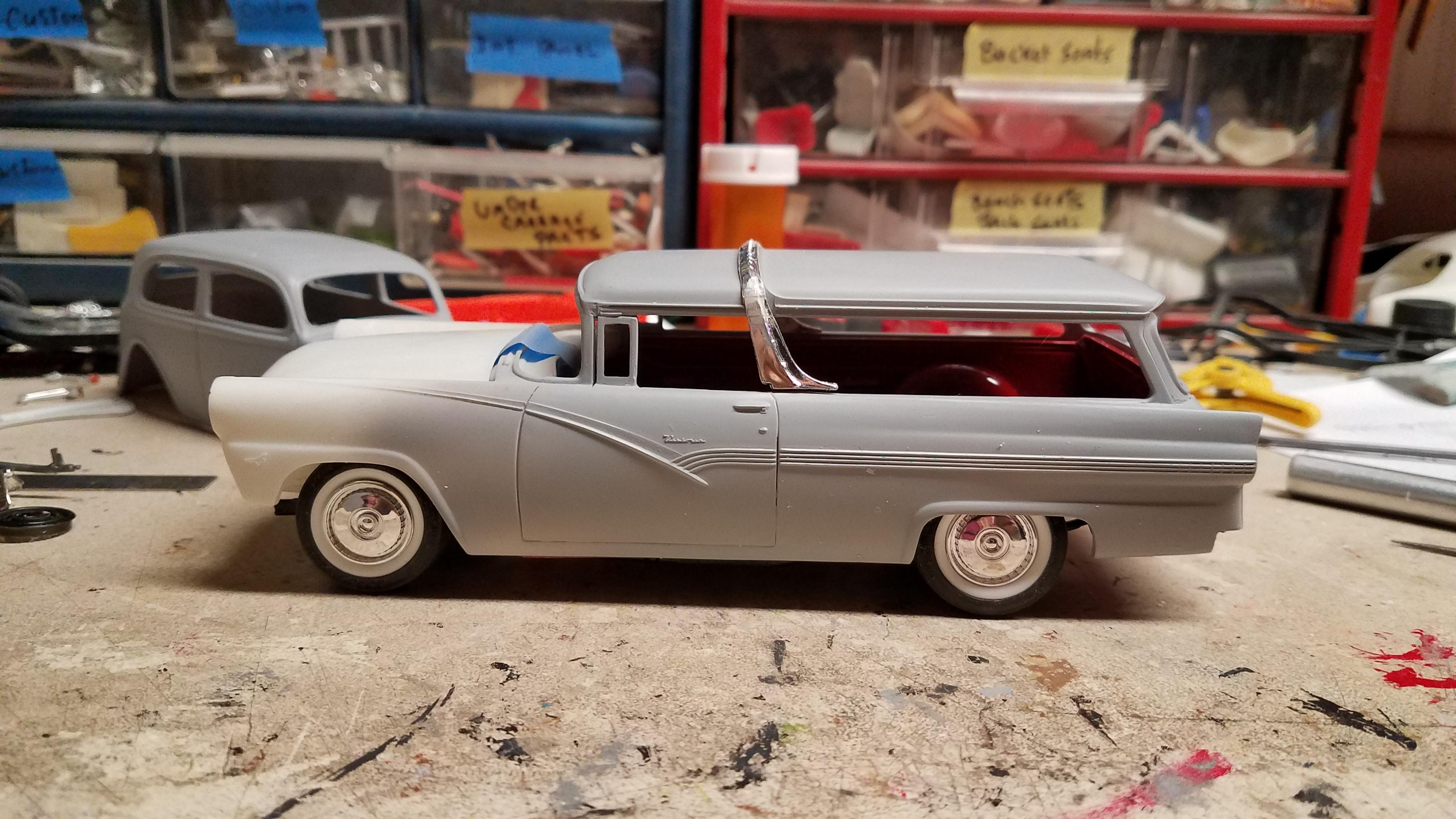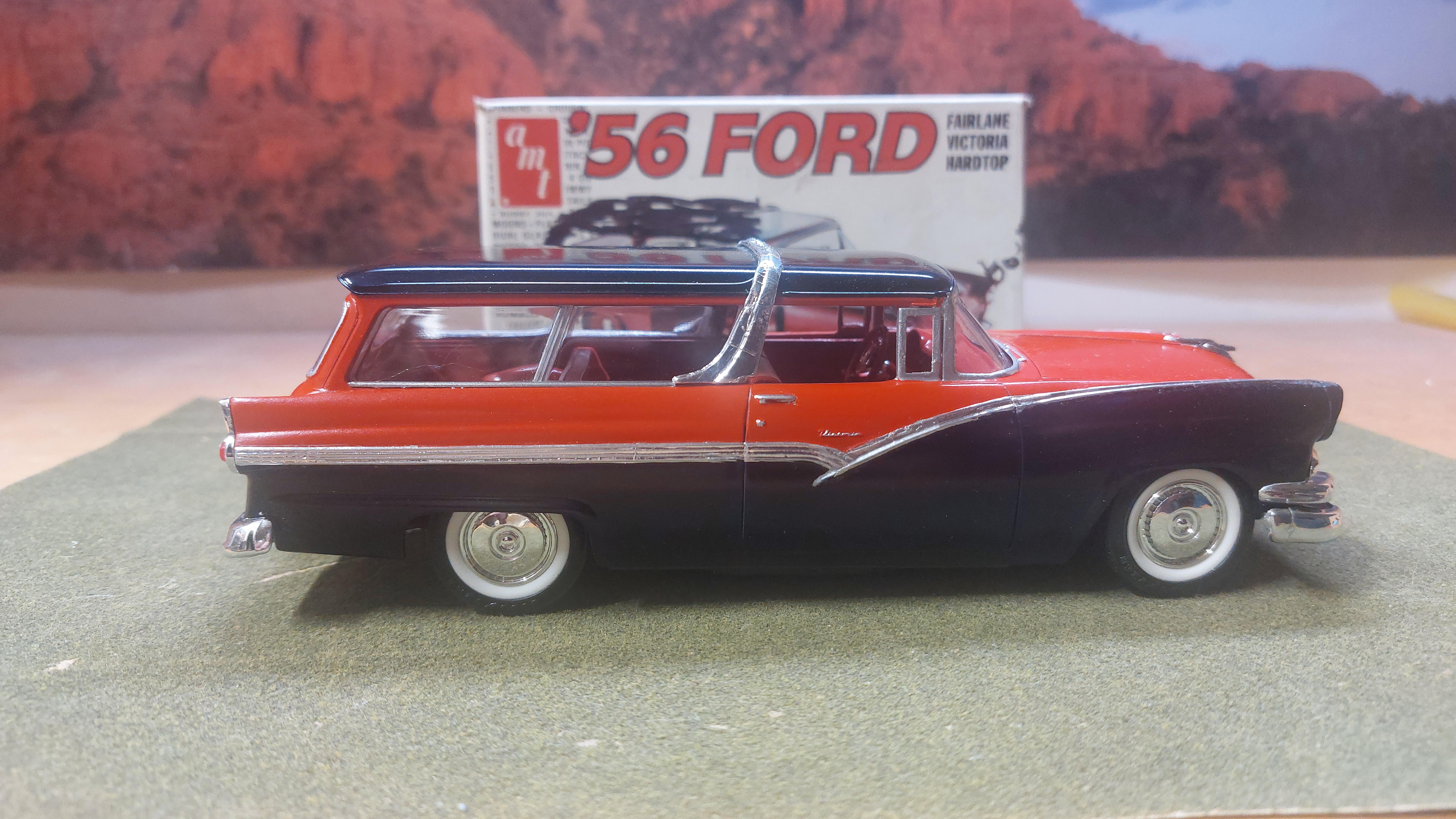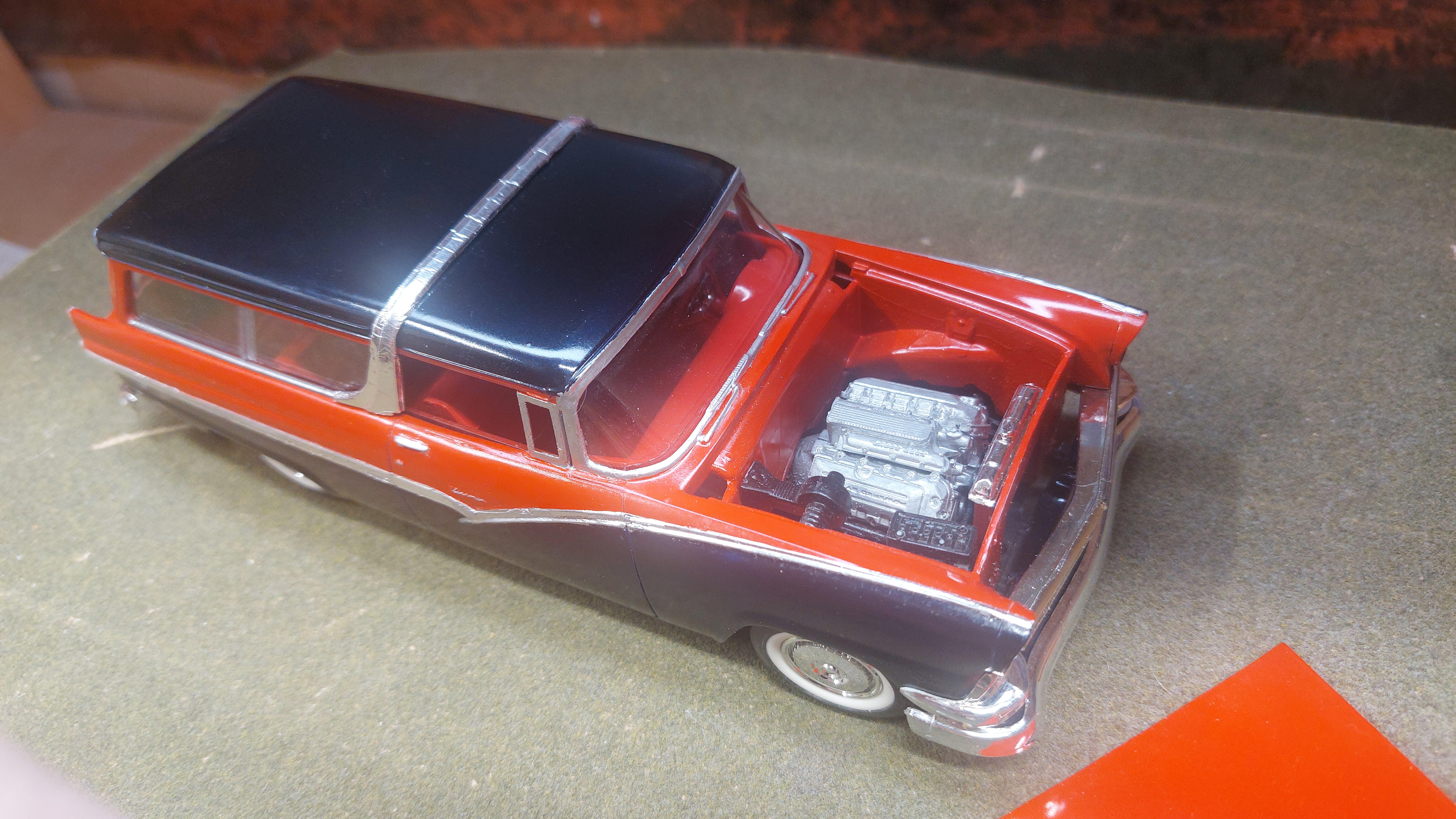 this was a kit bash i started a while back and had it so close and wasnt sure on something. ended up that i was missing the strip under rear quarter windows to finish assembly of build. made from a 56 ford kit and 57 ford del rio wagon kit. build # 641 finished 11/27/25
