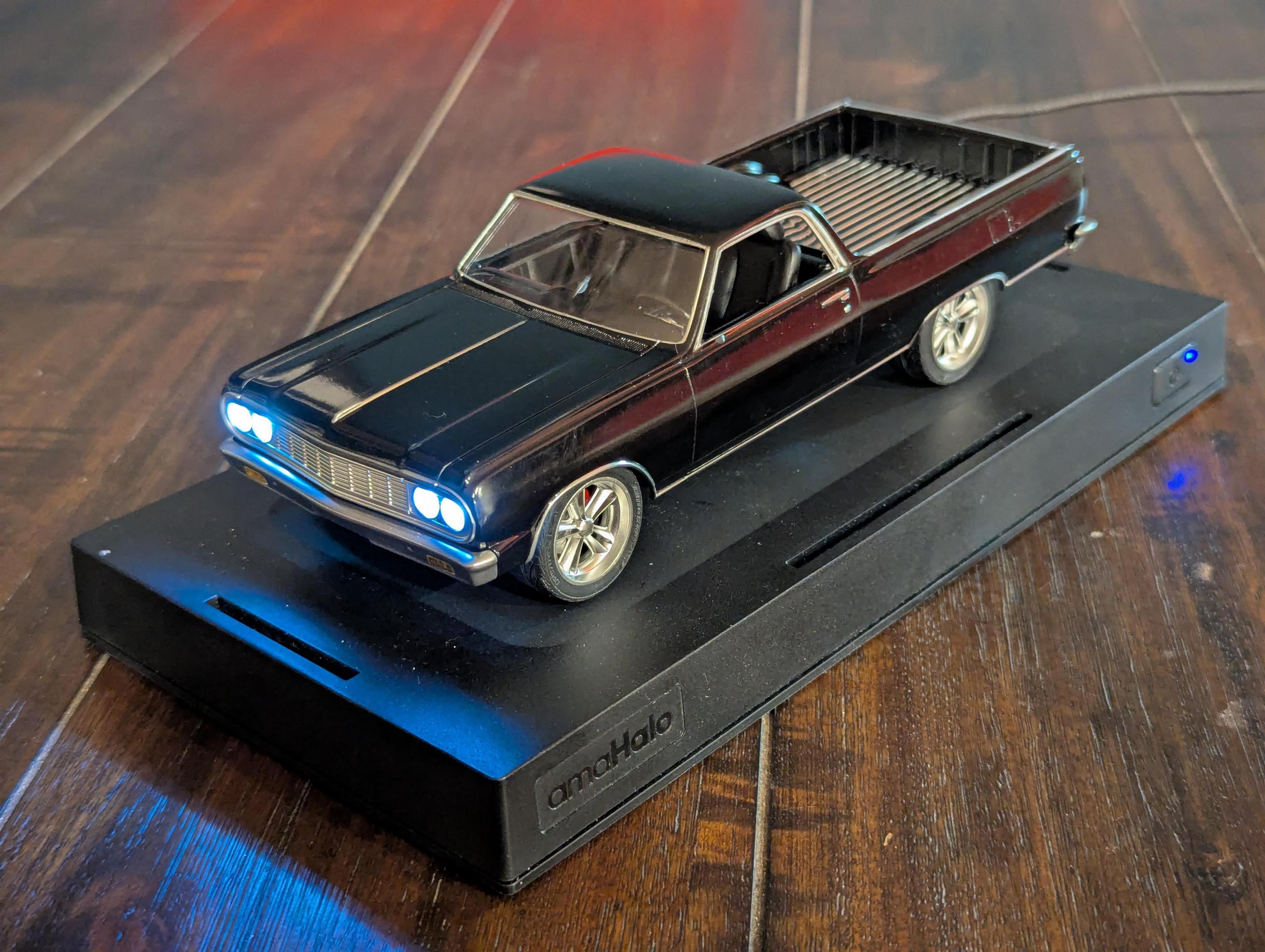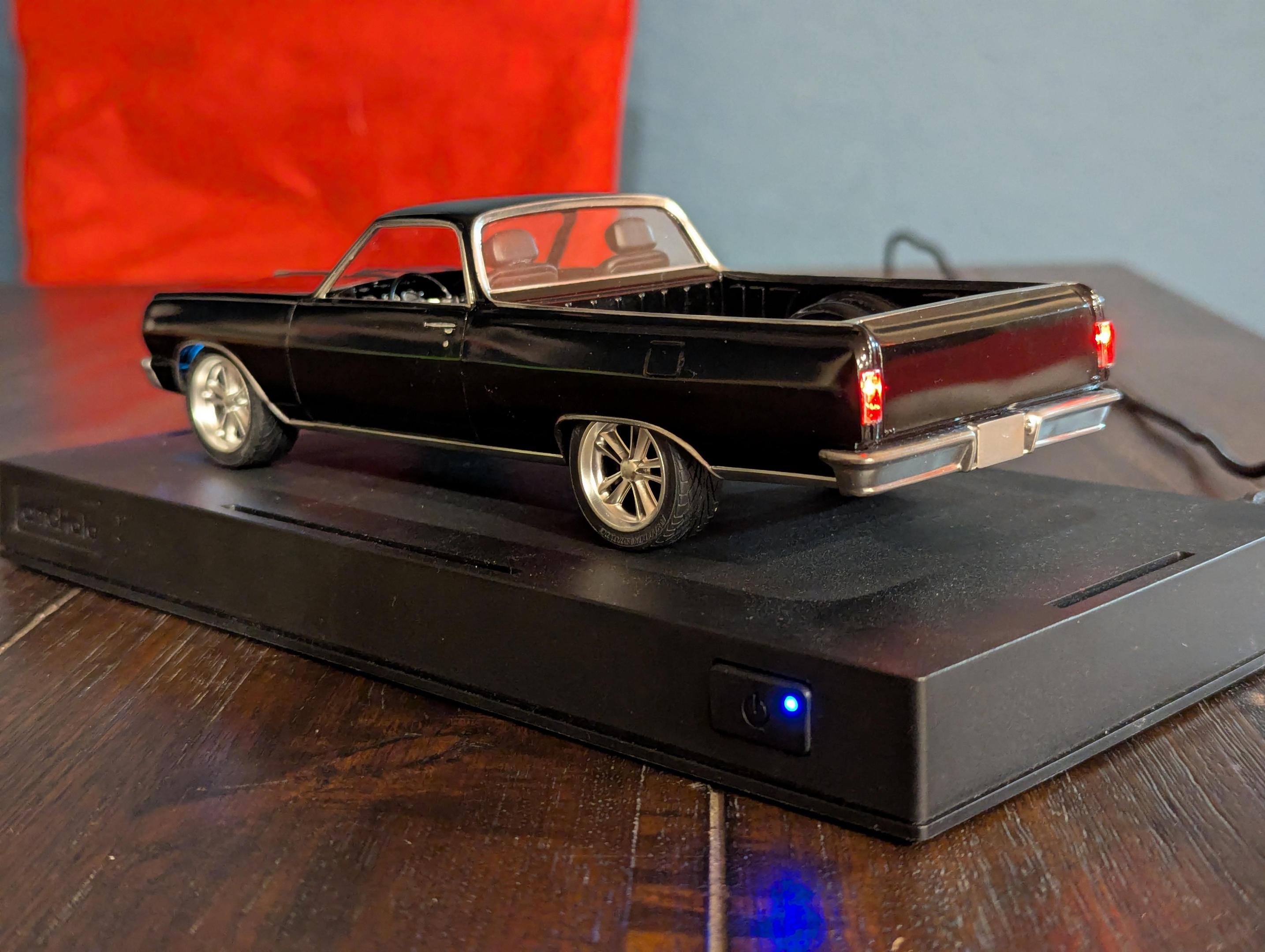 It's been a while since I last posted, but I'm closing in on getting it finished. I finally decided on a lighting solution, I went (relatively) simple and found a display case that has a built in capacitive wireless power coil and capacitive LEDs. I also finished up the body work and have moved on to painting. I've got the gloss black in a place that I'm happy with it and I'm going to start on the chrome. I am also finishing up the CAD work on the custom mirrors which are the last bit I need to print. It's going to be right up to the wire but it should be done for Christmas. PXL_20241221_154420682.mp4 Testing the base and light install: -