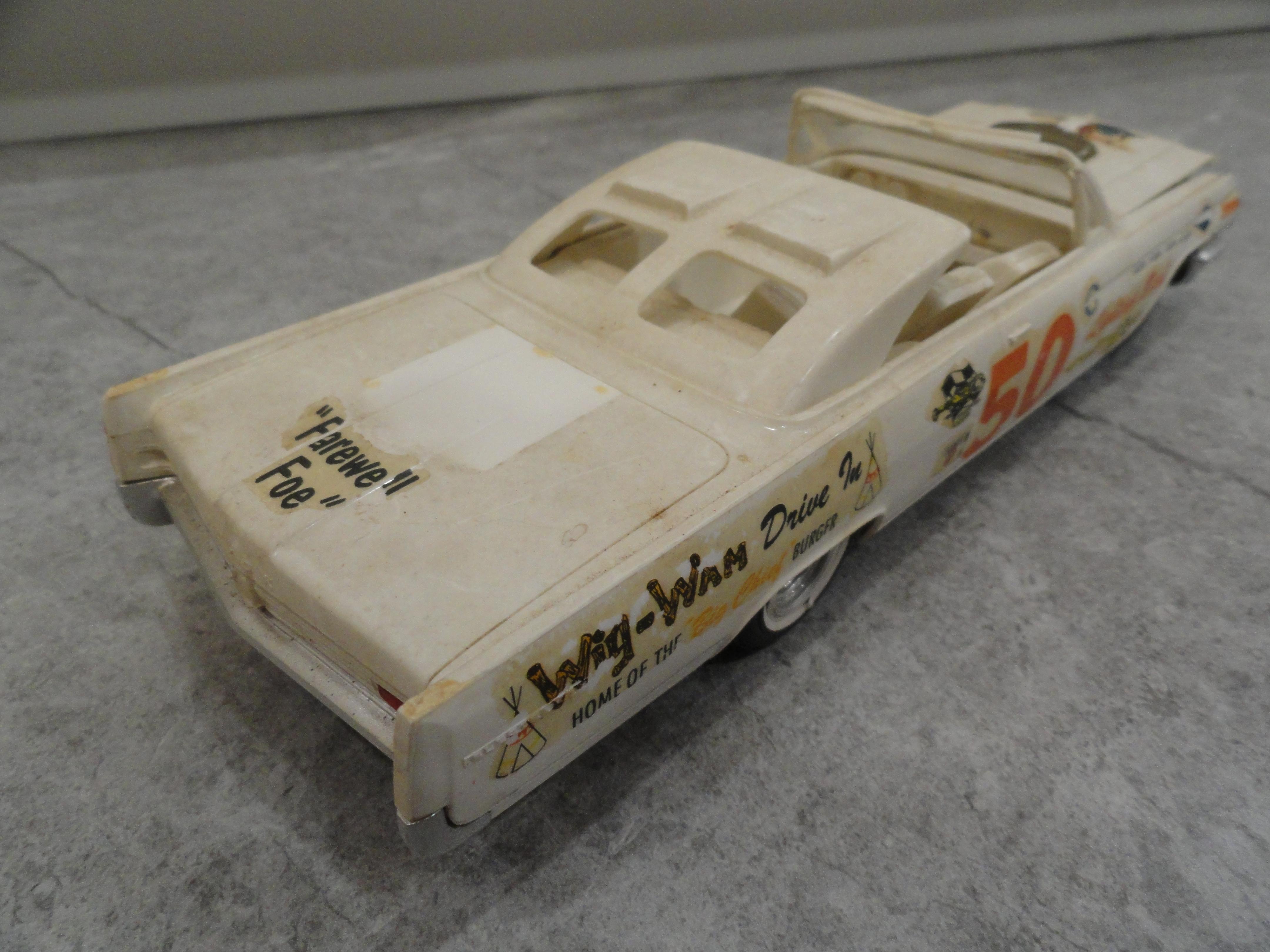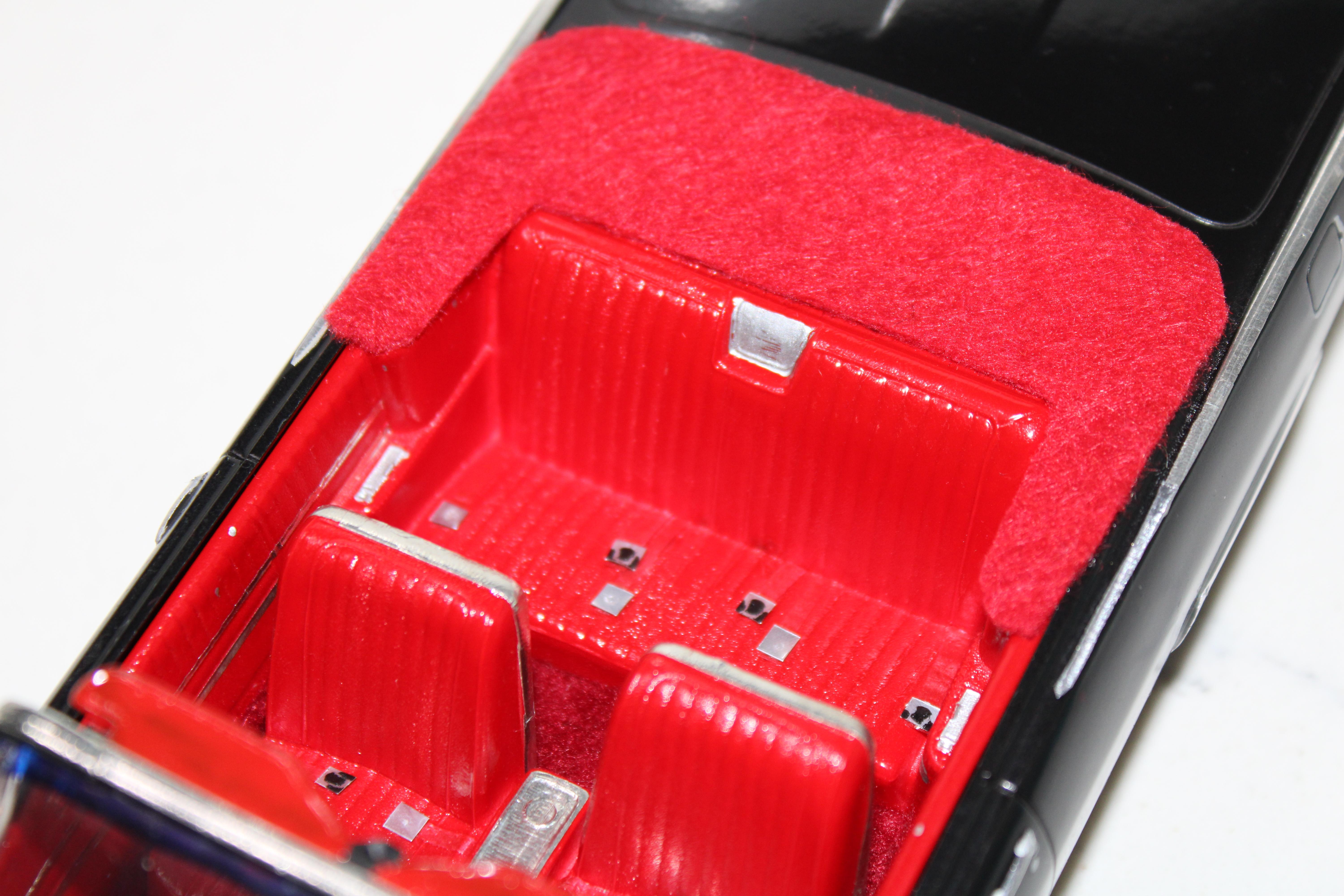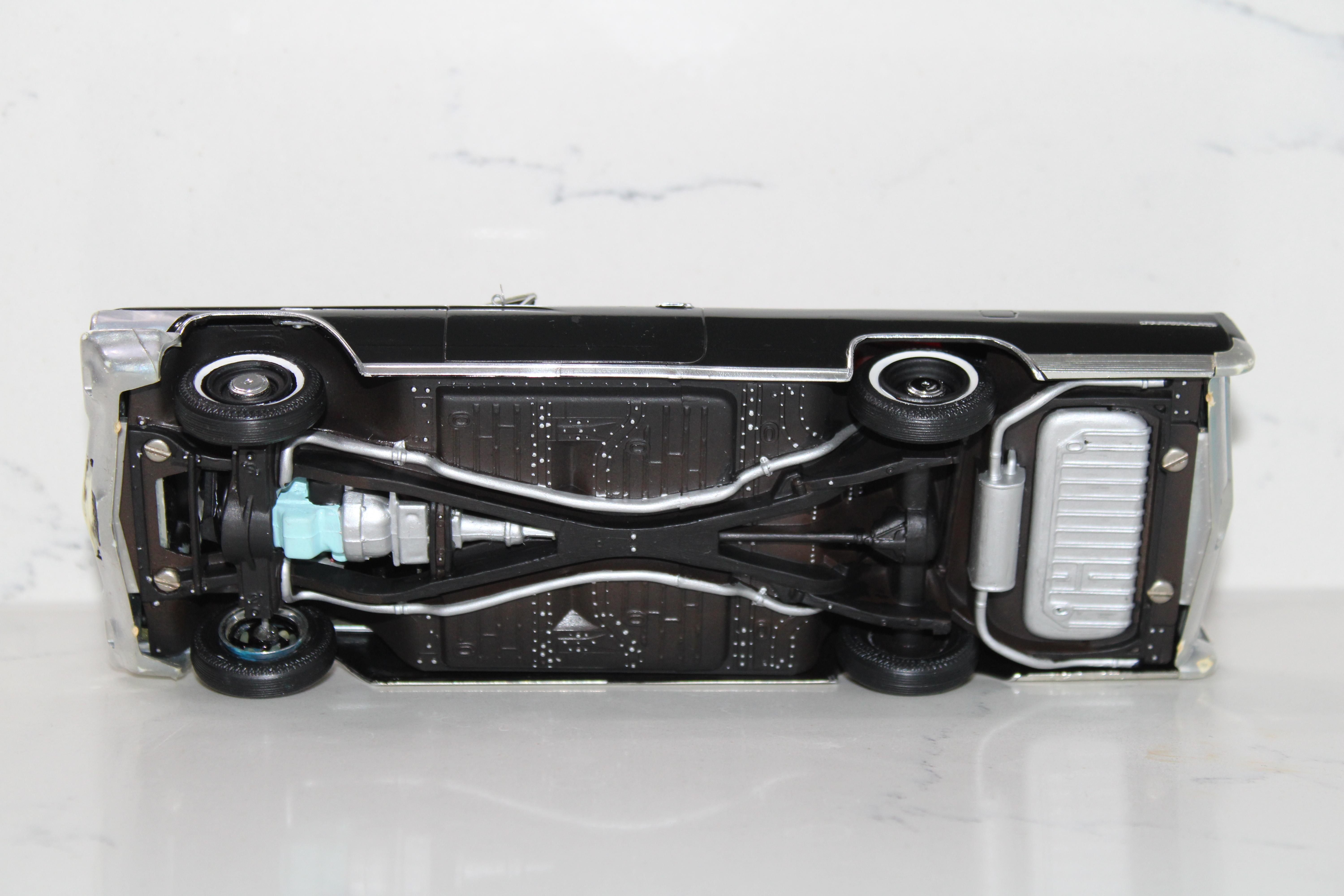 AMT 1/25 scale 1969 Chevrolet Impala SS 427 in Burgundy with black vinyl top. This one is a restored and detailed dealership promotional model made from two model cars(one hardtop and the other a convertible) to create one complete car with all original parts. I've included pics of the condition of this car the way I found it and also the donor which was the convertible. I might fix up the droptop too or do something with it. I worked on the similar parts of the '69 and '70 Impala simultaneously. Like one week I worked on the chassis of both cars, the next week interiors of both cars, the following week the bodies and so on.