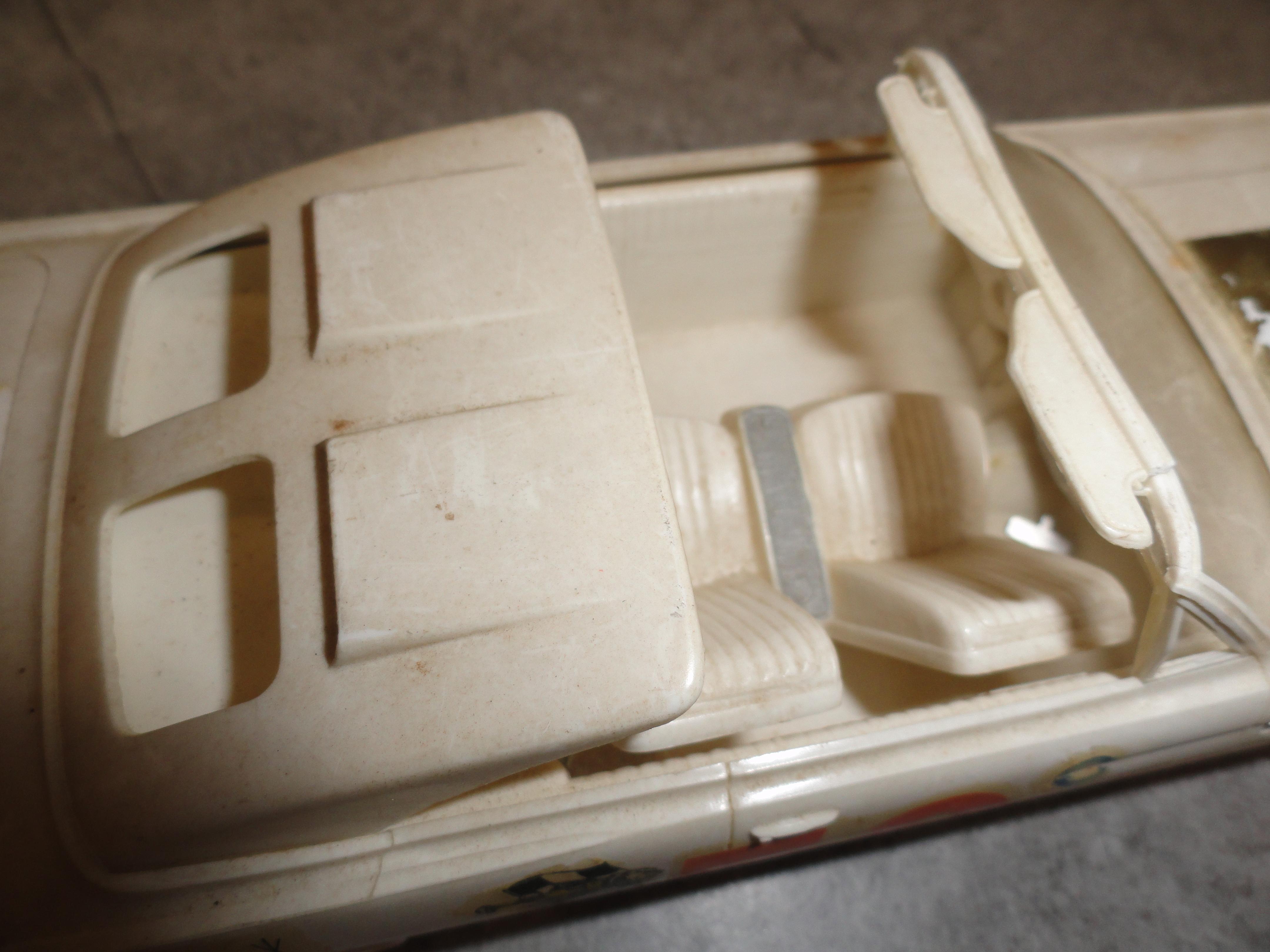 @oldcarfanSorry, somehow I missed your comment till now. The side windows does not open on this van. This one is curbside even if there's a nice engine included. You'll have to cut the hood open if you wish to show the engine from above. MPC did leave a scored cut line, but that's on the custom Dodge vans with no side windows from later in the decade where you can cut open a section of the roof to install a large glass that allows you to see the complete interior of the van.