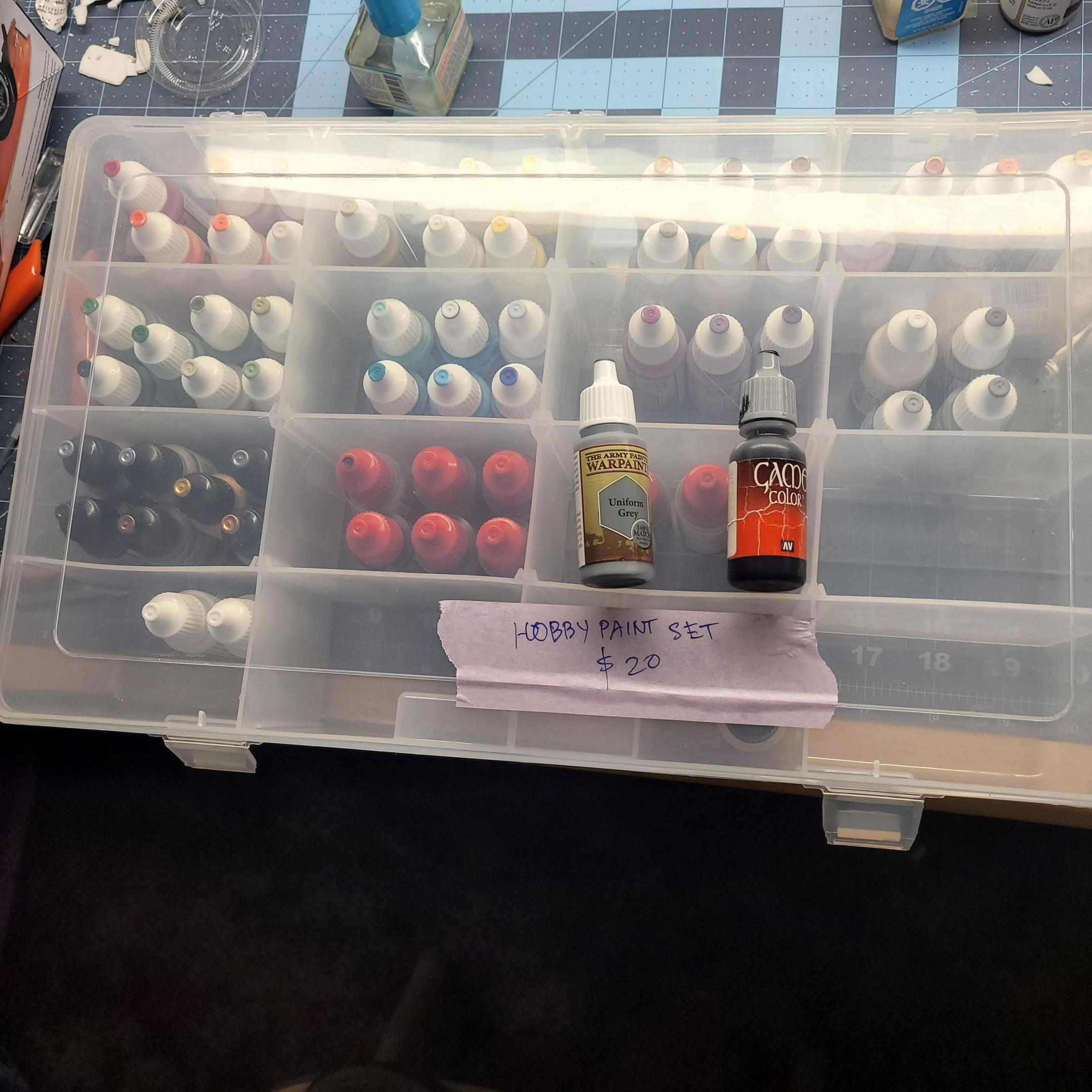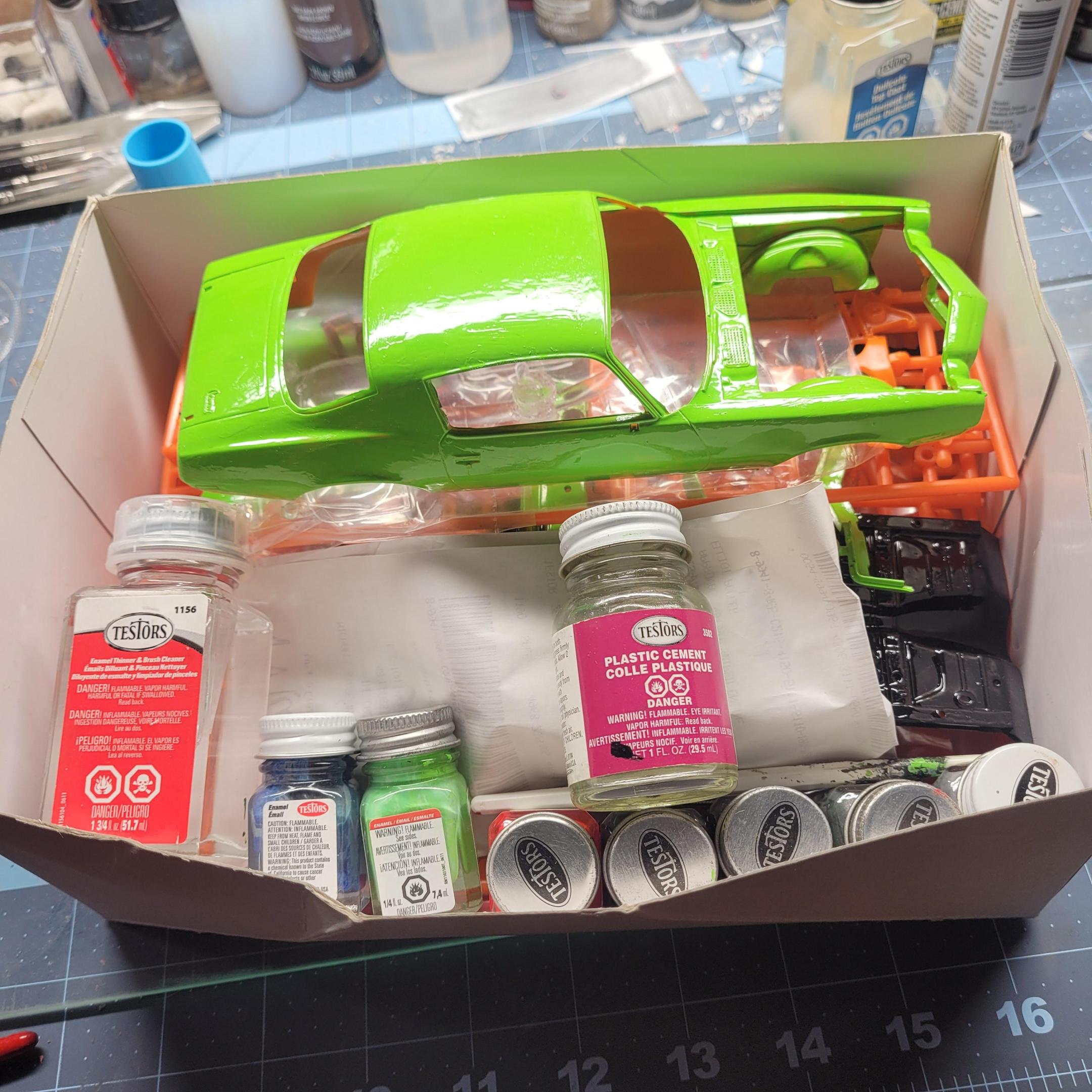 More flea market finds for me. Camaro was seven bucks, with "extras". Pretty decent score on some acrylic paints as well.