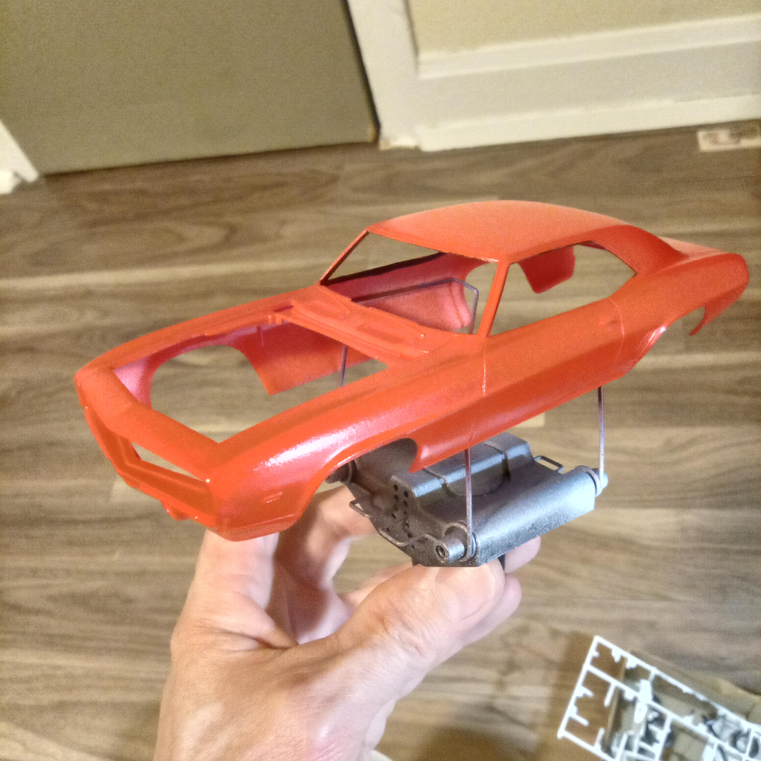 Looks orange ish in pic, budget phone cameras. I added Quick Shine to the paint and it sprayed well.