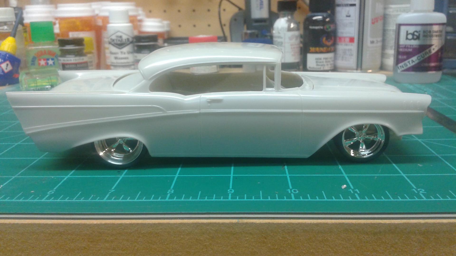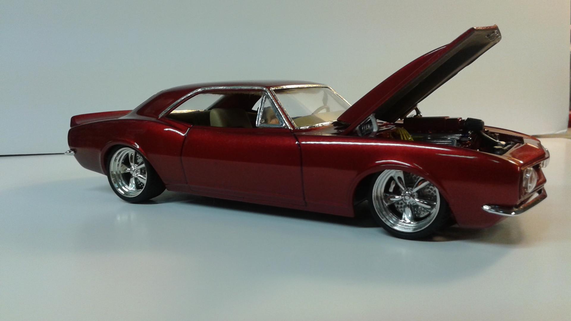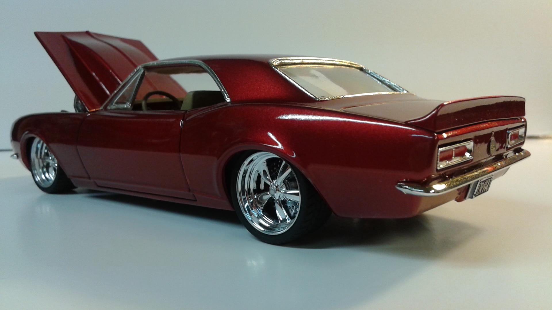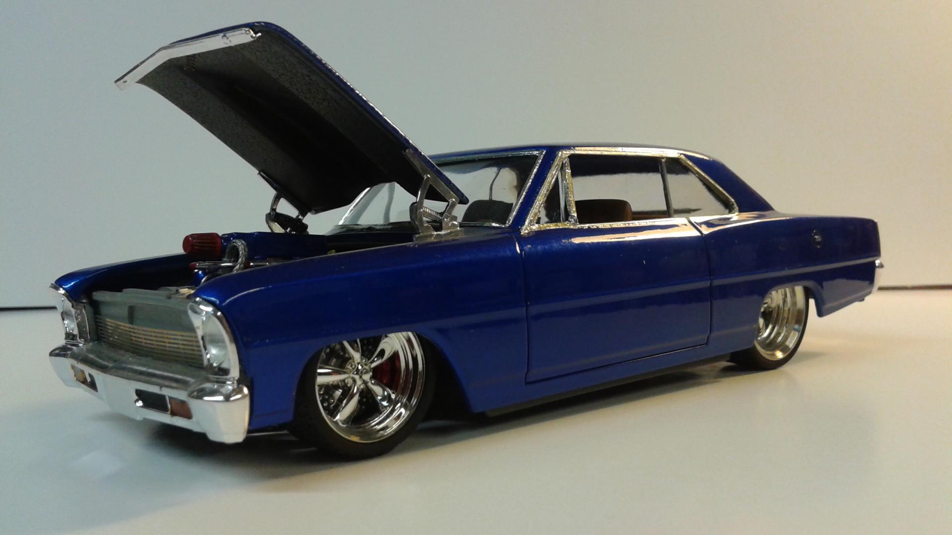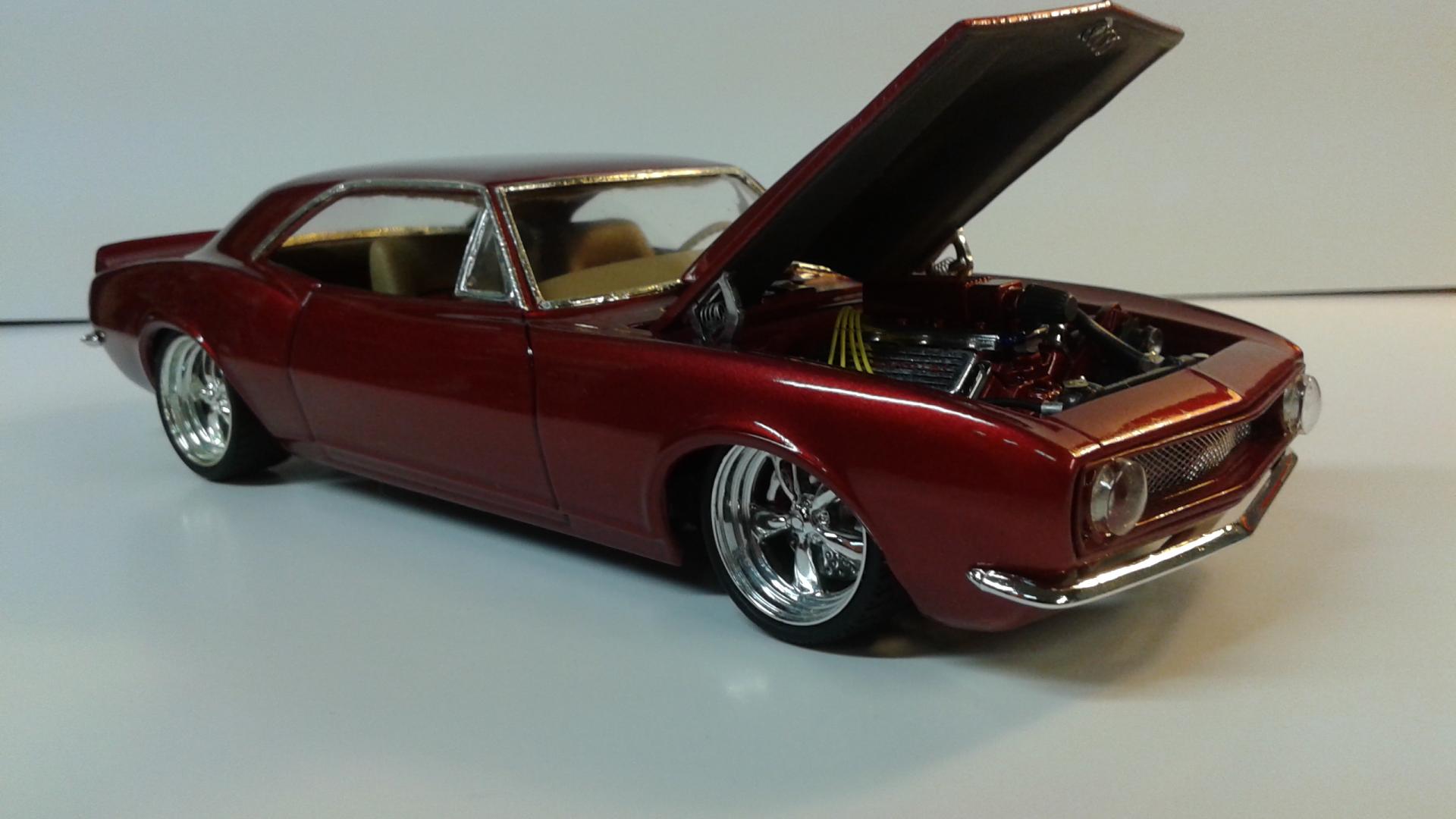 Sorry it's been while since I downloaded anything! Well this is my first build of the year 67 Chevelle pro touring pegasus wheels and disk brake. house of color pearl black over silver base and three coats of clear. Stock motor with wiring two tone interior black light gray some photo etched inside aluminum drive shafts and soldering for exhaust pipe. I did this build for my wife hope she likes it! ! Sorry for the wagon in pic.