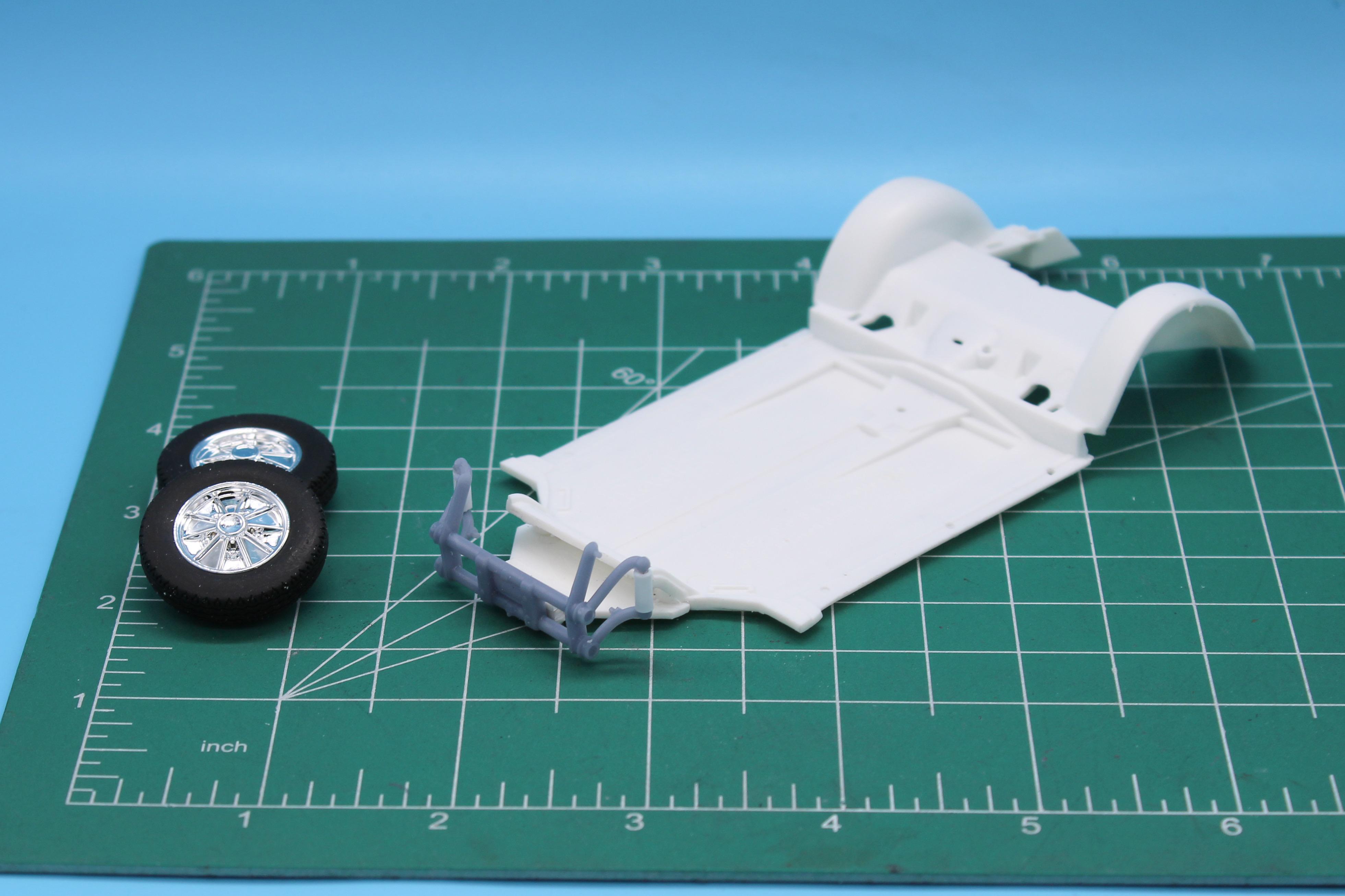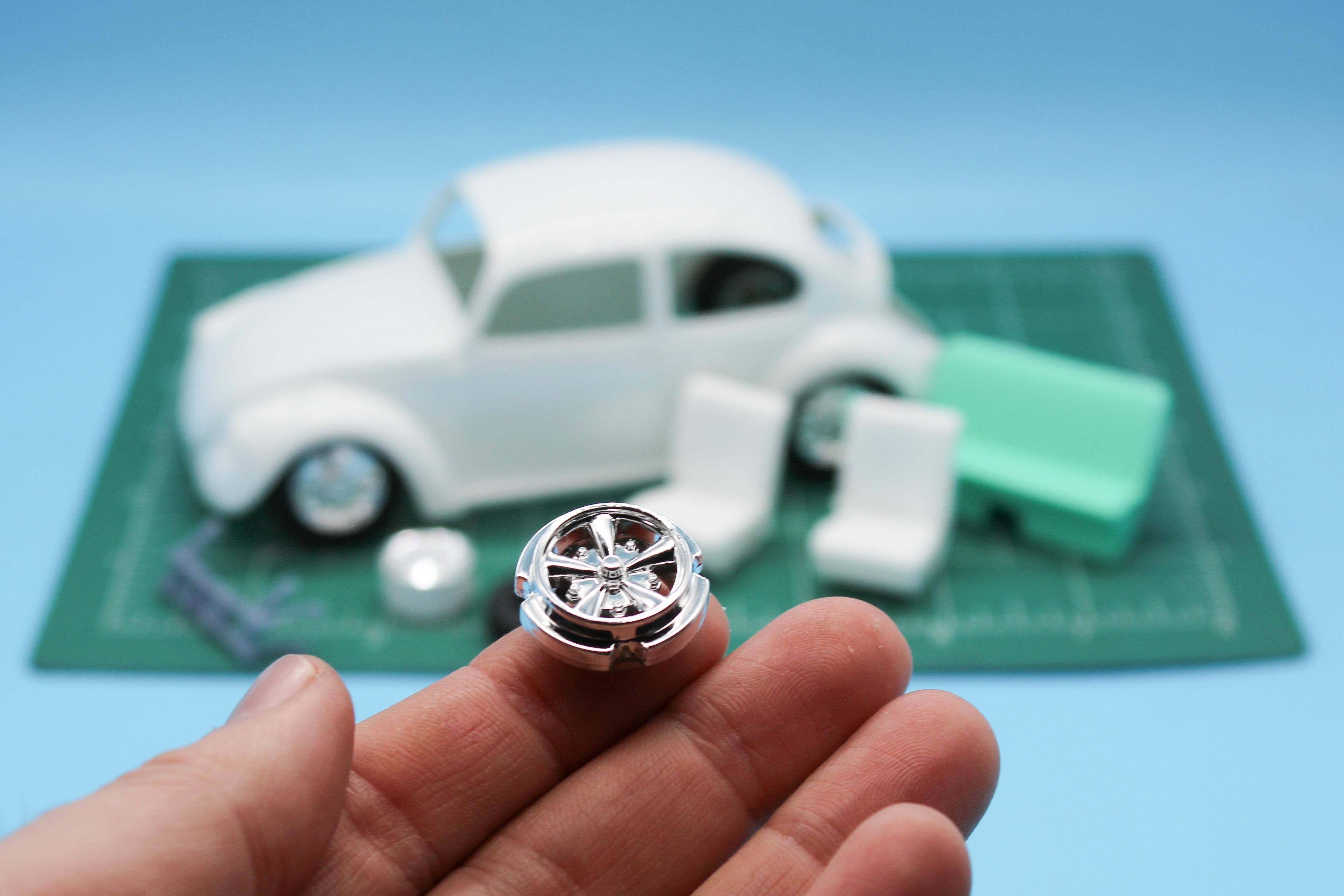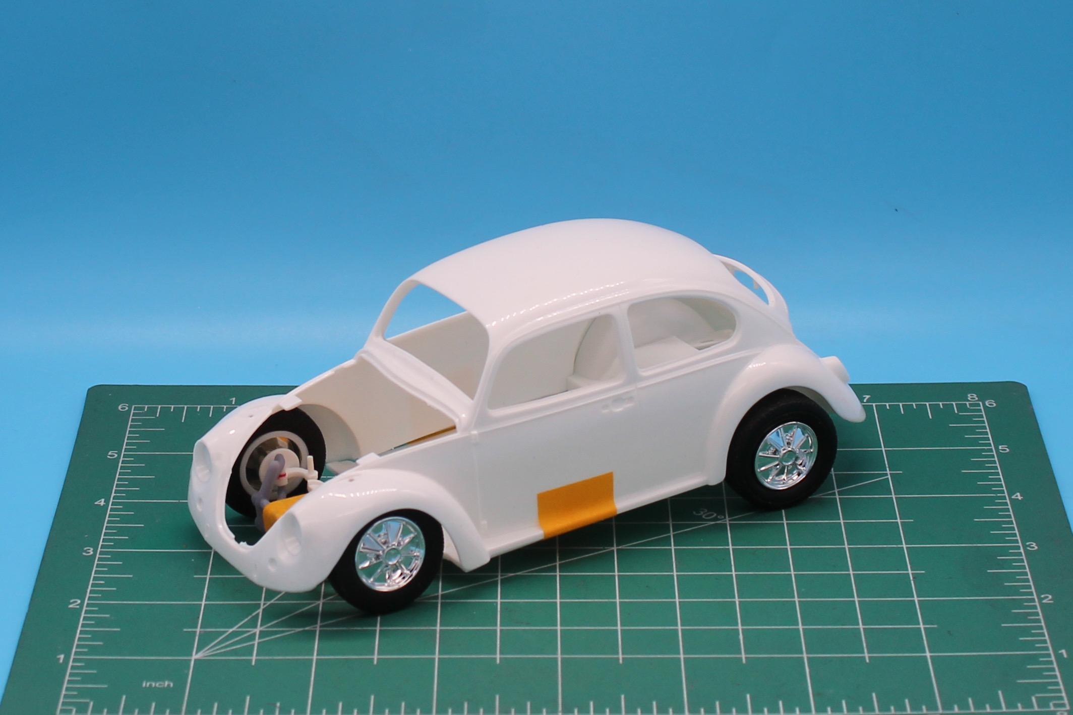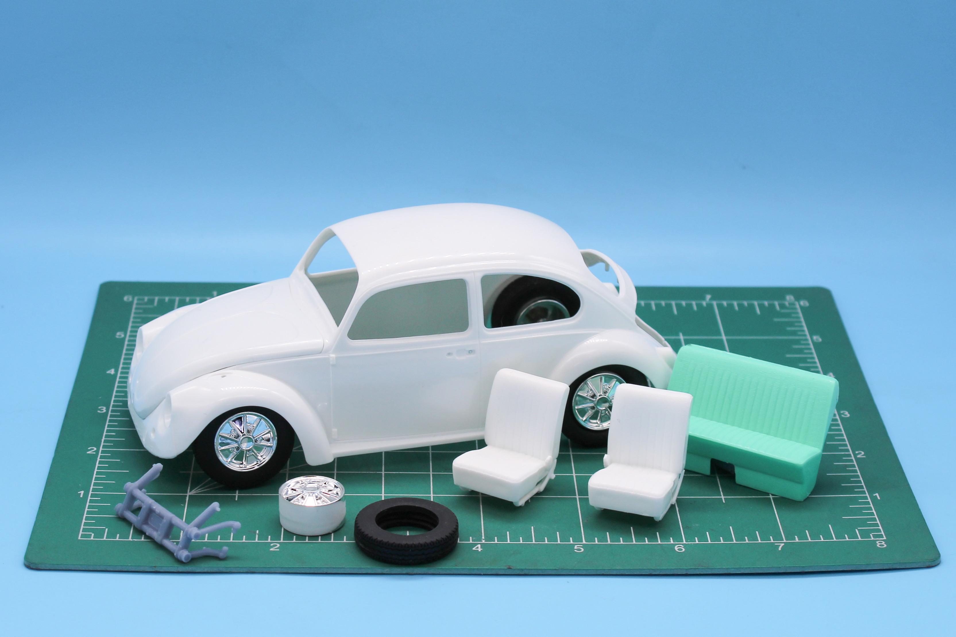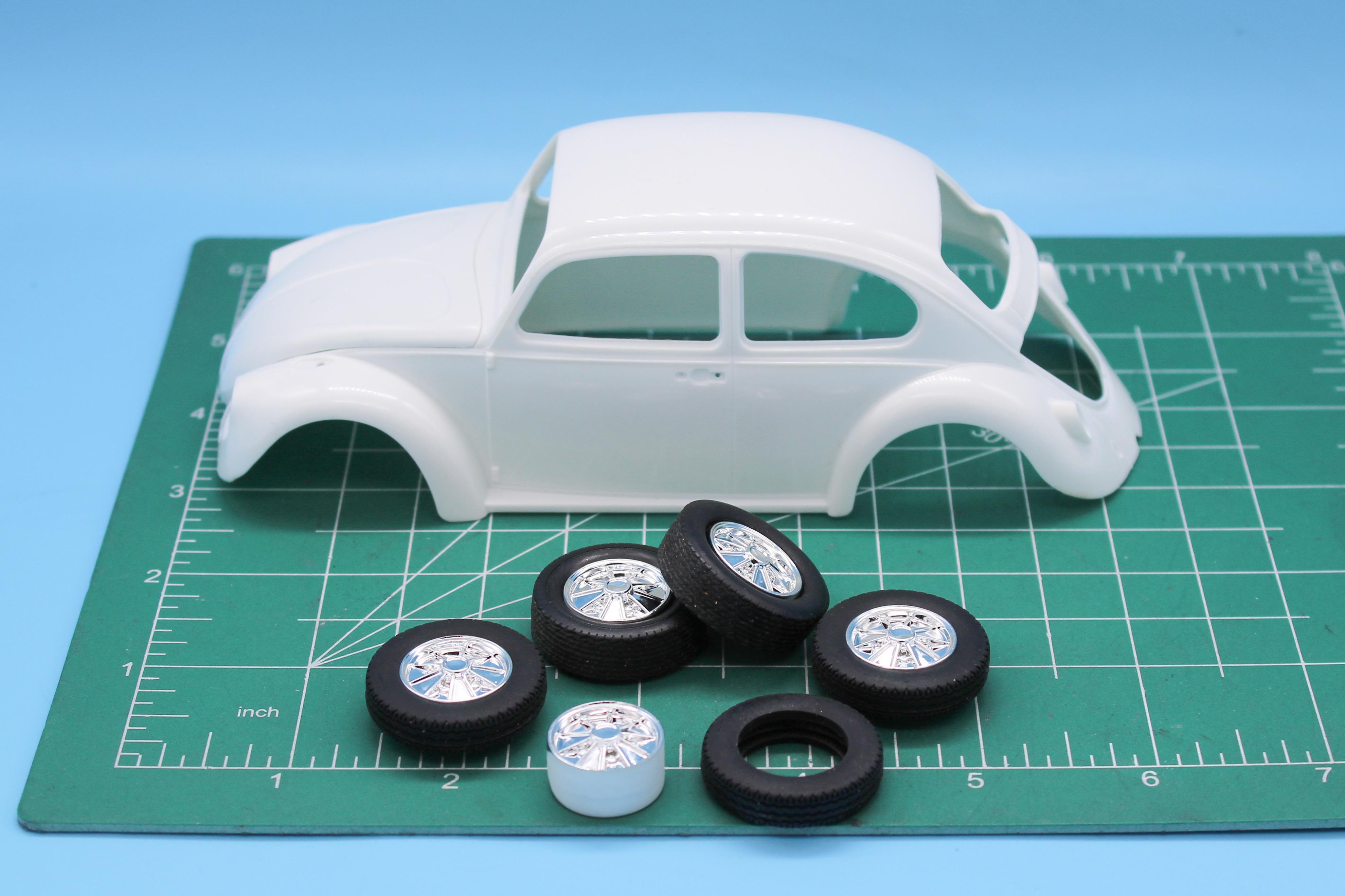 I spotted this Hot Wheels online a while back… …and thought something similar to it would make a cool 1:25 build, so here goes nothing with the Revell 68 kit… DISCLAIMER: I’m not a VW expert, and every time I think I know what I’m talking about I call something a ‘der kublevunken’ instead of a ‘das kumbledunken’ or something…I apologize in advance to the VW experts and beg forgiveness. I already called some BRMs ‘EMPIs’ and embarrassed myself on Instagram Anyhoo…here’s my ‘yard sale’…I already borrowed the bench seat for a different build but had one from the older Revell kit that I can swap in, and the wheels are (I THINK) from the Polar Lights Beetle kit? Those wheels have those lips molded in that lock into the tires like some manufacturers like to do…I’m going to swap tires for some from the parts box so first job is to spin them up in the lathe and remove the lips: Front tires are from the Revell kit, and I added a little rubber rake and width with some rears from the Revell 32 Ford series. The front end of this Revell kit has the front suspension setup molded in, but I’m going to swap it out for a printed piece that also drops the front end some: The kit swing arms will work fine, I think…modified the pins to suit the Polar Lights BRM (I think?) wheels… This car will sit lower than is feasible with a regular ‘static’ drop, so I’ll be adding some air-ride gubbins to justify the stance I want - and something worth doing if you want to gain an extra scale inch of clearance on this kit is removing these little strips inside the front wheel arches: Those are used to receive the inner wheel wells, but I’ll cross that bridge later on in the build… And here’s the current stance with the front dropped about where I want it: Tomorrow’s project will be dropping the back end a little, but just a smidge tho… Thanks for looking…more soon, soon as I’ve done more!
