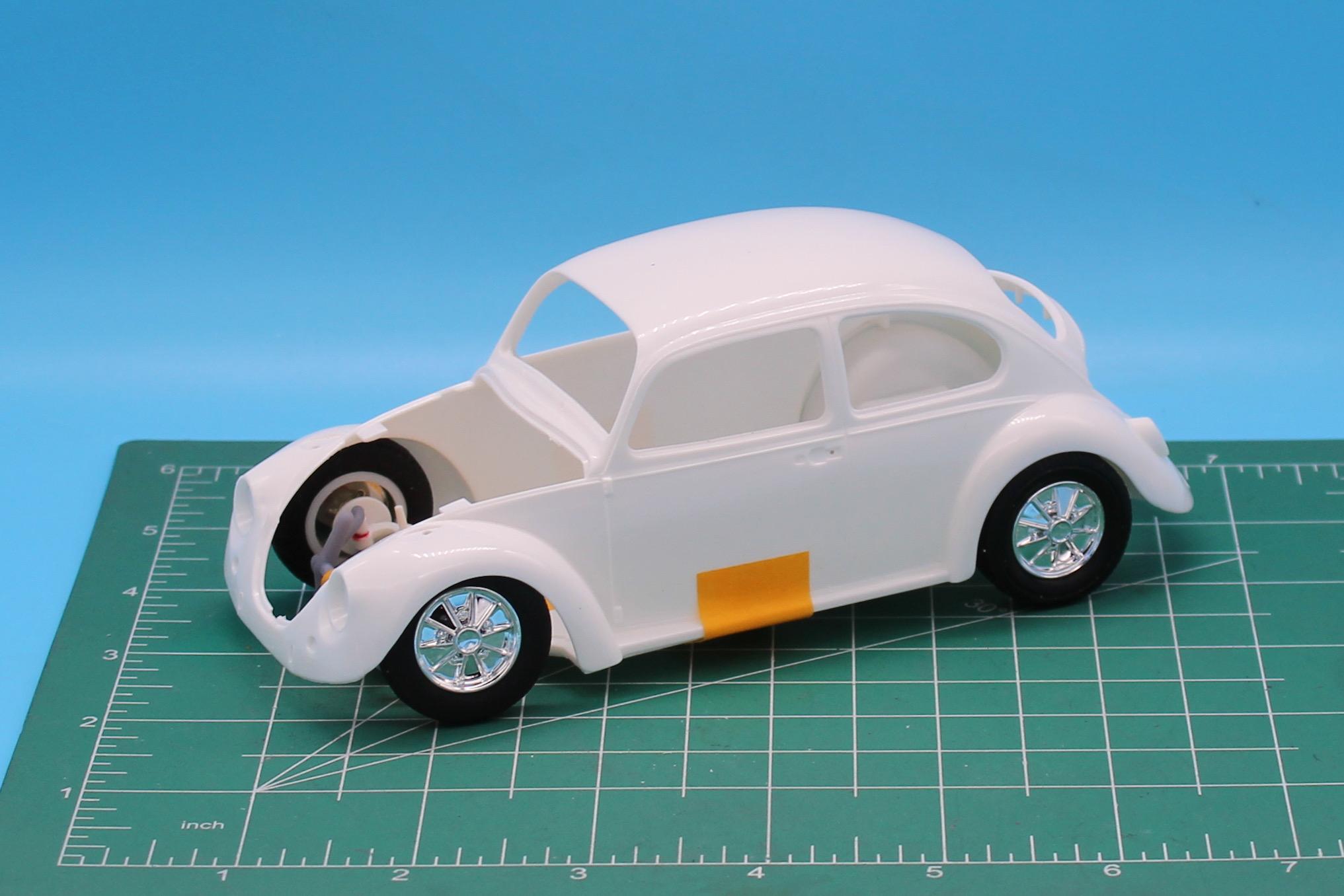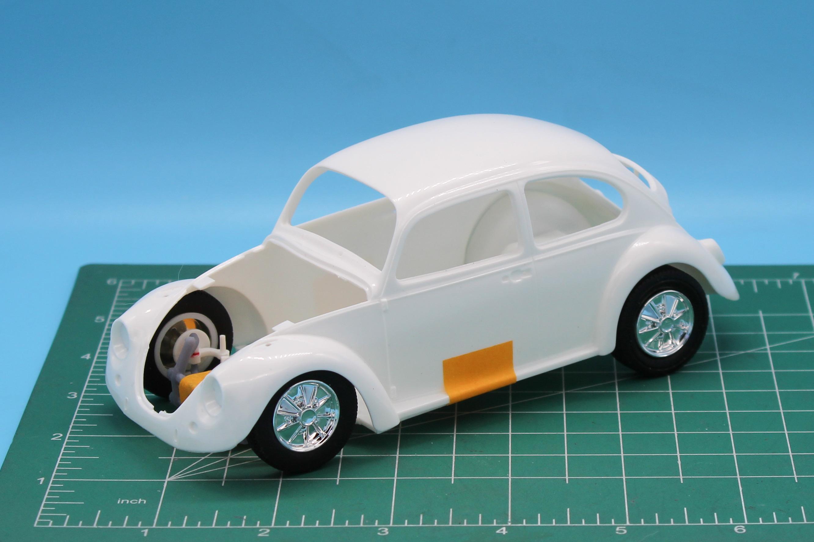 I spotted this Hot Wheels online a while back… …and thought something similar to it would make a cool 1:25 build, so here goes nothing with the Revell 68 kit… DISCLAIMER: I’m not a VW expert, and every time I think I know what I’m talking about I call something a ‘der kublevunken’ instead of a ‘das kumbledunken’ or something…I apologize in advance to the VW experts and beg forgiveness. I already called some BRMs ‘EMPIs’ and embarrassed myself on Instagram Anyhoo…here’s my ‘yard sale’…I already borrowed the bench seat for a different build but had one from the older Revell kit that I can swap in, and the wheels are (I THINK) from the Polar Lights Beetle kit? Those wheels have those lips molded in that lock into the tires like some manufacturers like to do…I’m going to swap tires for some from the parts box so first job is to spin them up in the lathe and remove the lips: Front tires are from the Revell kit, and I added a little rubber rake and width with some rears from the Revell 32 Ford series. The front end of this Revell kit has the front suspension setup molded in, but I’m going to swap it out for a printed piece that also drops the front end some: The kit swing arms will work fine, I think…modified the pins to suit the Polar Lights BRM (I think?) wheels… This car will sit lower than is feasible with a regular ‘static’ drop, so I’ll be adding some air-ride gubbins to justify the stance I want - and something worth doing if you want to gain an extra scale inch of clearance on this kit is removing these little strips inside the front wheel arches: Those are used to receive the inner wheel wells, but I’ll cross that bridge later on in the build… And here’s the current stance with the front dropped about where I want it: Tomorrow’s project will be dropping the back end a little, but just a smidge tho… Thanks for looking…more soon, soon as I’ve done more!