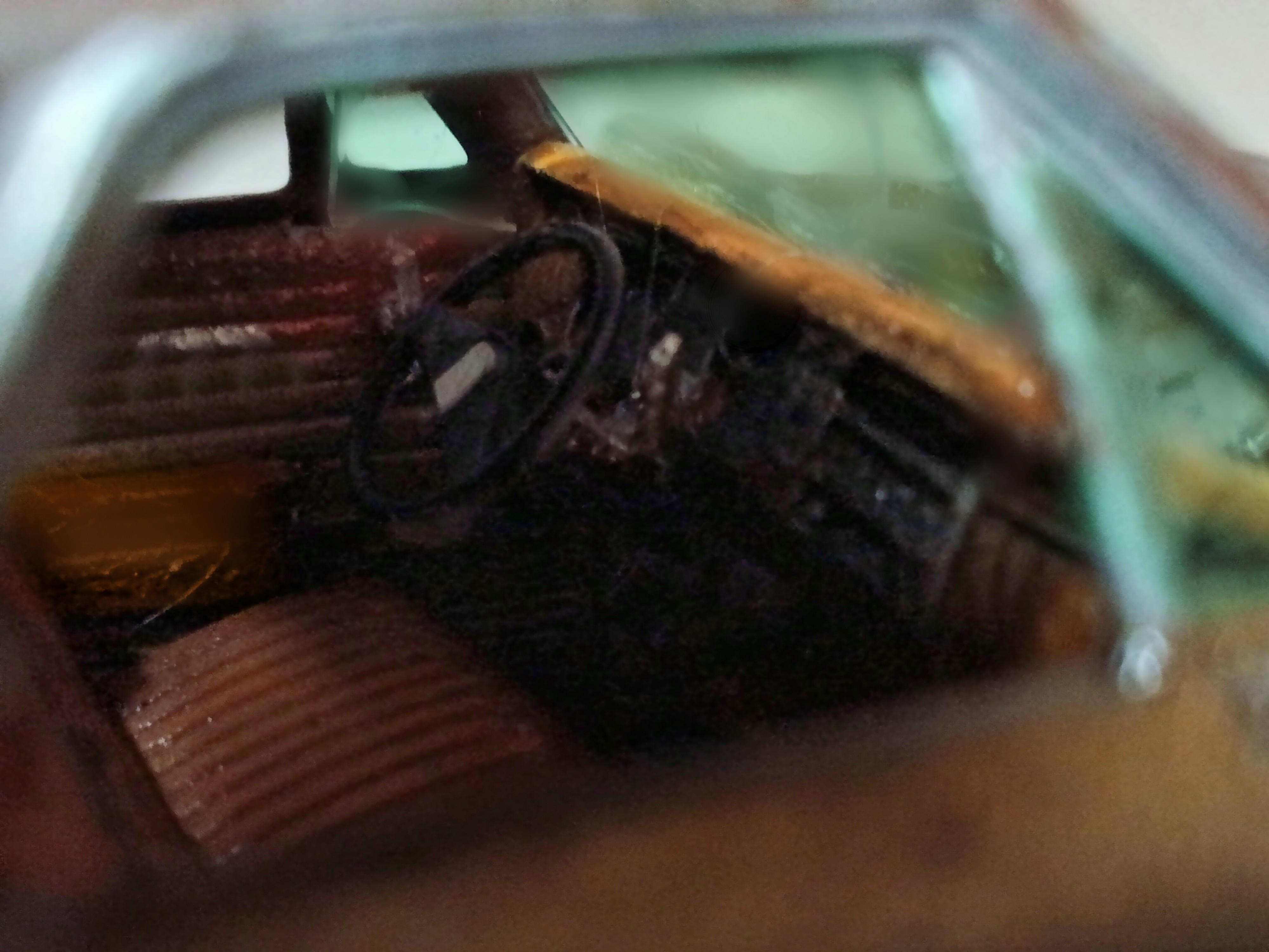 Update on my 1/25 scale MPC 1928 Lincoln Model L dealership towing/service truck conversion. Patina paint is perfected, the hood will be set up as 2 movable/posable/demountable pieces & painted flat black or grey primer, along with the crankcase/sump and cylinder barrels (cylinder heads will be same color but not patinated), front glass is installed along with most of the tow crane, rear fenders have been bobbed and fronts made jagged/bent/crooked, driver is installed in the detailed, distressed interior and is made to look like a 1940s era "zoot suiter" in a 2-tone tan suit, brown face/hands and black hat/boots/tie/goatee/face & hand details. I still have a lot to do on this before I can truly call it finished, including adding some plant growth and dead vegetation caught up in the frame/axles/etc, and more oil/gas/grease leakage & license plates, as well as the whole top-end engine. But that's the beauty of taking a highly detailed/complicated kit and making a junkyard jewel from it. -