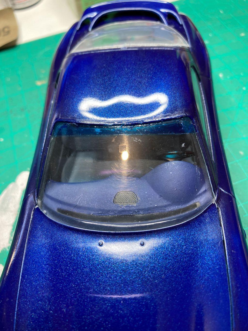 I tried to fix the mess I made with the windscreen install, not fixed, but better. I was able to put a tint band across the top with clear blue, it would have been much better without the previous damage, and not having used clear blue before, I was unsure how much to lay on there, so what you see is my guess work. Don