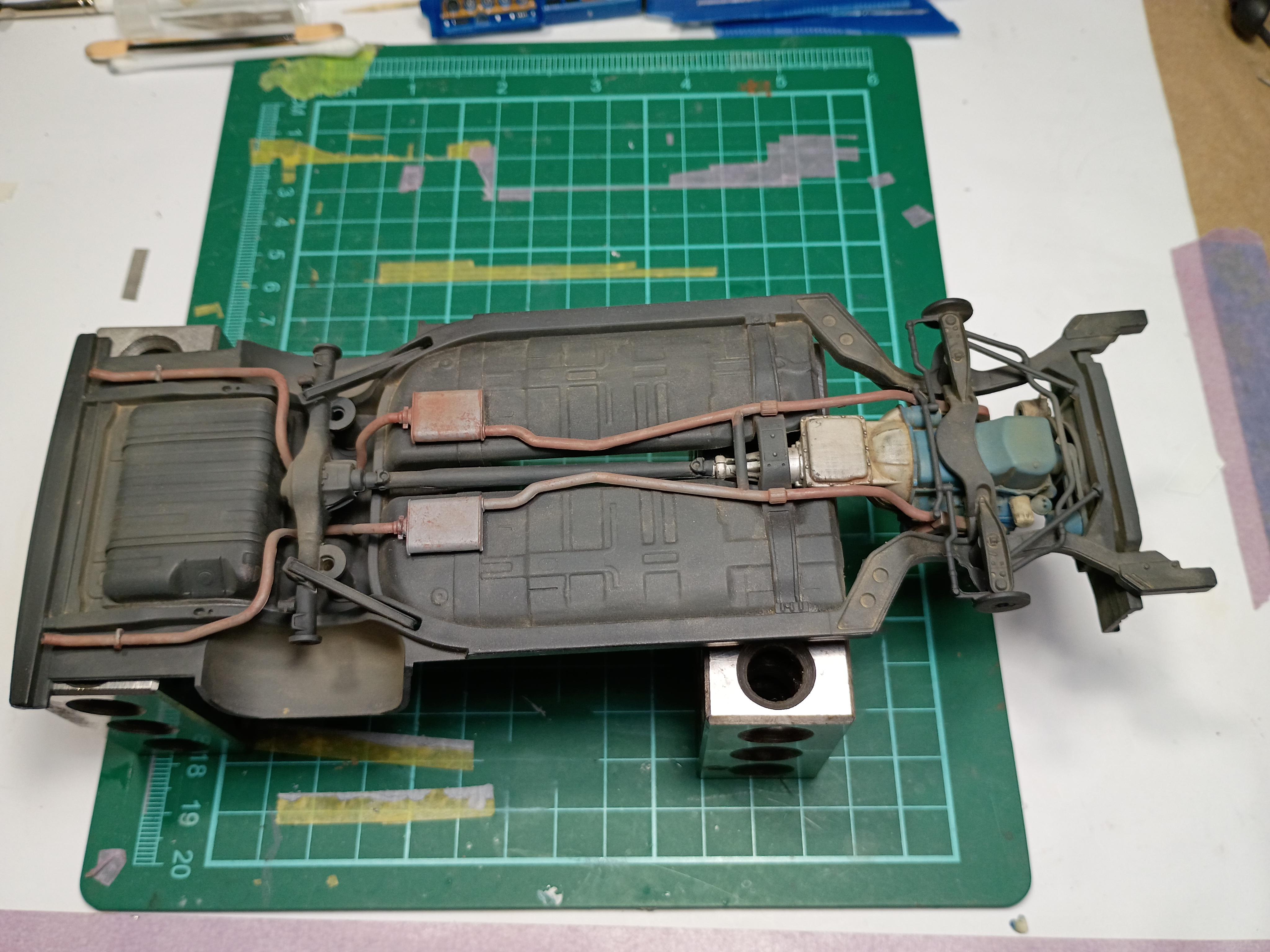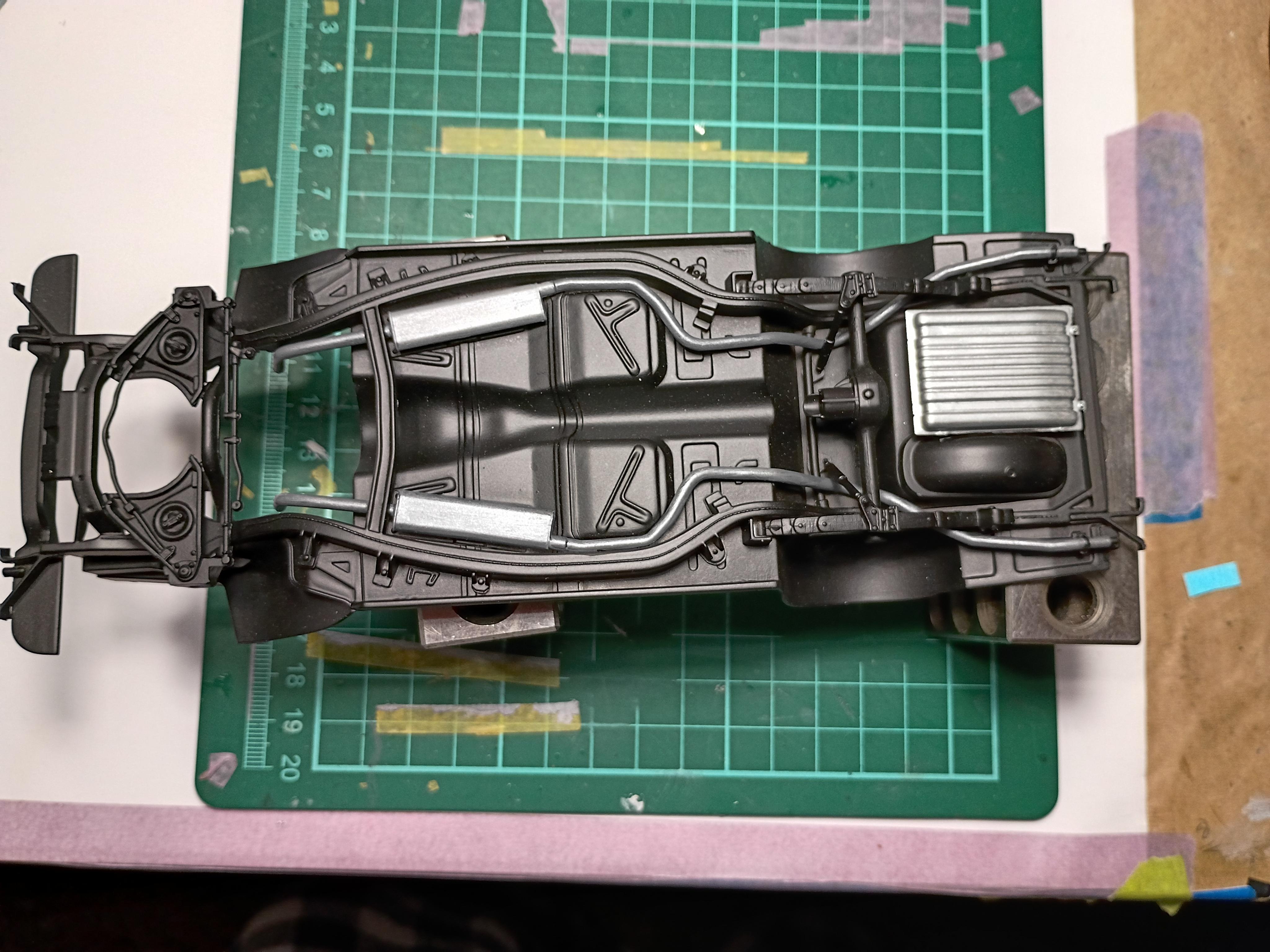 Did a bit of work on the chassis this weekend - mufflers, exhaust and gas tank. I'll jump on this one in the next day, while my Gran Torino is drying.