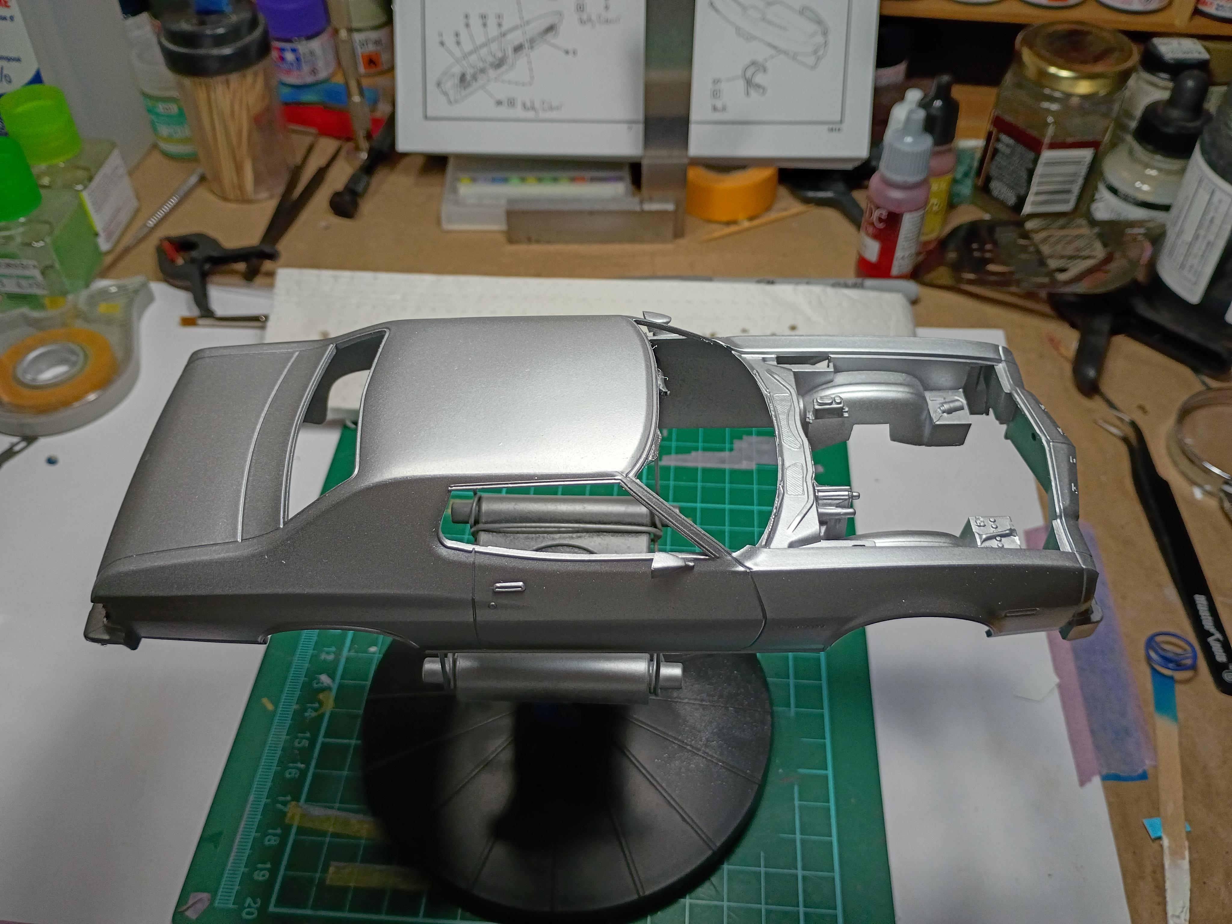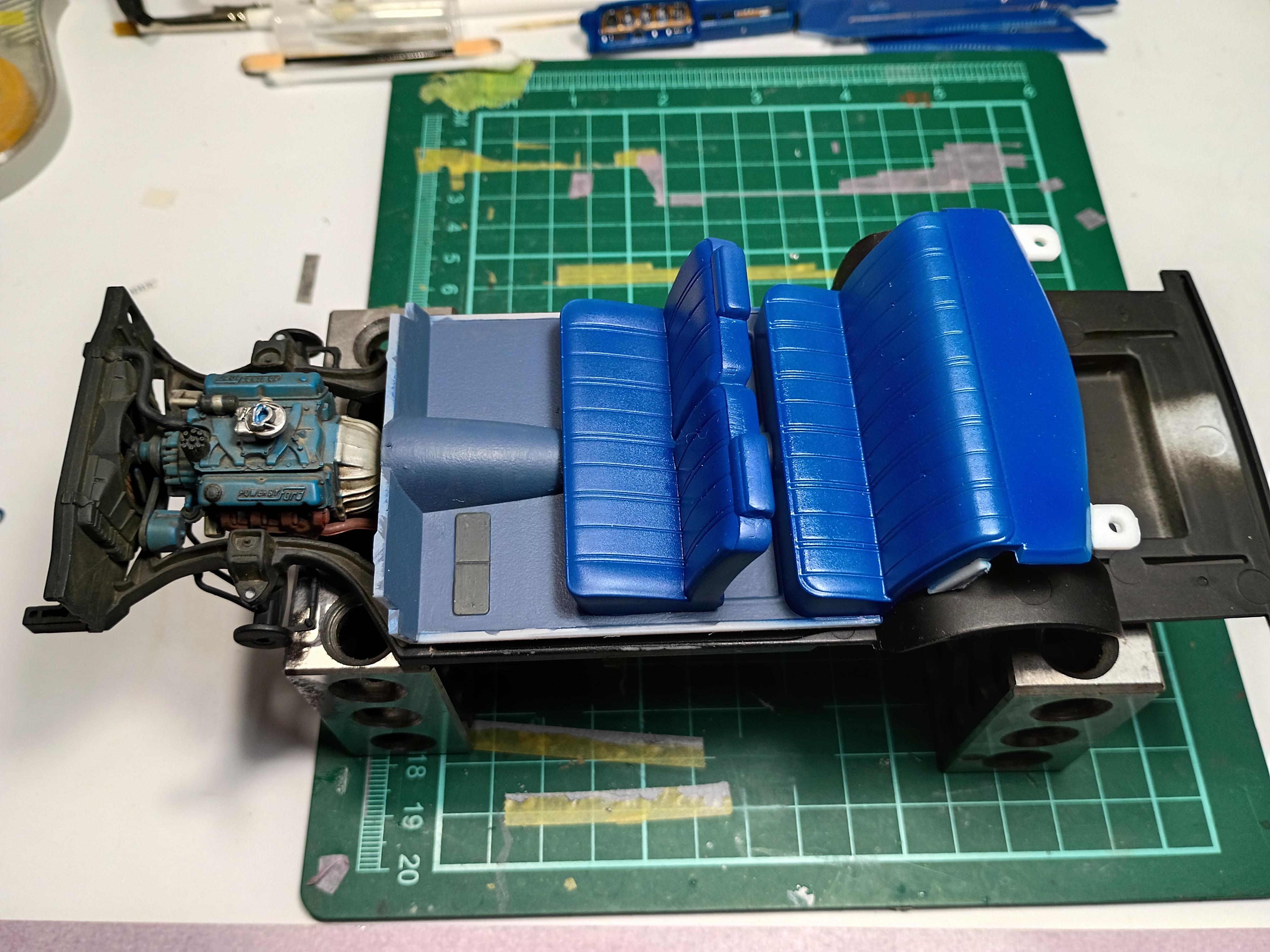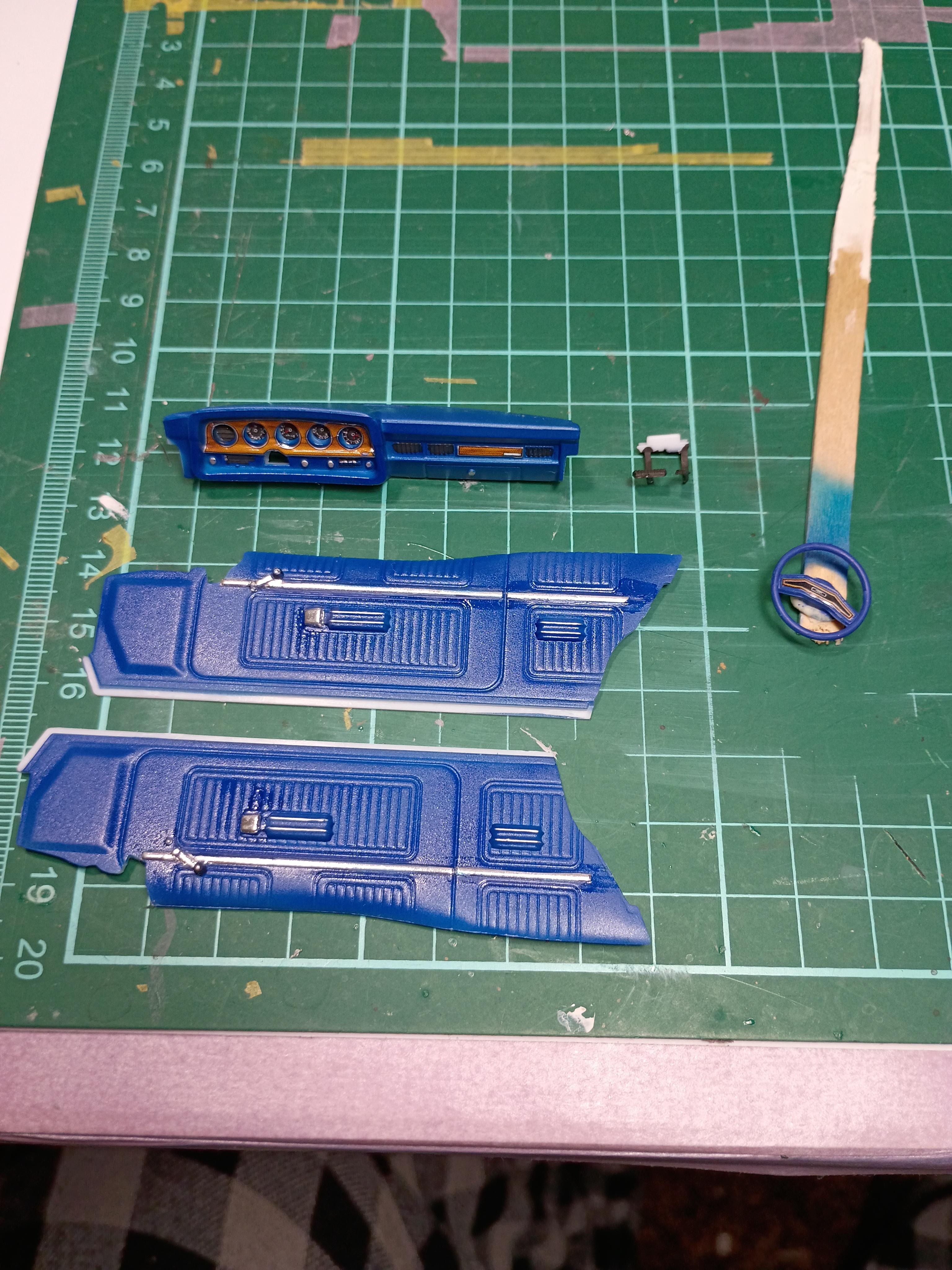 Made some progress this weekend. It"s Thanksgiving up here, so lots of spare time to work on the car. Learning lots of new things on this build. Plenty of mistakes, but still making progress. The chassis is done and weathered. Used a combination of paints and pigments. I varied the rust on the exhausts as if maybe one side had a new one put in. I'm not sure if the gas tank colour is correct. When I did my Google search I got back that they could be steel or painted black. I might do some stains around the oil pan drain plug. I'm still debating whether or not to do some wiring. I might wait on this and get a few more builds under my belt first. I'm happy with how the seats came out. Not sure if I'm going to "weather" them... Dash board and door panels are ready to be assembled. My first attempt at BMF. Pretty good learning curve, but I know what I did wrong - need to keep a sharp blade! I messed up the dash decals, but I'm not sure how visible they will be once everything is in place. I'm really happy with the body colour. Not the best photos, the colour came out just how I was hoping. I'm going to let it sit for a couple of days before I hit it with the 4000 grit. I might do another coat after sanding. There's a bit of orange peel on the driver's side rear and the hood will need another blast for sure. Funny thing is, even though the paint looks rough in the pictures, it's actually really smooth in person. only a couple of bumps.