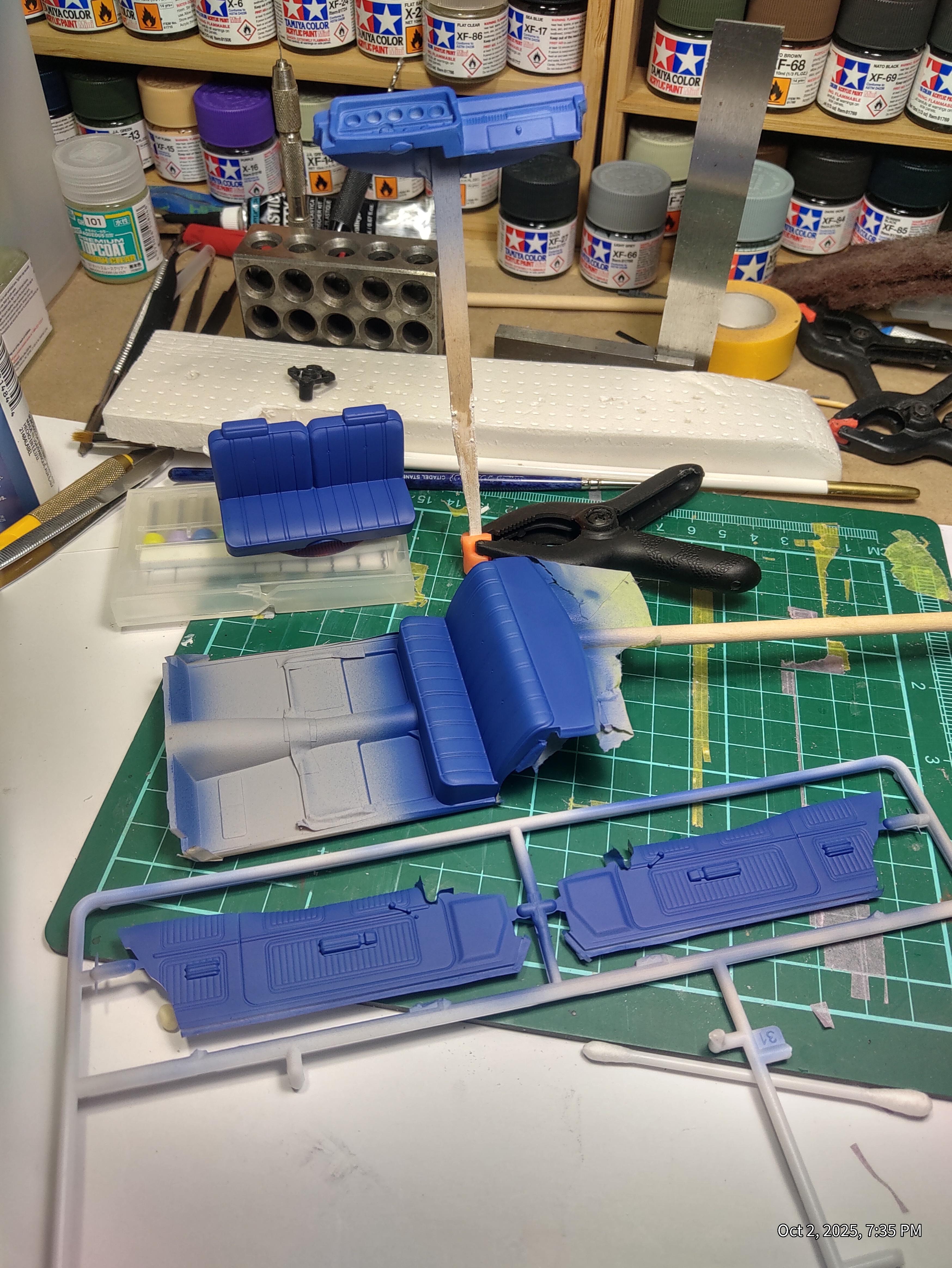 I'm also ready to spray the body colour. I'm going with Metallic Silver. To me the actual Ford colour looks to be more grey than bright silver. I found a substitute for 1G, Ford's Code, that looks right, but I'm not sure whether to go with a black primer, or a grey one? Any suggestions, or advice would be welcomed.