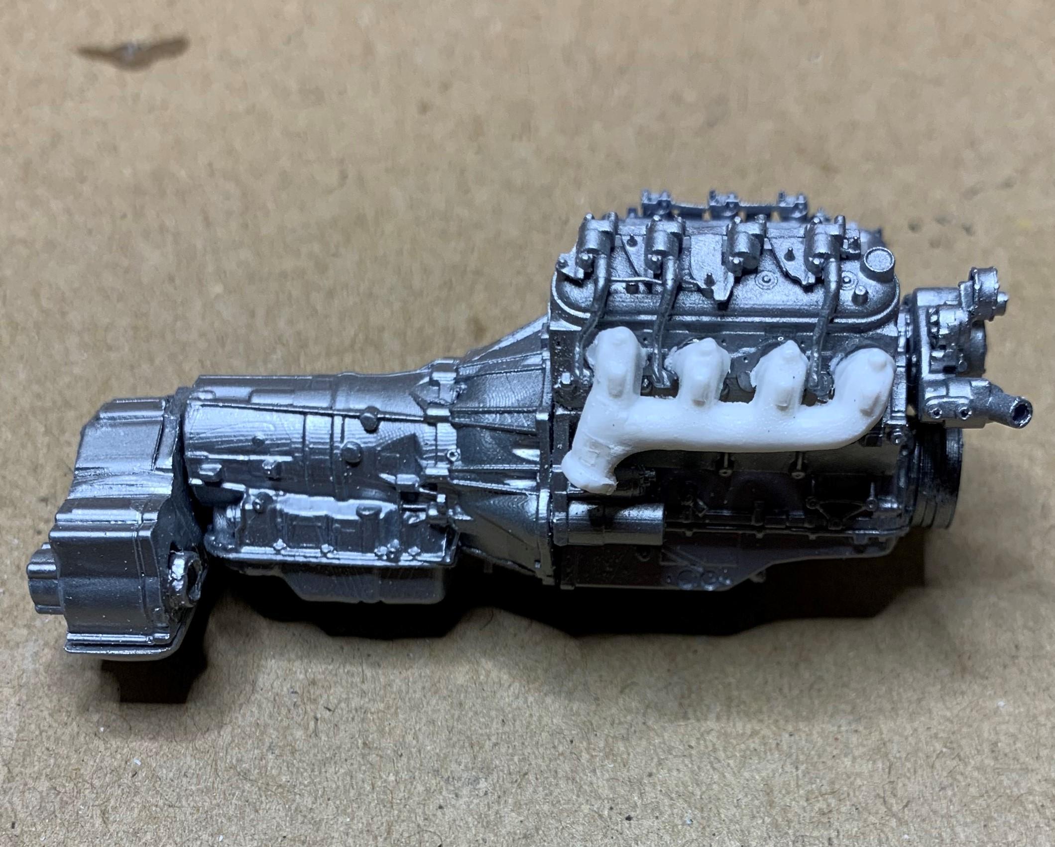 I decided to go with the LS3 and auto, so........... 1 I measured the kit frame and locked my calipers so I could make a better crossmember and keep the width the same. 2 I assembled the 3D engine and transmission after I cut off the headers, then made my new crossmember and motor mounts. 3 I had to use some scraps to make a transfer case work with the big transmission. 4 Then to make room for everything in the body firewall and floorpan.