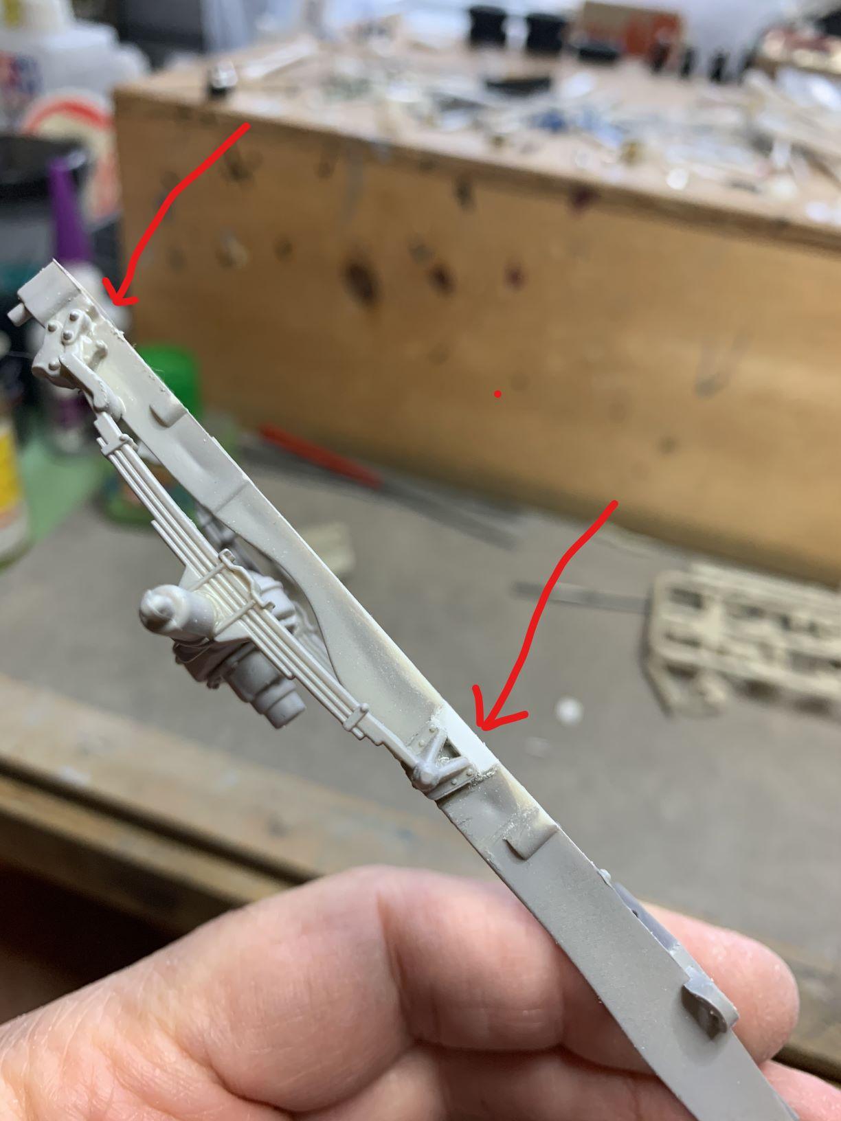 Great work so far! I also converted a short box to 4X4, and lowered the rear springs on the frame to make the rear sit a bit higher, here's how: Just opened up the slots and slid them down and filled in the tops where the spring mounts were supposed to fit. -