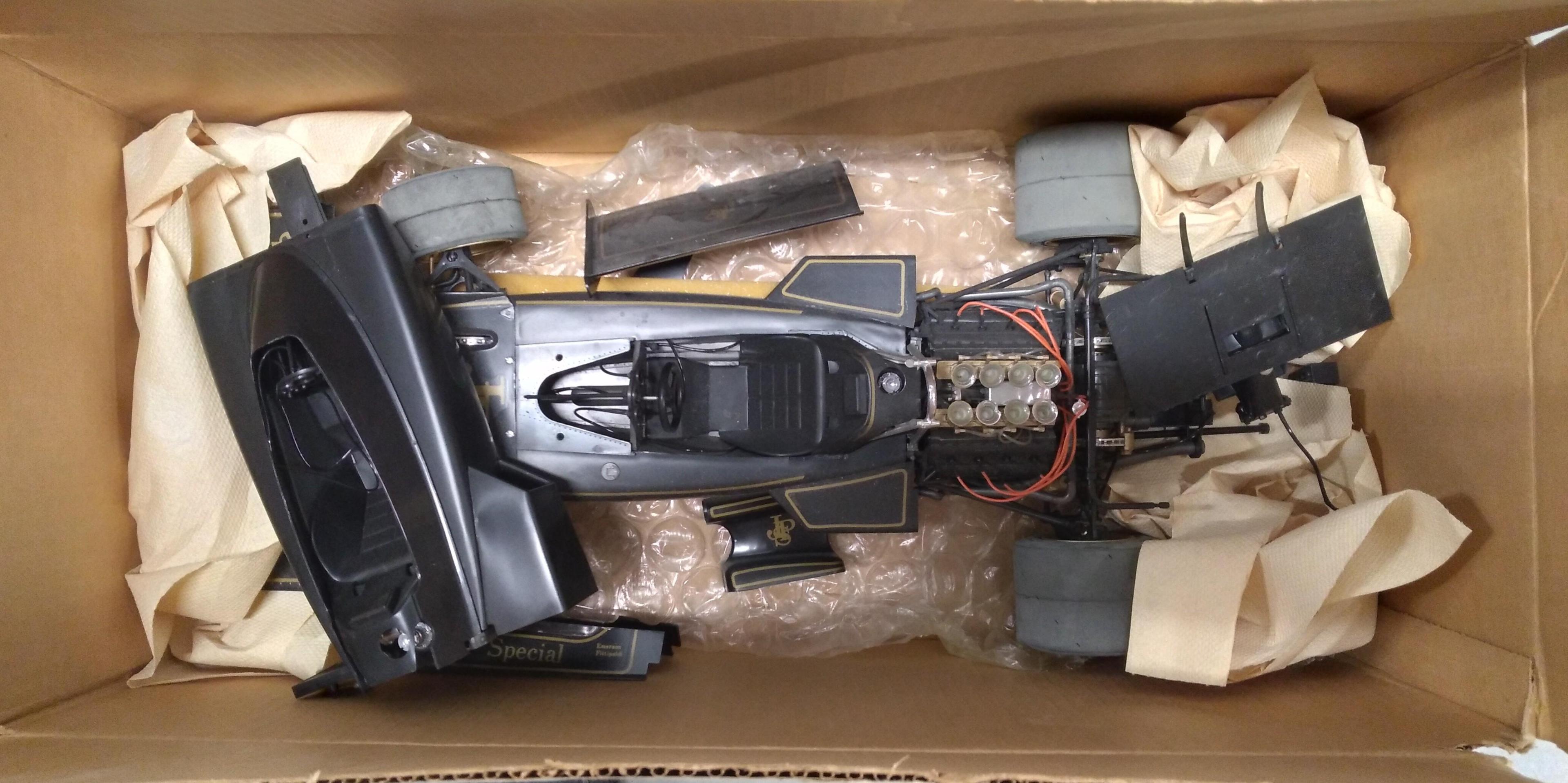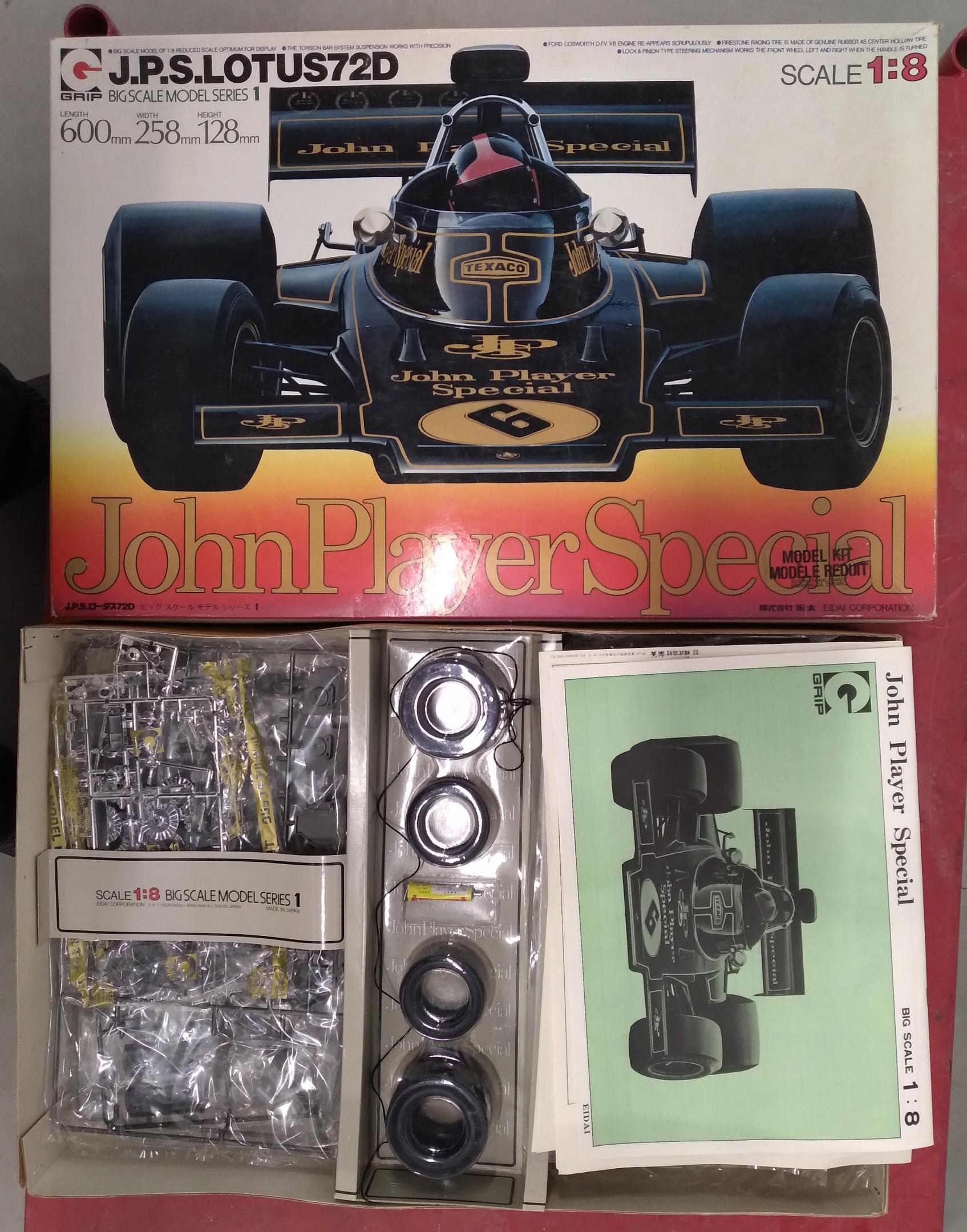 GRIP made a 1/8th scale Lotus JPS F1. I picked one up today, started, needs lots of assembly as there are lots of parts. How big is my work area.....