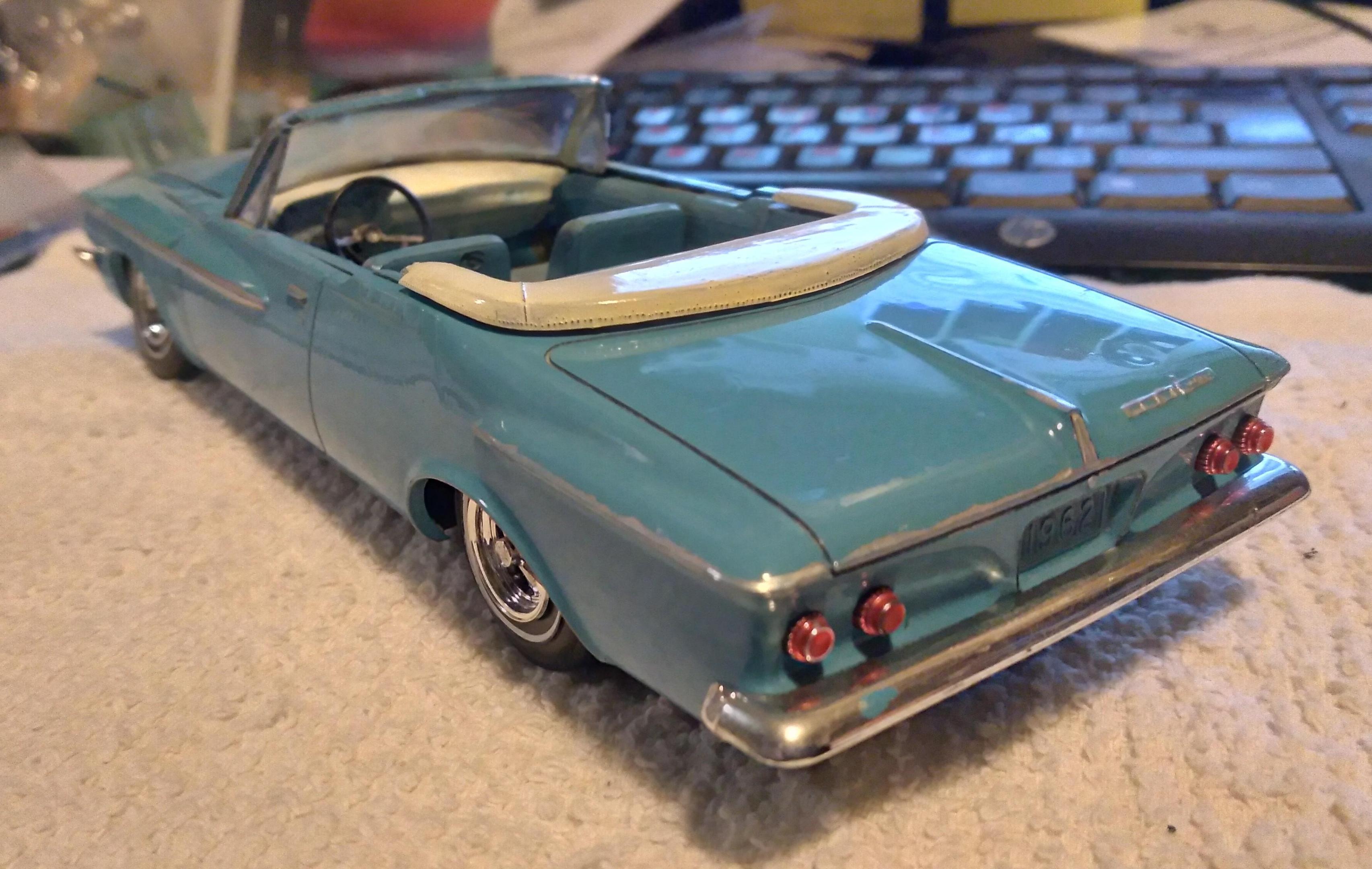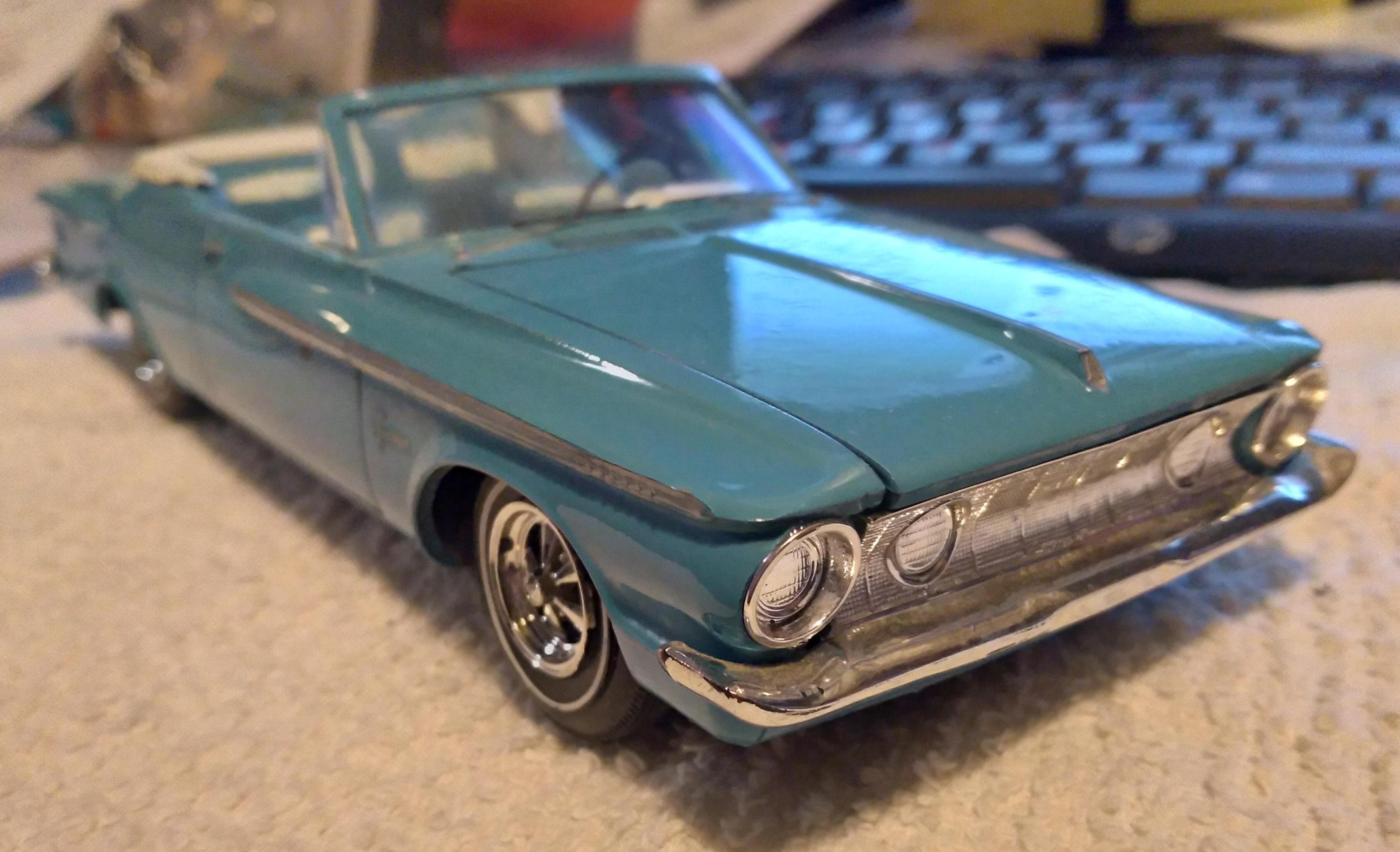 That looks great! You are right, not a junk kit, in my opinion either. I restored an original '63 coupe many years ago and built it stock. I took a glue bomb and built it as a custom. Both were good kits to build. One difference is that the rear window had a depression in it for the split window bar and the molding was crisper. I have the convertible to restore next and it has the original flip headlights