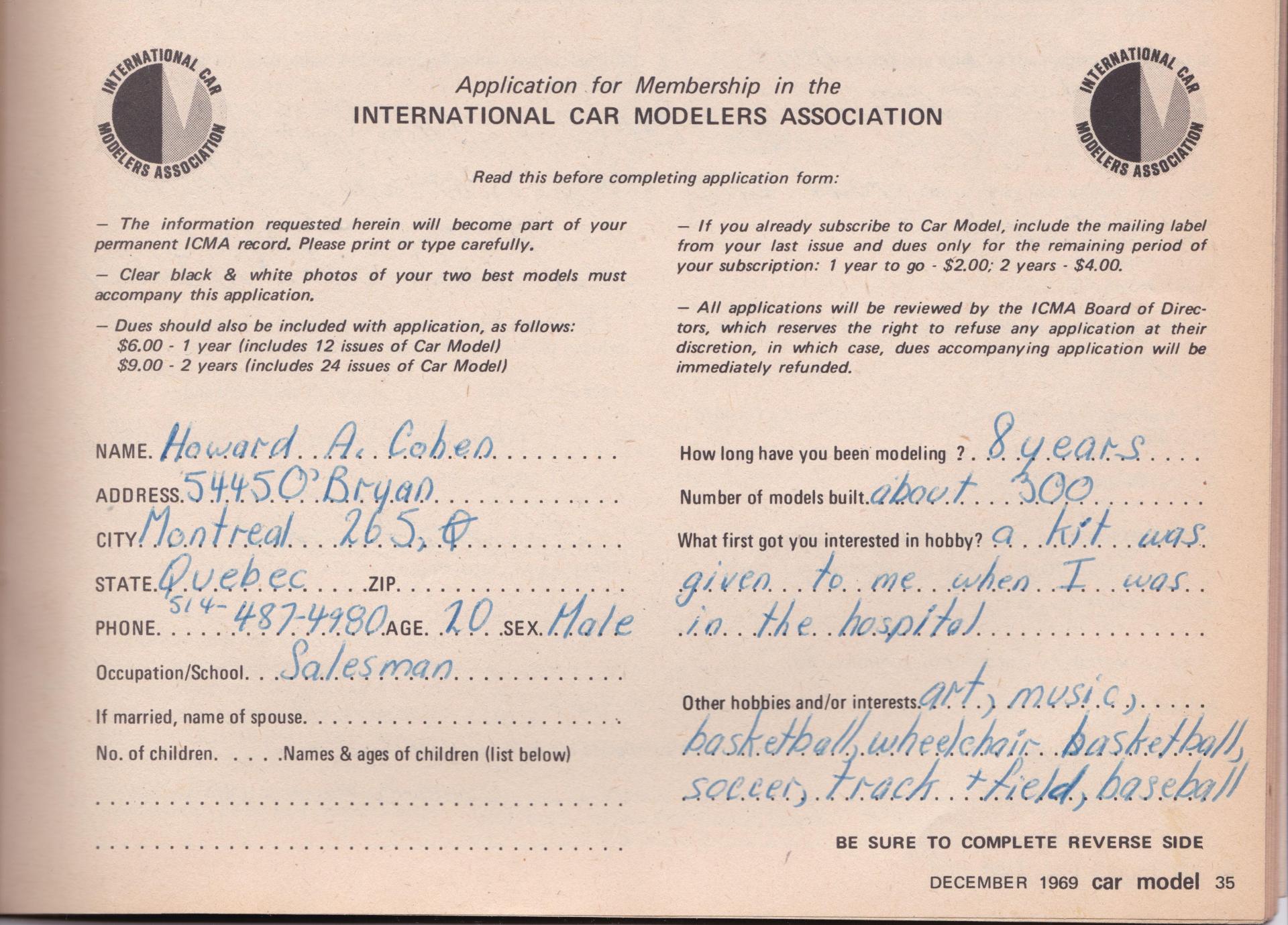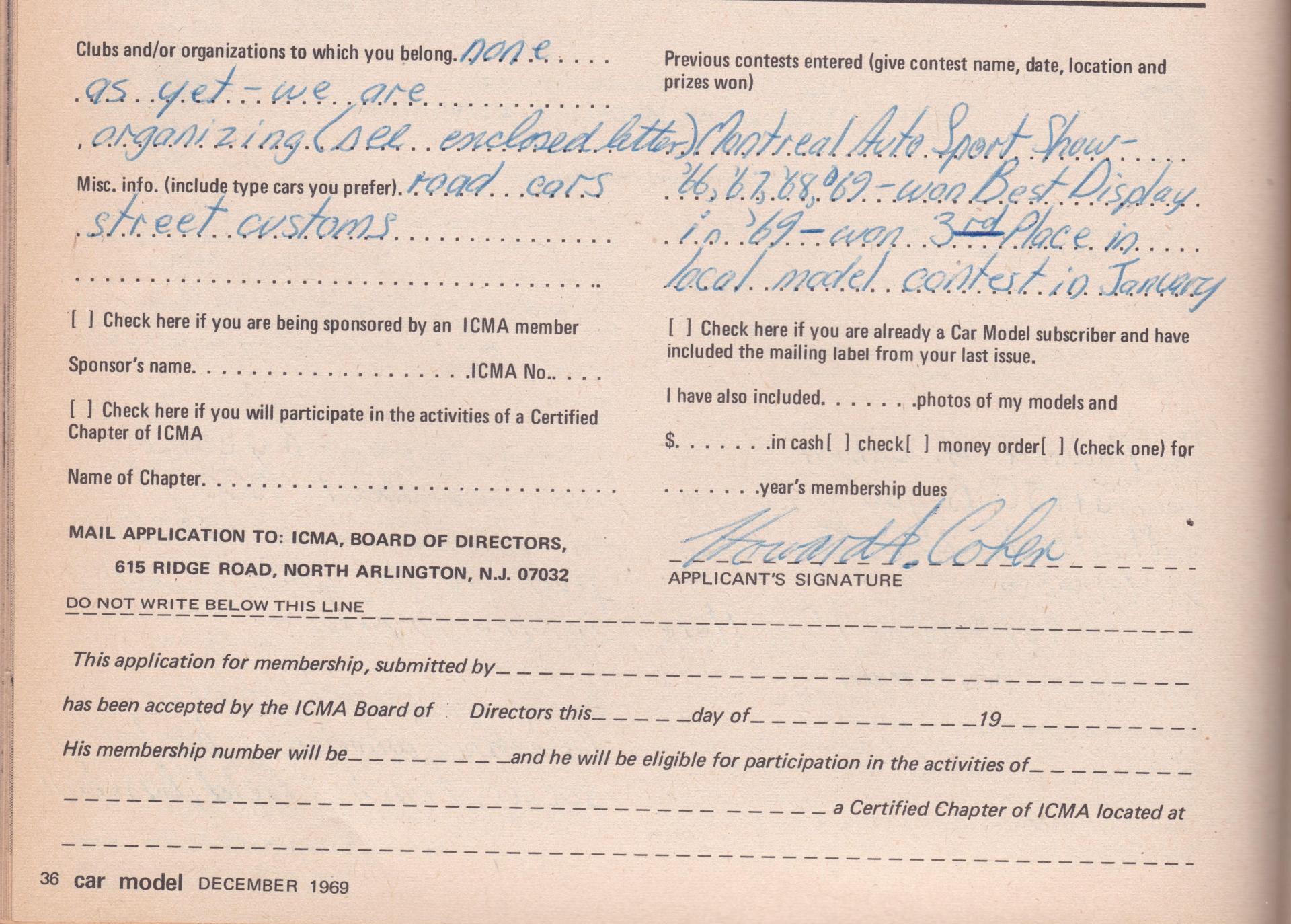 Last week I stopped in to visit a local car museum. They had a few magazines and I bought some old 'Car Model' mags from 1967/8/9/70/71 era. I was going through them when I turned the page and saw the ad for the 'International Car Model Association' membership...with my name and address filled in! Yes, I bought back my magazine from 50 years ago! This time I am keeping it