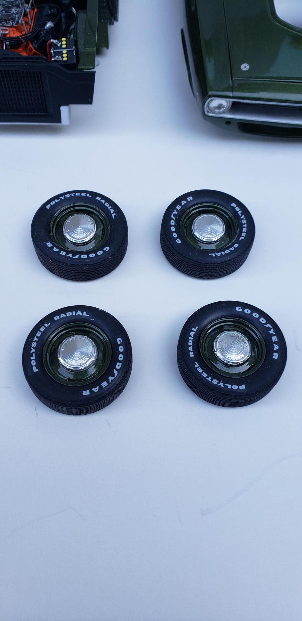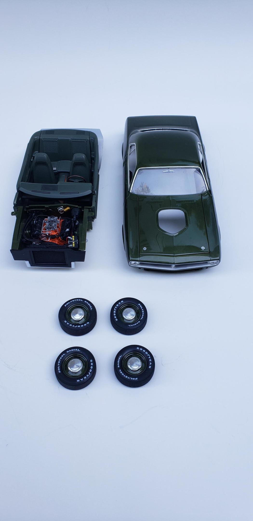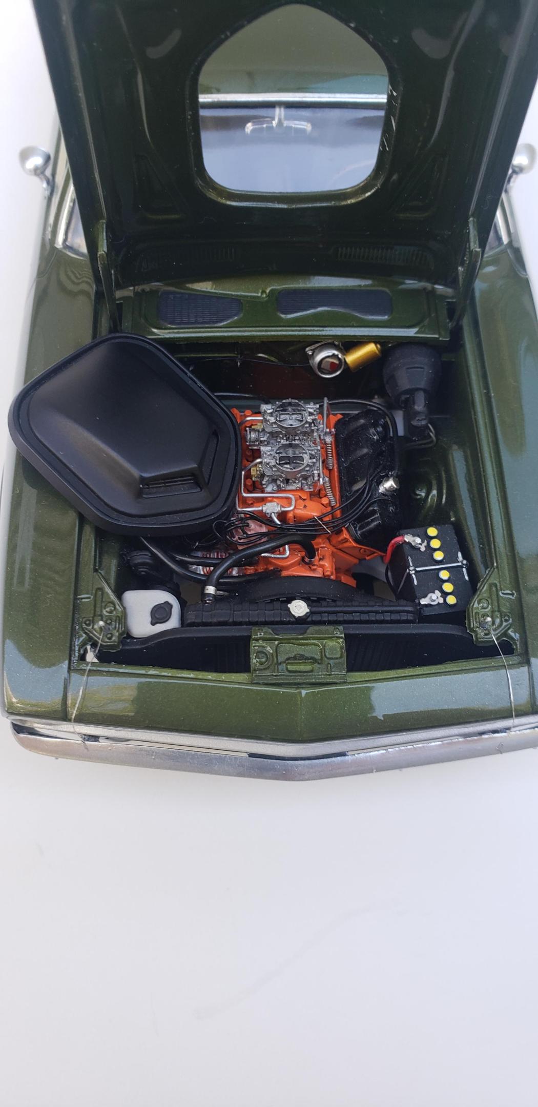 Done enough. Paint is Model Car World Ivy Green Metallic with 2k clear polished out, some parts off the MCG 71 Cuda photoetch sheet, two different Tamiya green acrylics for the interior, detail master hard line #1 for the fuel line and carb linkage, Replicas and Miniatures of Maryland distributor, Fireball Modelworks carbs and wheels, thin aluminum sheet with RB Motion bolt and washer for the heater hose clamp, MCG seat belt buckles This was a fun and aggrevating build. Windows being a bit of trouble being really close to the window frames with little to no wiggle room. Taillights didn't fit right. I made a mistake with roll pan and installed it on the body for paint which made me have to trim some chassis stuff. It doesn't show on the final completion. Still gotta touch up that left taillight Hope you all enjoy