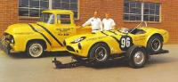 Thanks for the comments. The fender flares are modeled after the early cobras. They had the more angular flares and don't appear to affect the door. The attached picture is the style I'm going for though not the actual car (unless I can find the decals for it). That would be a cool team to do with the Revell '56 Pickup and maybe the sprint car trailer? Look at CSX 2127, 2128 and 2129 to see what I'm going for. Maybe they weren't FIAs? My car is supposed to be about the 1963 race type. I want to use the Black overall paint with yellow nose and fender stripes decals but will need to find a second set as the kit ones appear to be too thin. I have also began work on thinning the windshield frame. This is turning out to be a fun little project and allowing me to stretch my skills a bit. Keep the comments coming. -