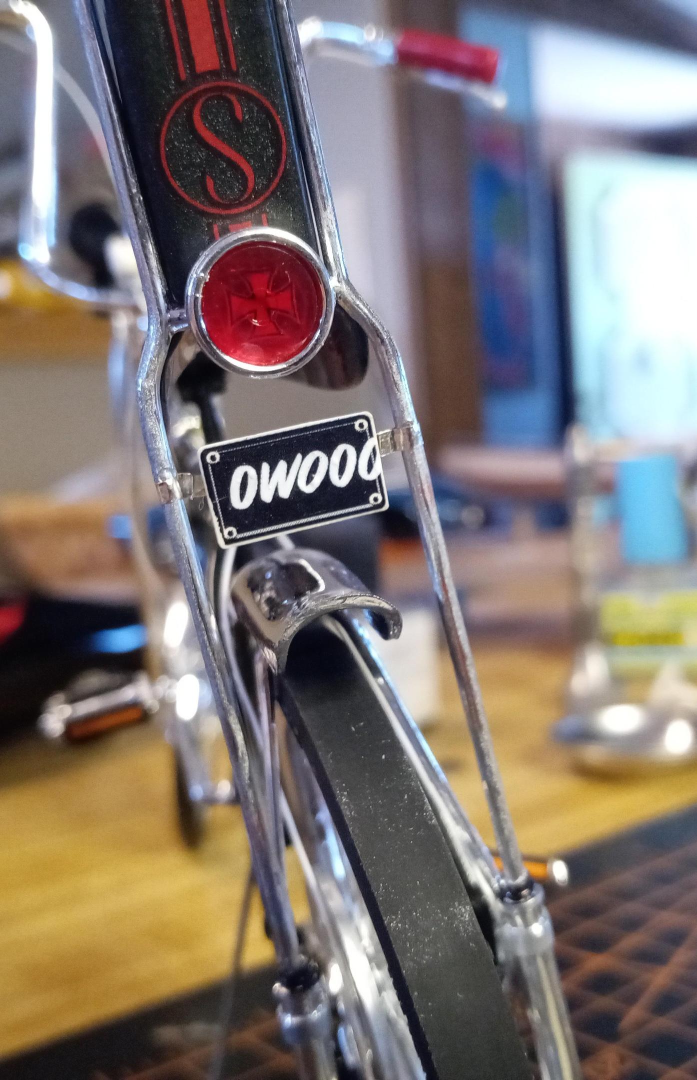 The seat and sissy bar were in the kit. I did rake the neck of the frame back a lot. The pedals were repositioned, too. -