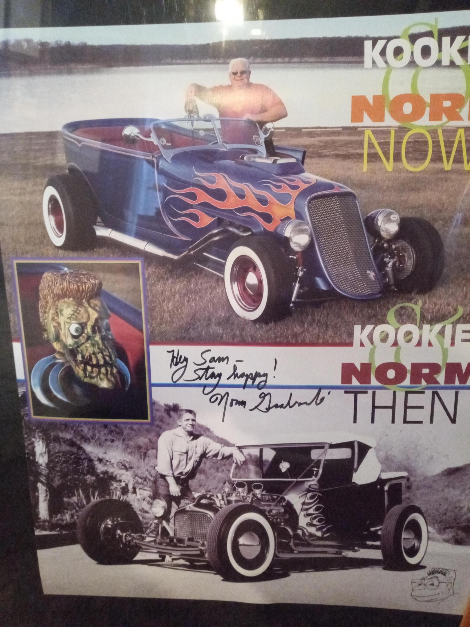 I stripped the chrome skull shifter to find swirly recycled plastic underneath. I convinced myself that it looked like woodgrain and gave it a coat of rust tinted Detailer. Ill take the shine down with semi gloss. Since it's a t-bucket I thought a nod to Norm Grabowski would make a nice Easter egg. In addition to his rodding contributions, he was a talented woodcarver. His exotic wood skull shifters are pretty pricey