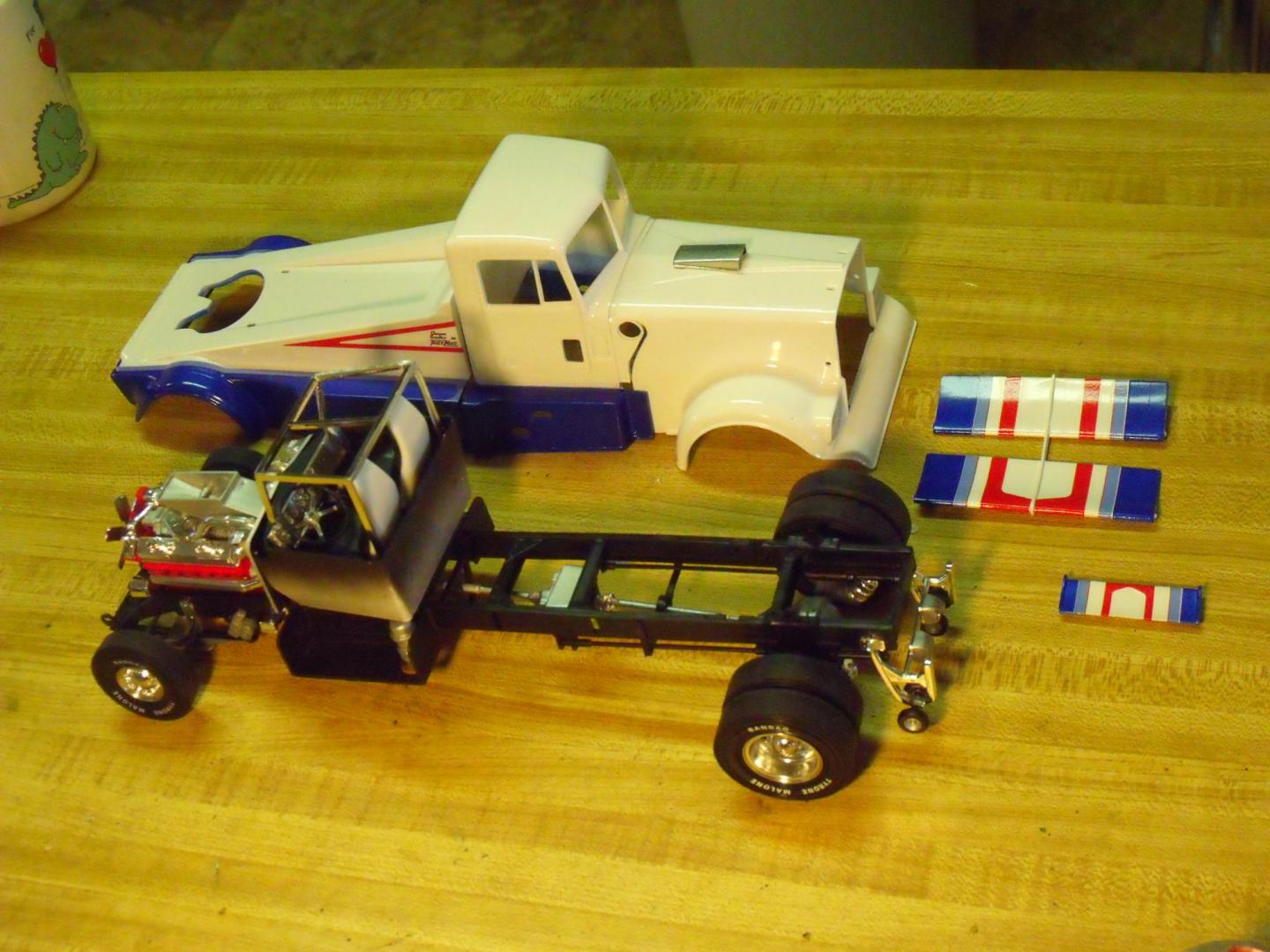 I had partial cans of both Red and Orange One-Coat. I would make a pass with the red and immediately make a second pass with the orange until I had what looked close. One Coat seems to be pretty tolerant of being applied wet on wet. I used the "scoopless decal under the unglued scoop so i could still drop a motor in, if I get the urge. I like this car a lot but everything looks better with a blower poking out of it. The blue and white decal halfway up the nose was the least objectionable camo for where I rubbed through the ink getting it into place. Russ, I agree with your Ranchero lament. I drove a '67 for about 10 years. -