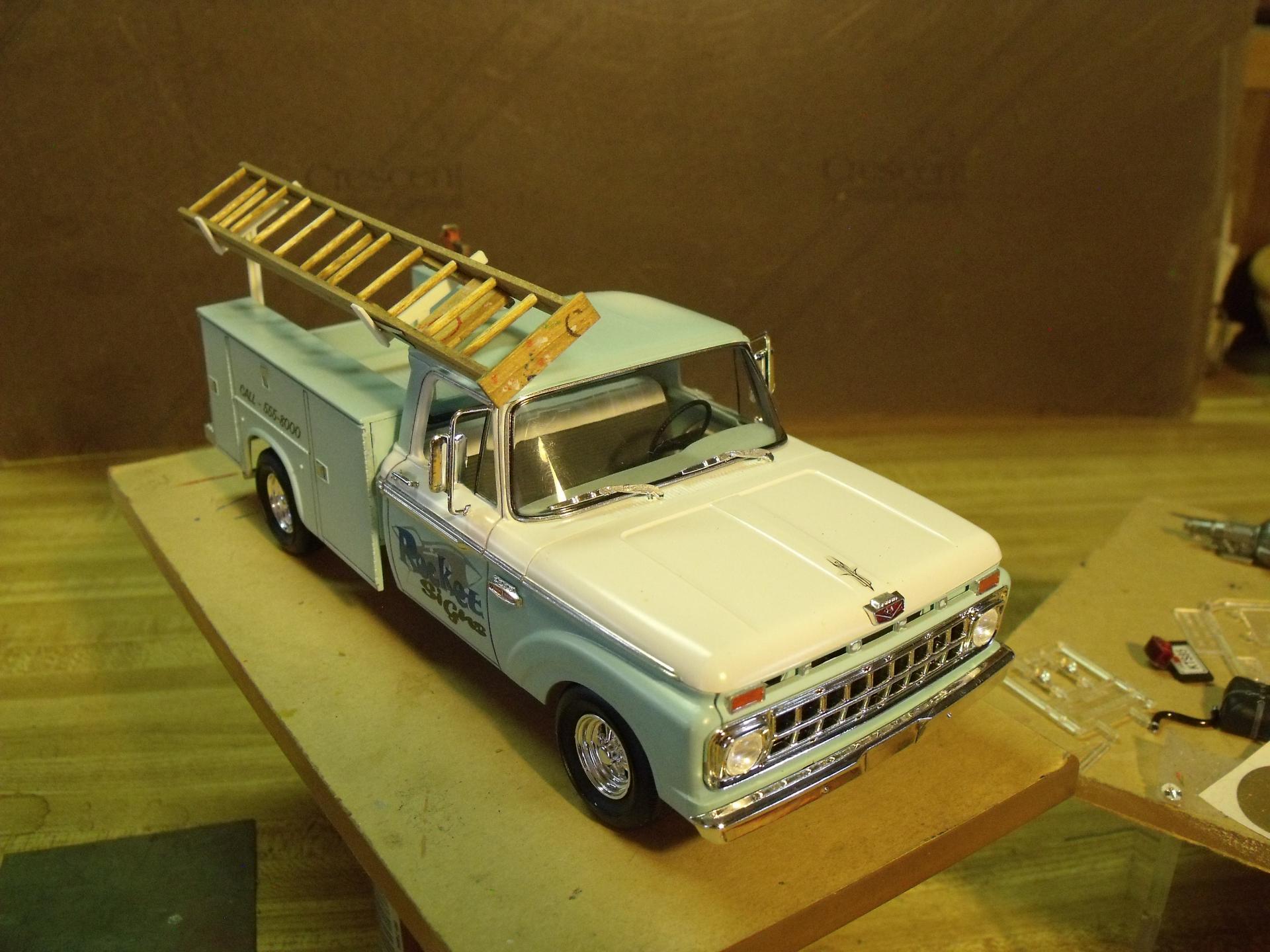 Thanks, guys! The ladder is some scrap balsa from a ship model, toothpicks and some photoetch for the hinges and spreader bracket that I still need to add to the side that's showing in the pics. I've also figured out that removing the mounting flanges and putting the windshield in from the outside is way easier than following the instructions. I'll also be putting that front bumper back on for the third time. -