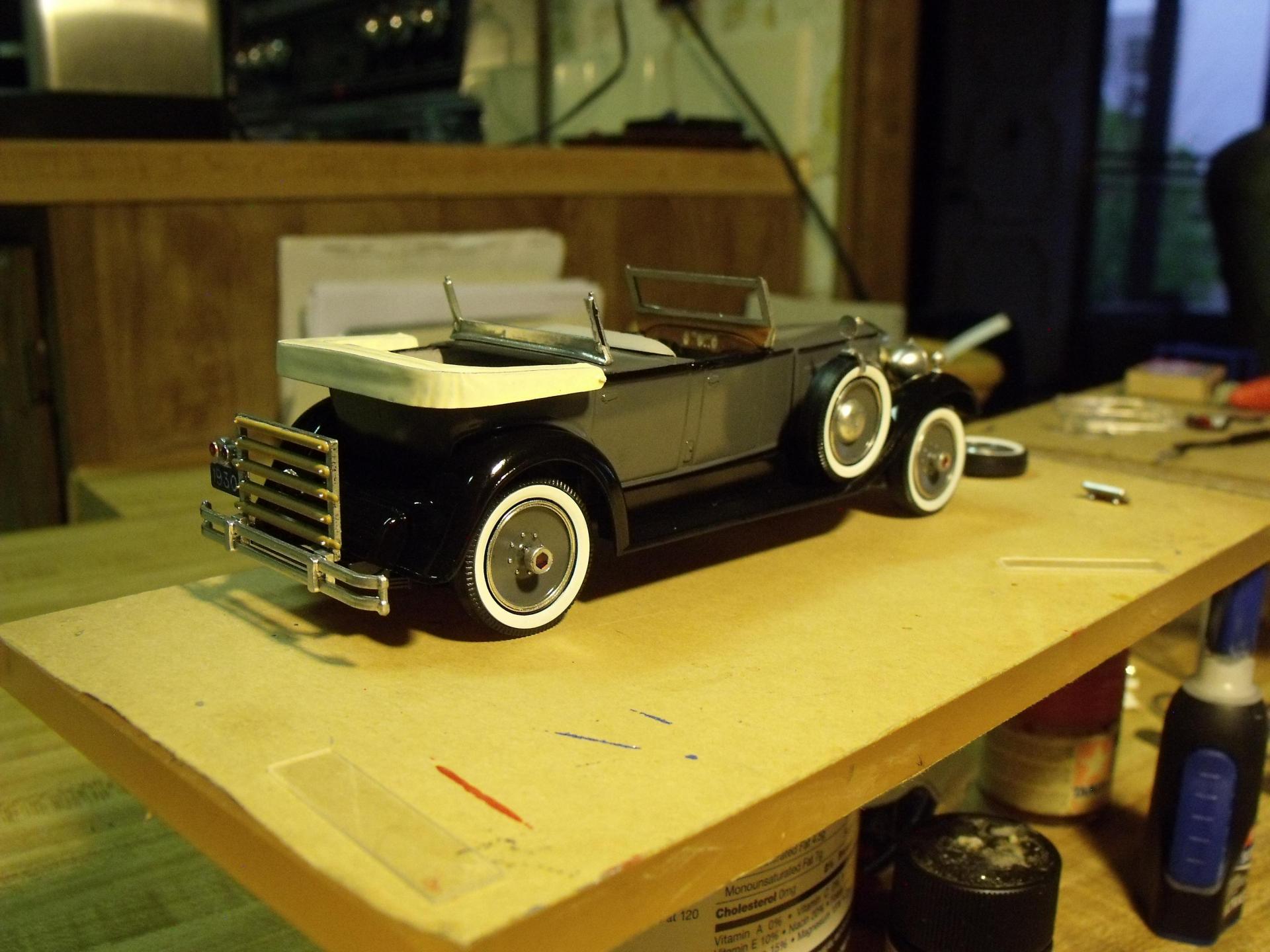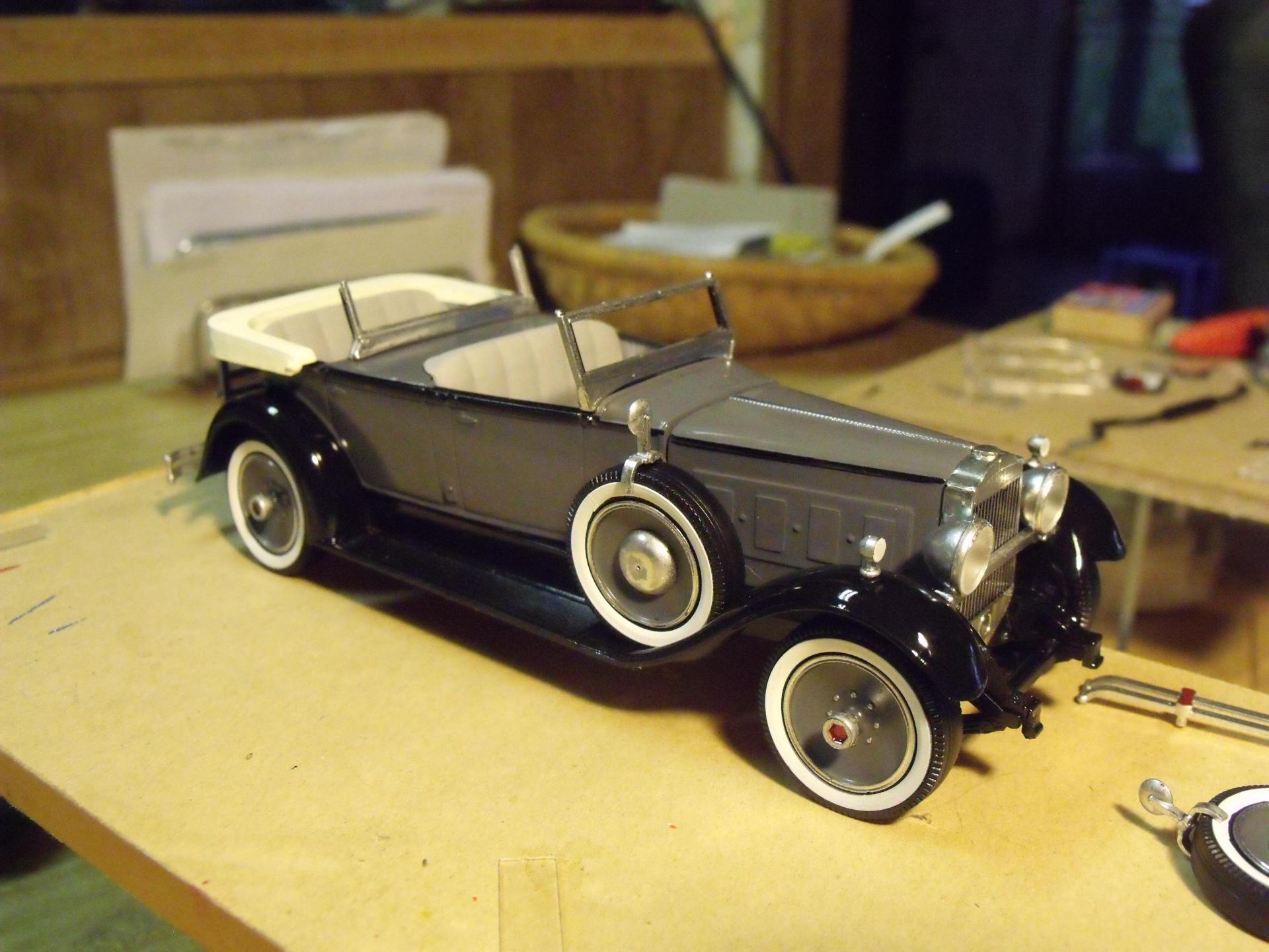 These were freebies with the stipulation that I build the Packard. Still a few things to do. The hood and grille are just taped together at this point. I'd never seen either one of these kits before. It's a good enough kit. No chrome, no decals. The dash engraving is a bit lacking and there are lots of sinks in bad places