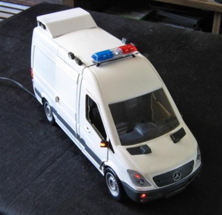 I'm also currently converting a 1:16 Bruder model Mercedes Sprinter horse float into a bariatric ambulance. Took some stripping as no screws are used, only strong plastic clips. Google - Bruder and Dickie toys for the various large scale Sprinters available, which can be stripped, converted and partly scratch built to your liking. The smallest that I have put lights into is a diecast 1/32 Sprinter. Have fun finding and converting. Robbo.