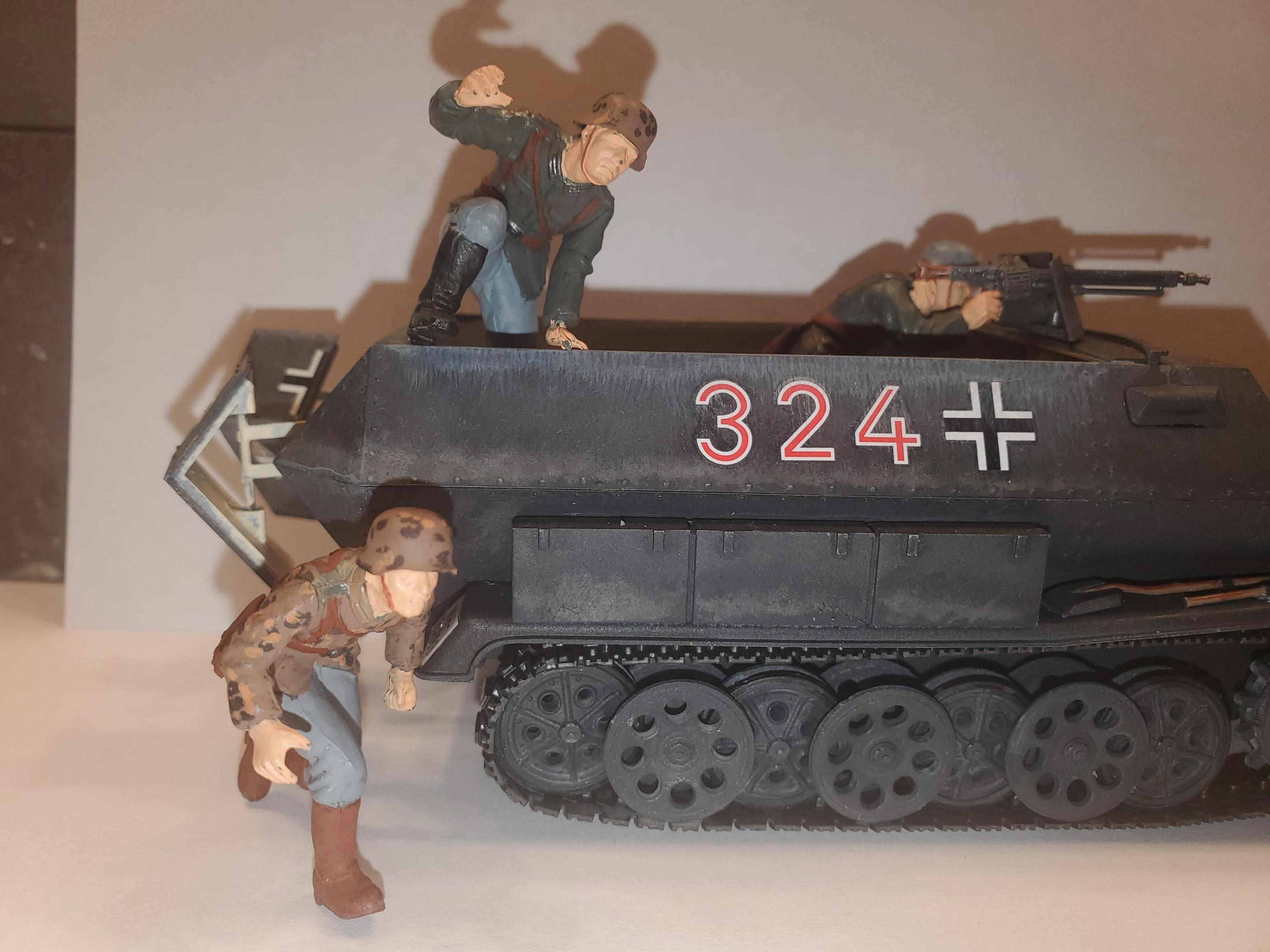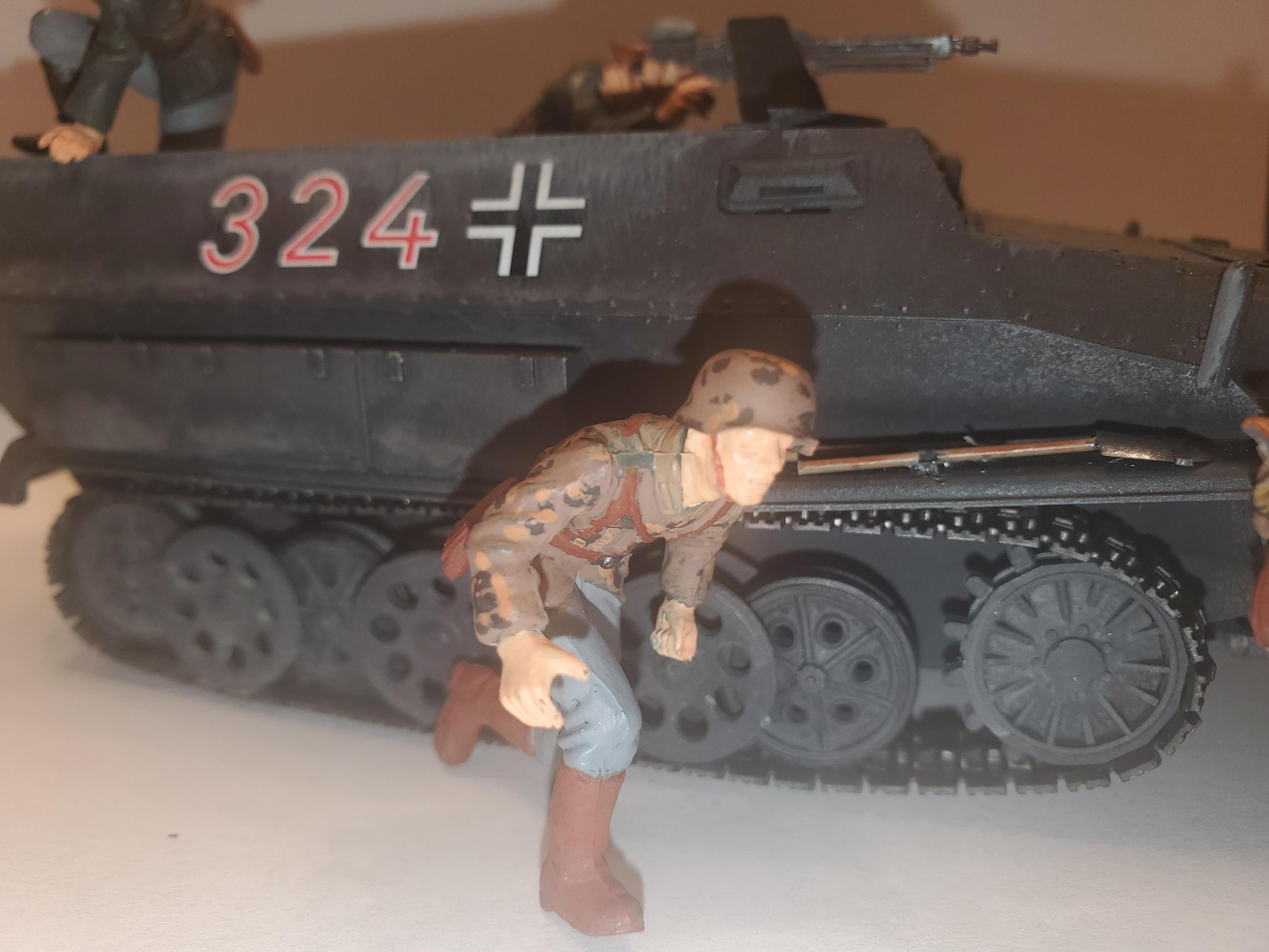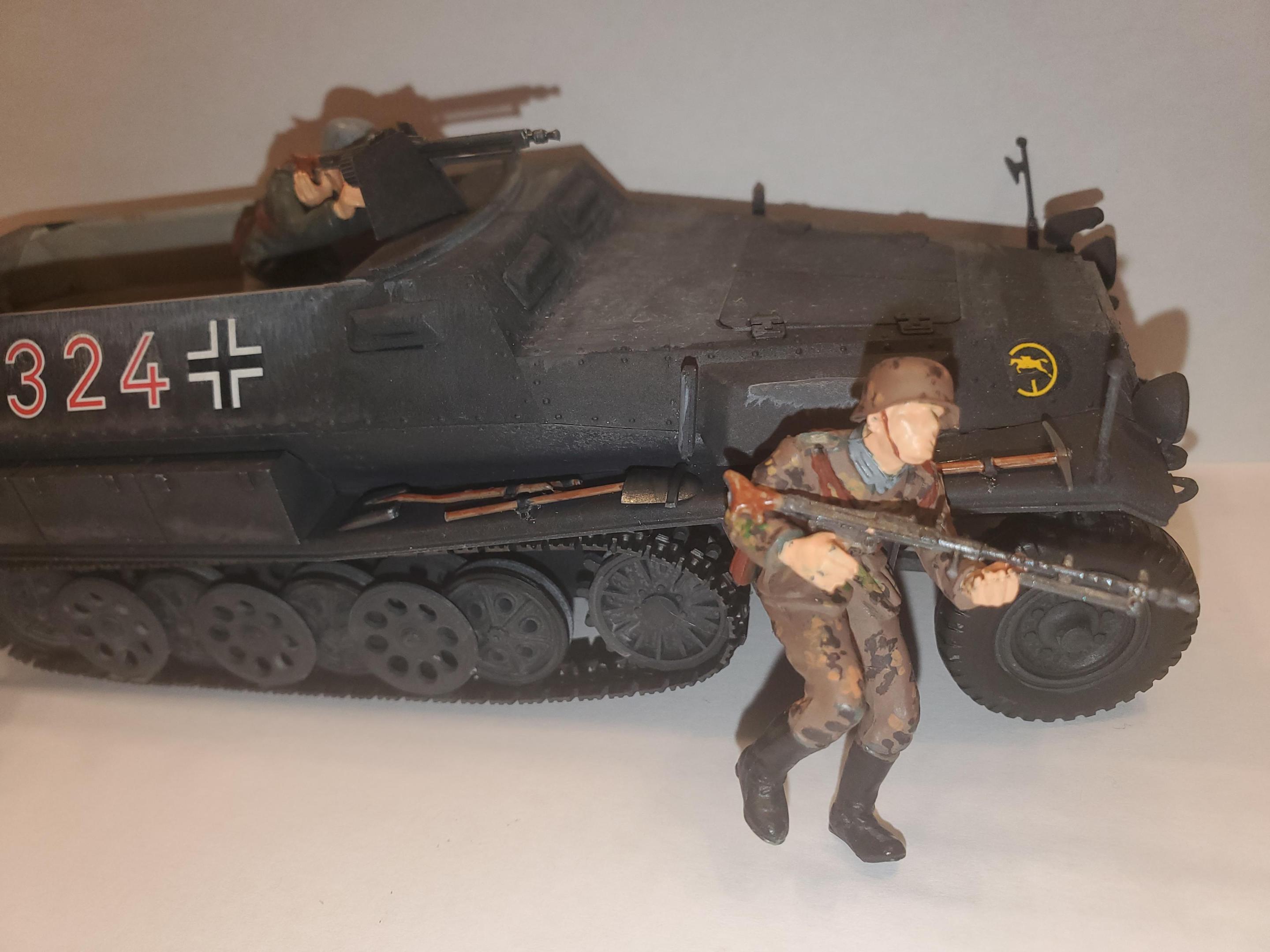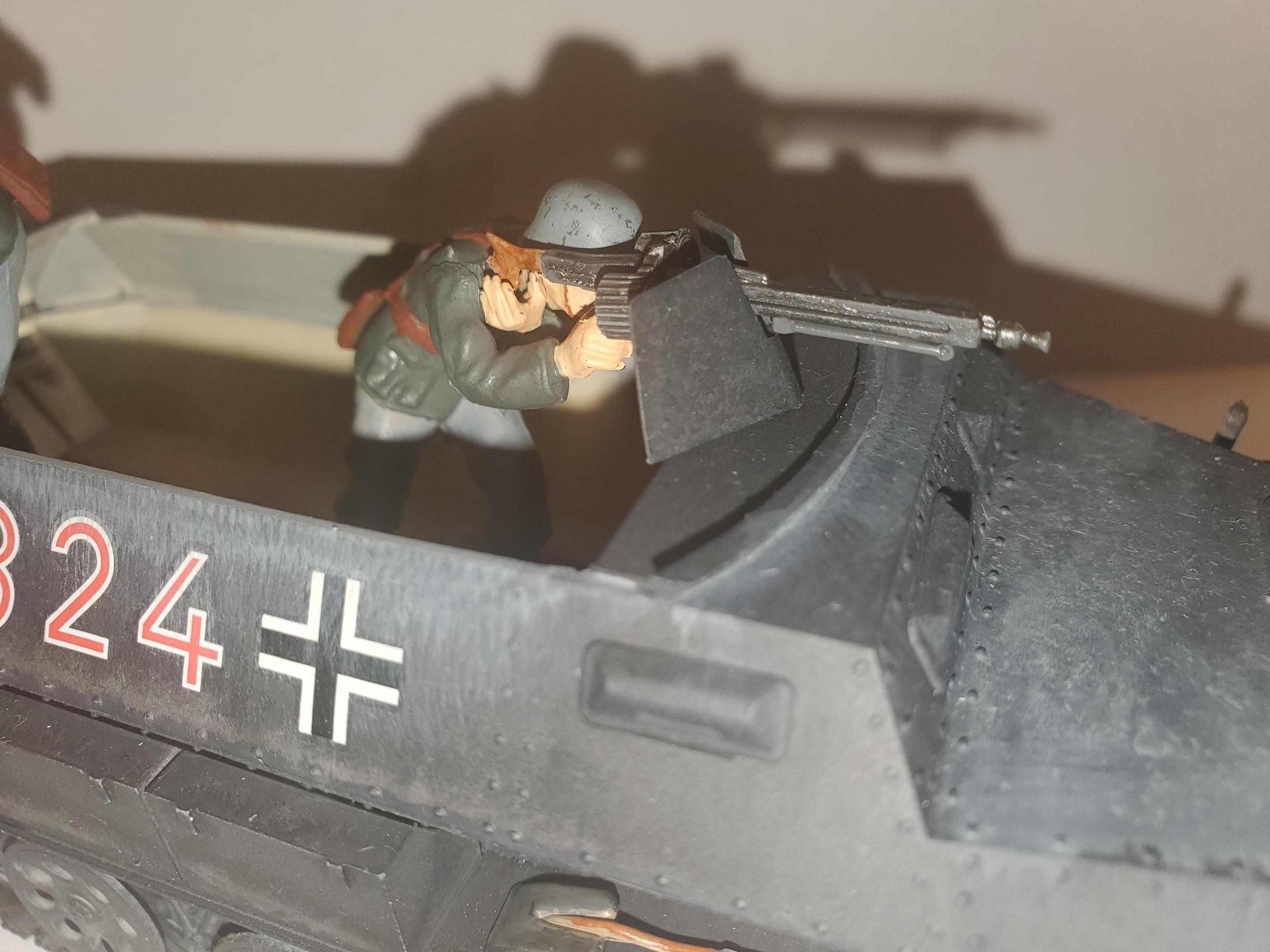 it is 1/35 scale it is a pretty cool kit, what really sold me on it was the crew you can build it with two soldiers in full battle array, or one slightly more laid back soldier, bringing home the bacon the odd thing is that one of the drivers has his hands molded to the handle bars, and one does not so im going to have to leave the handle bars loose if i want to be able to switch out between the two