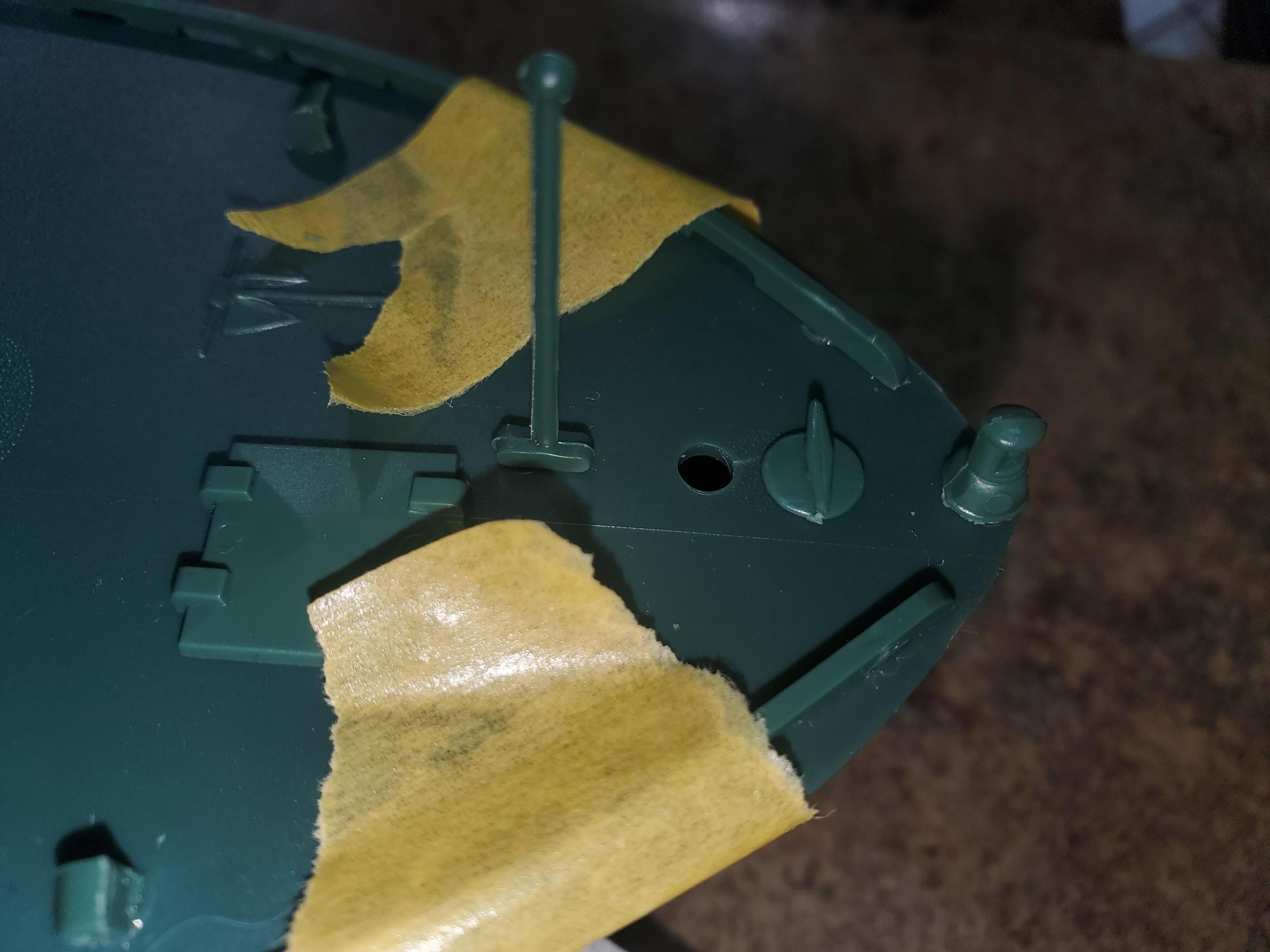 Got the top painted I used Vallejo paint, but had a heck of a time thinning it to flow through my airbrush Not sure if I want to paint the hull the same way -