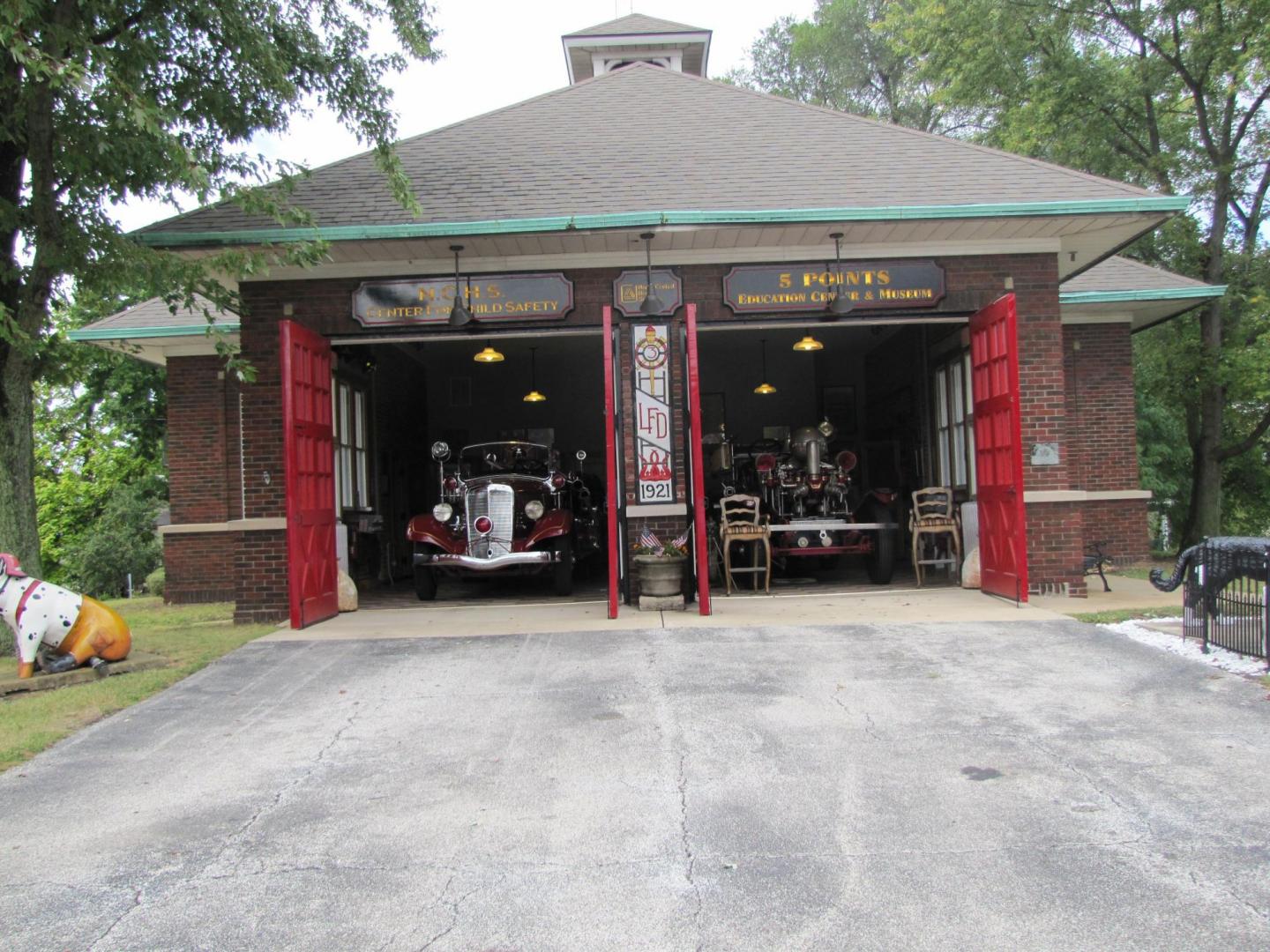 Lafayette IN Fire Station #3, built about 1920. It was replaced by an all new station a block east, large enough to house the latest in fire apparatus, and now serves as a combination firefighting museum and LFD's education center. Currently, Station 3 is home to not one, but two Ahrens-Fox pumpers: The piston pumper on the right is from 1924, runs and pumps water still. The Ahrens-Fox on the left is from 1937, and holds the distinction of being the longest-serving fire apparatus in the history of Lafayette Fire Department--from 1937 to 1980, with an engine transplant in the mid-1970's (Ford V8 truck engine). The '37 also has the distinction of surviving a fatal fire call, when in 1953 it was called out to a fire at the local Wonder Bread warehouse. This truck pulled up to the open garage door, and as the crew deployed to fight the fire inside, the gasoline tank on a bread truck nearest the door exploded, killing two firefighters almost instantly, a third died in hospital several days later. The truck was repaired, and continued on roster at LFD until 1980 (then repowered with a mid-70's Ford truck engine). Now completely restored (and it pumps water still!), this A-F pumper still bears a few scars from that tragic day in 1953, in the form of a warped hood and radiator shell, which my friend determined would remain, so as to inspire questions--so that the story would continue to be told. Without further ado, Lafayette IN Fire Station #3: