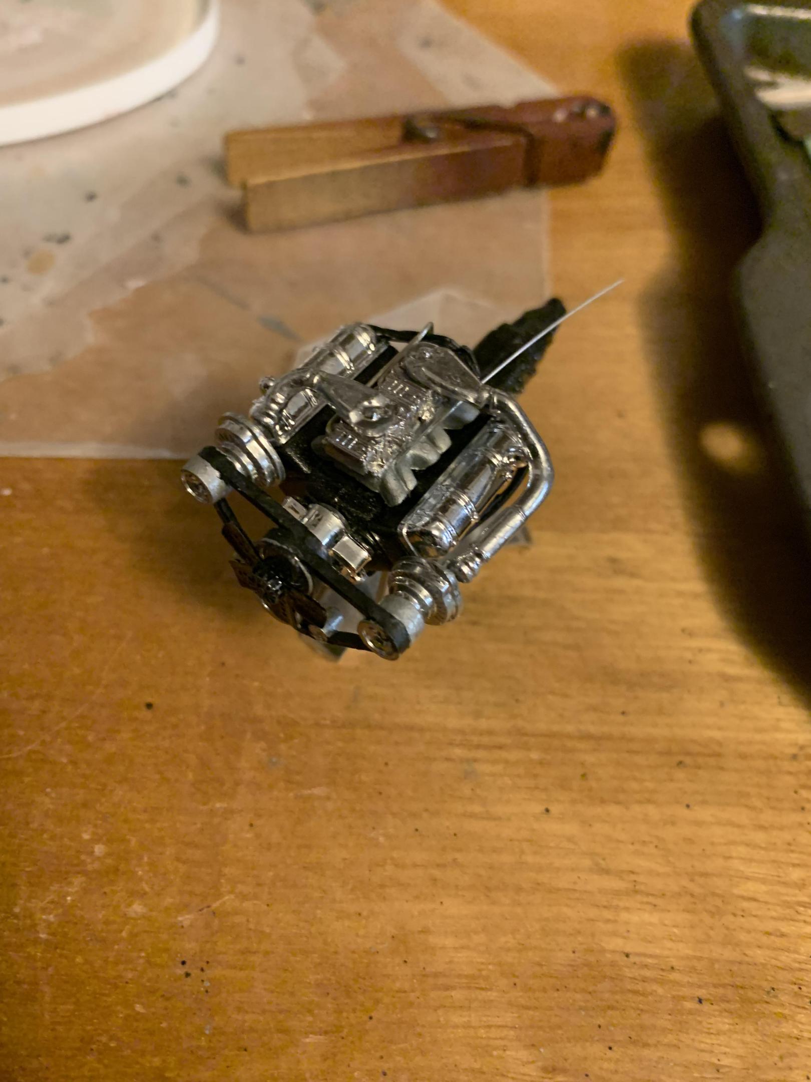 Got a bit more done. One exhaust pipe is installed with its muffler. Decided to make my own exhaust tips. The one on the left is my first attempt. Threw some chrome pen on it to see where I'm at. Needs a bit more work but overall not too bad. The one on the right is what I started with- just need to sand away everything that doesn't look like an exhaust tip!