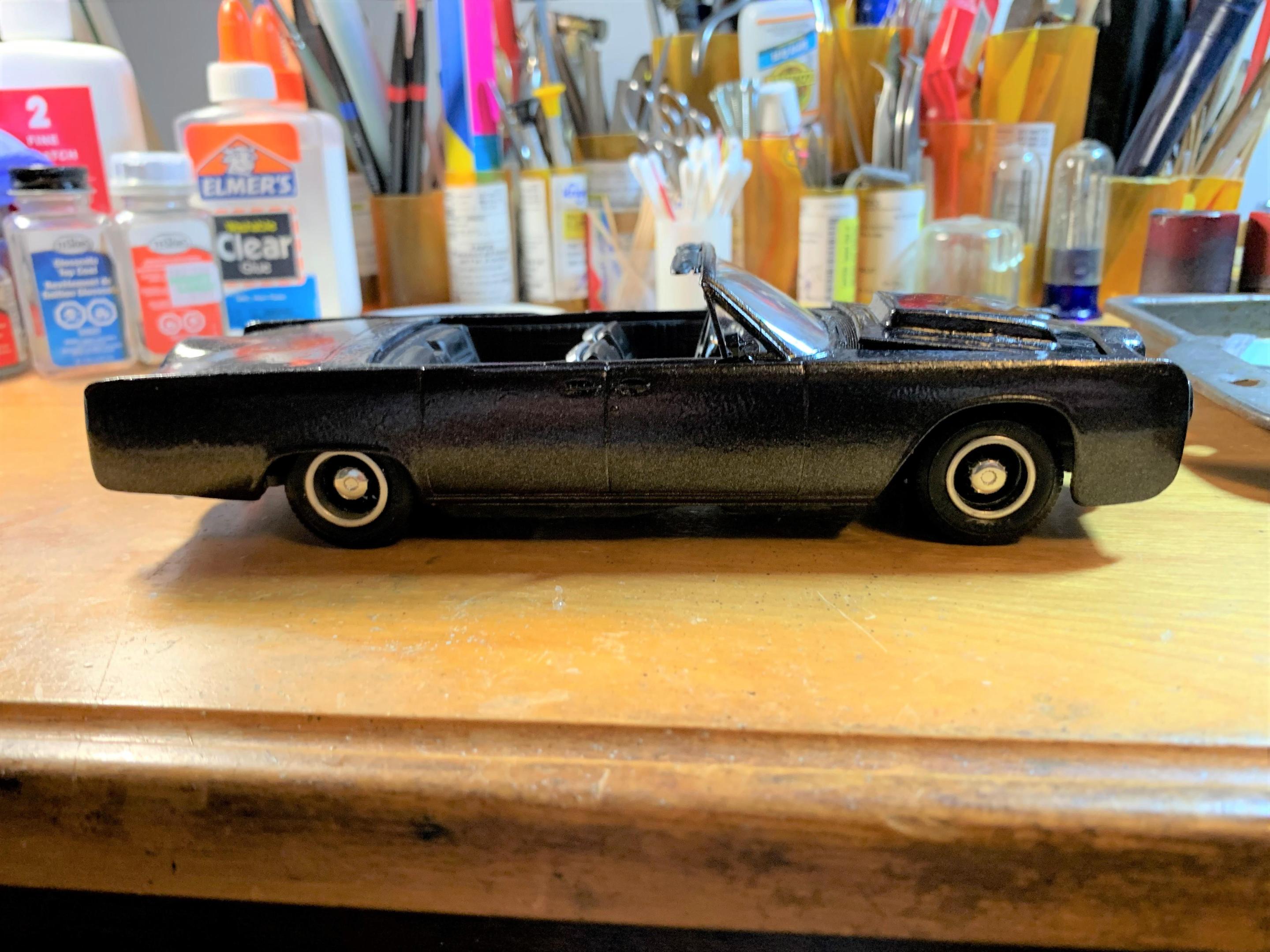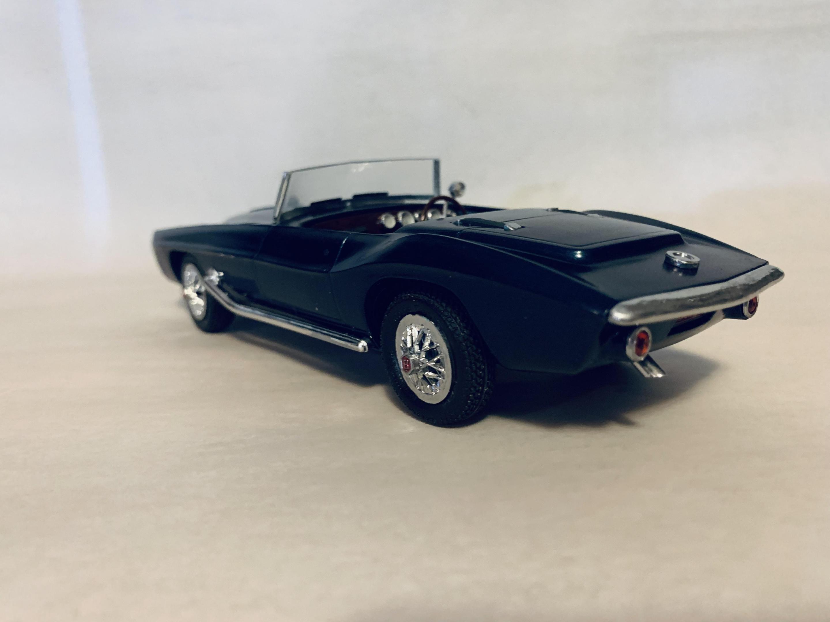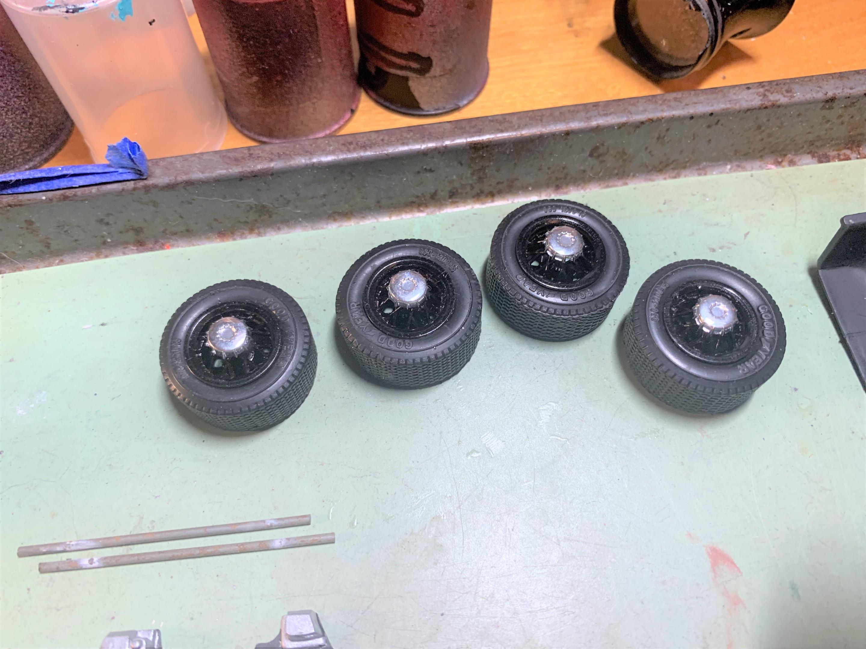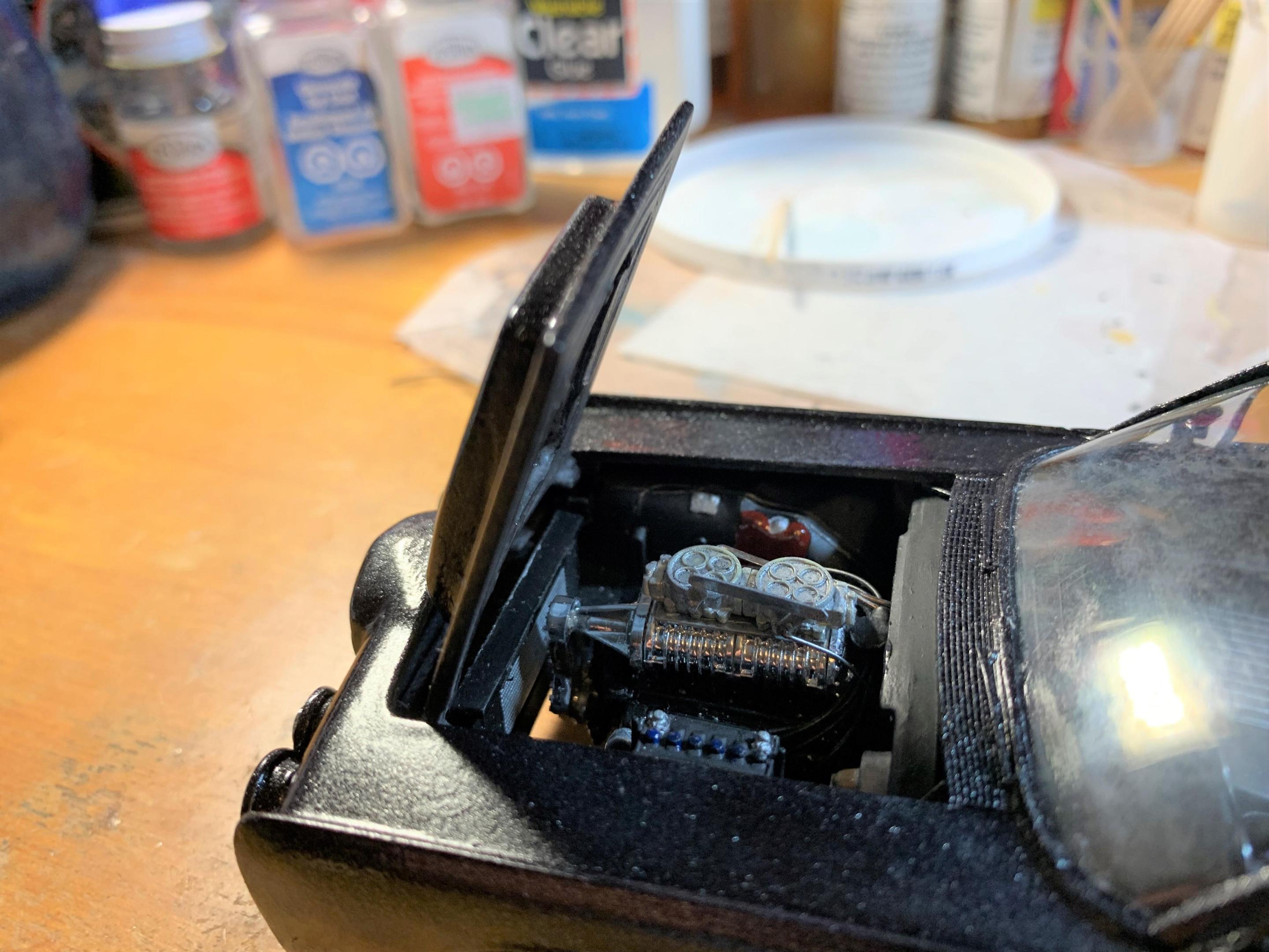 Progress! 600 cubic inch, 1000 hp, dohc, double supercharger engine with dual 4bbl carbs! interior done, chassis being paint detailed, wire wheels, body work nearly done- just some refining to accomplish. This will be my first airbrushed model- kandy metallic black!