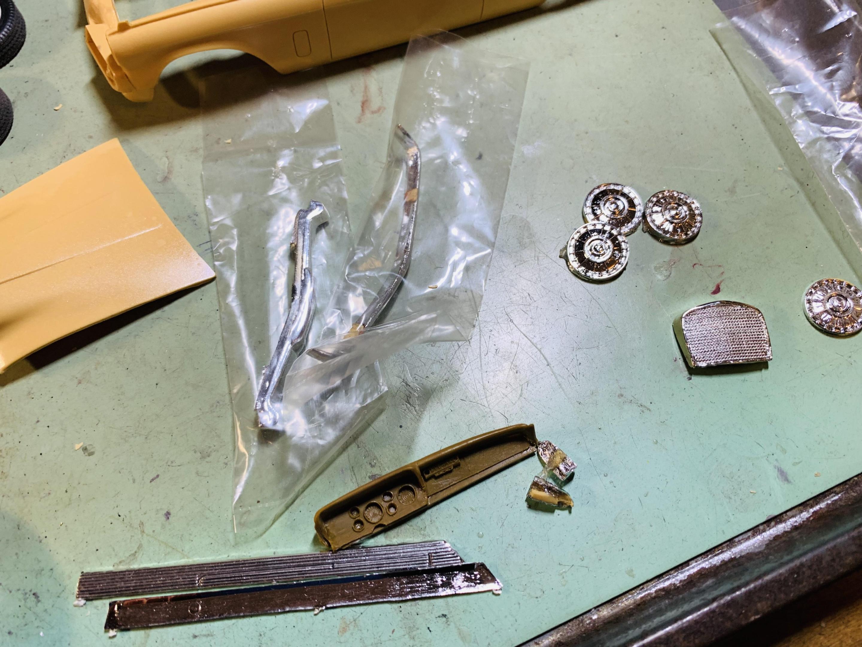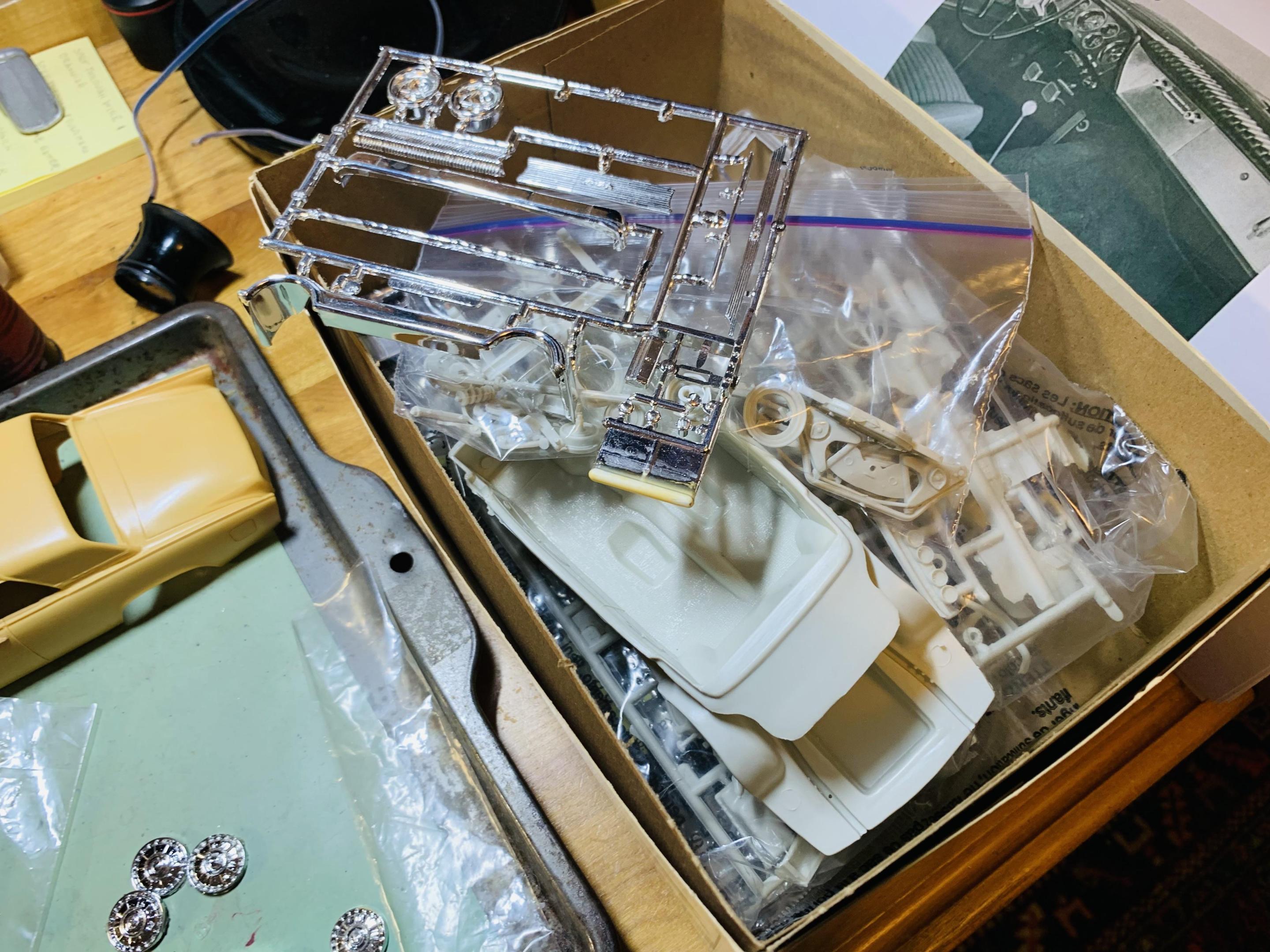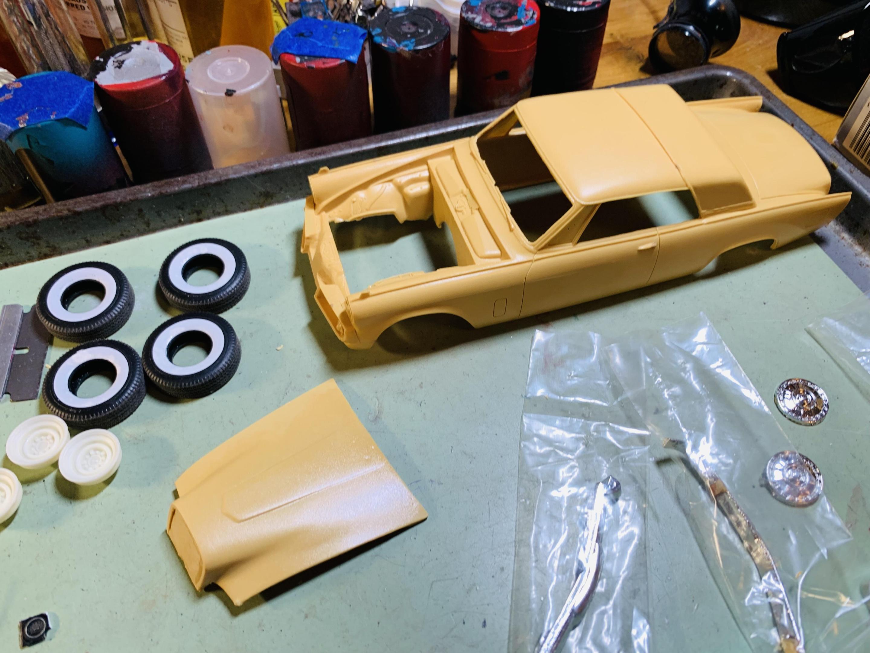 Decided to dig out a never started project from the stash. Shortly after the reissue of the AMT 1953 Studebaker I picked up this resin casting of the 1962 GT Hawk. Wil need quite a bit of work, including fabricating a rear grille. Using an Avanti engine with the twin Paxton supercharger option. Found some nice whitewall tires at the C.A.R.B.S. meet. Thinking about a dark red, but that may change.